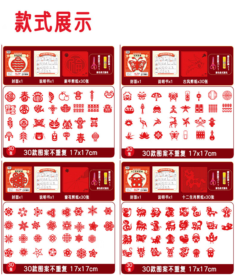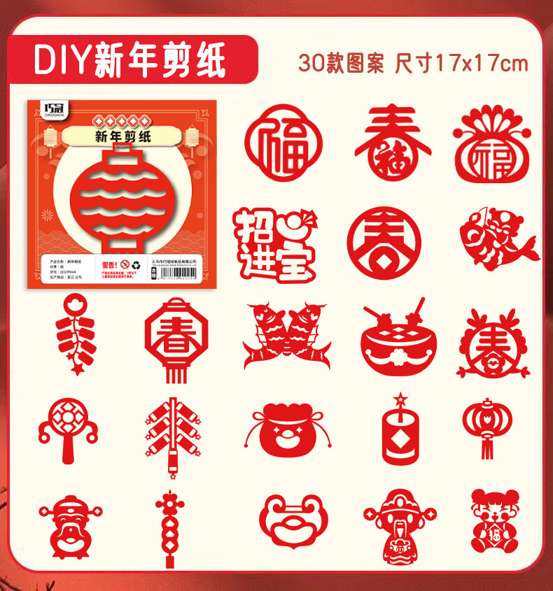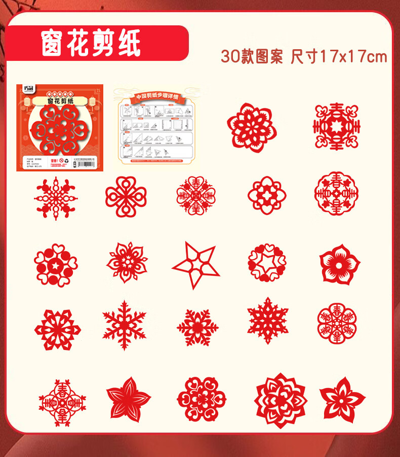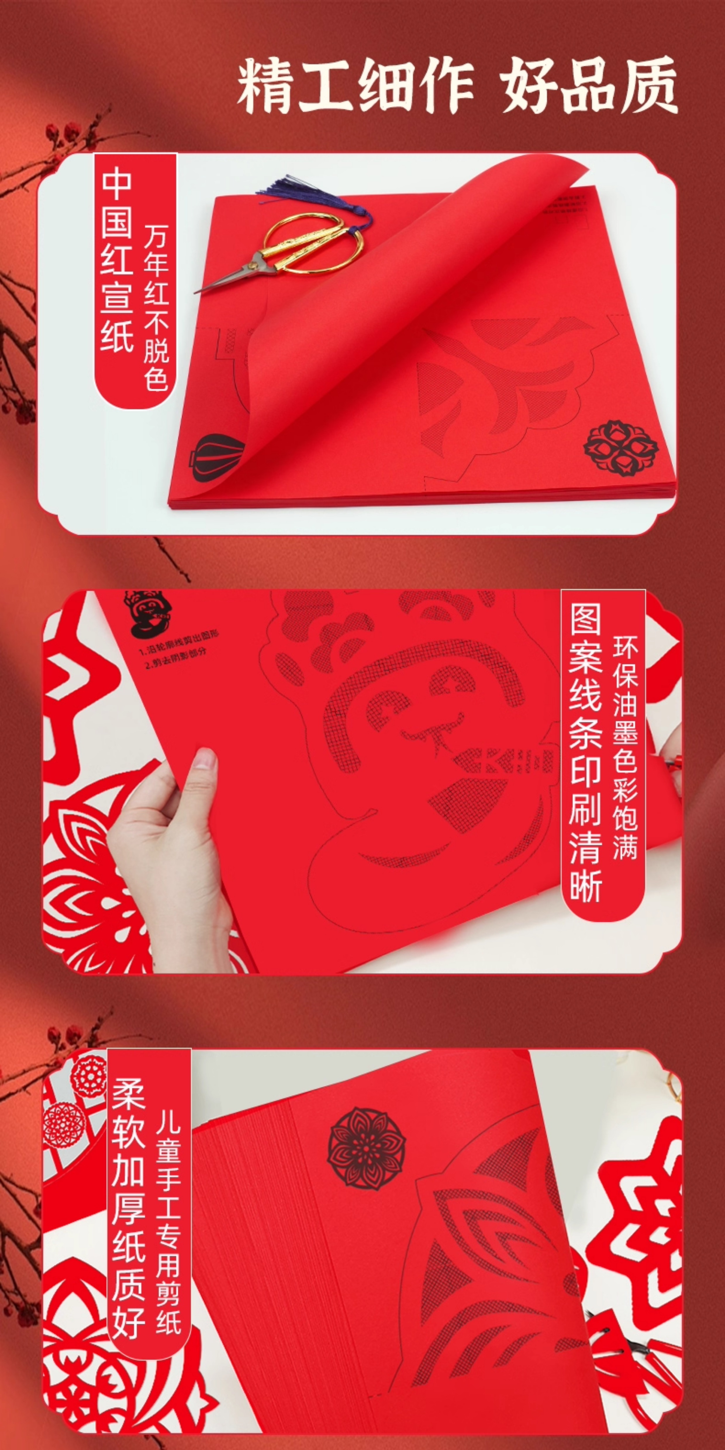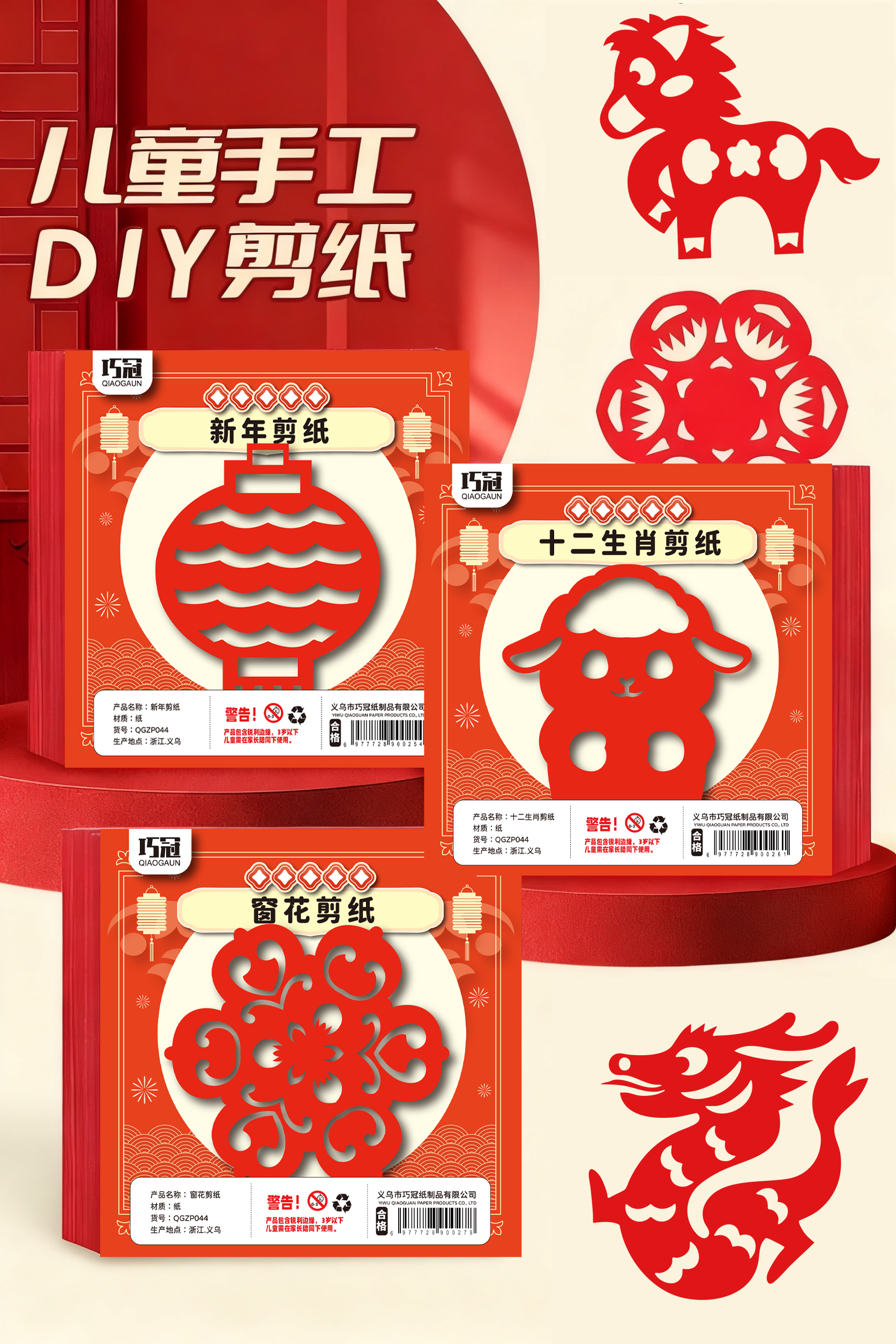 儿童手工窗花纸剪纸2026年马年新年春节剪纸窗花专用纸张幼儿园元旦节diy小学生国风新年图案底稿 新年剪纸【送剪刀+胶棒】