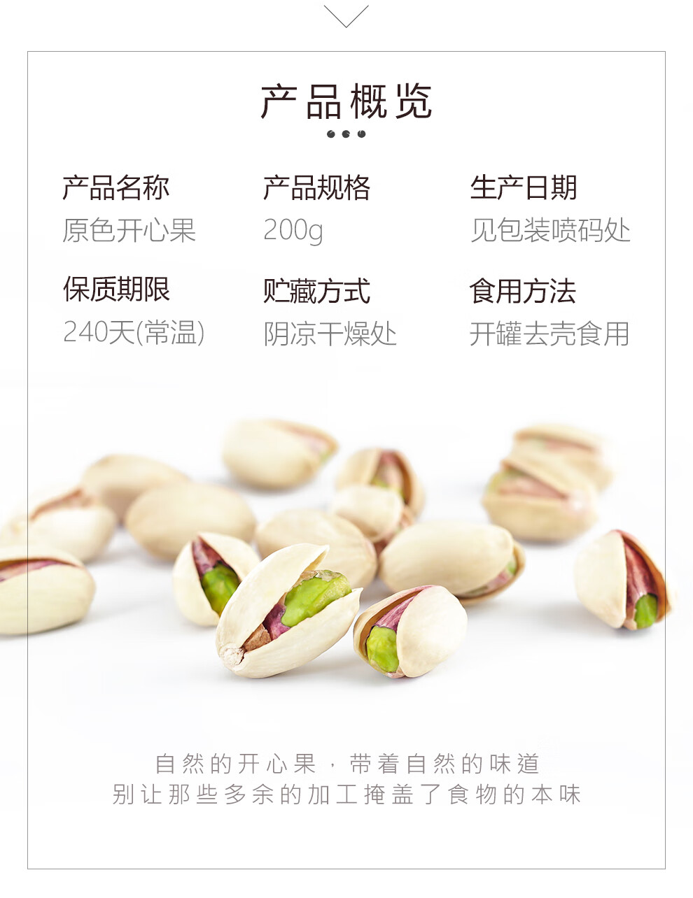 农香森 原色无漂白特大颗粒开心果200g罐装孕妇无漂白零食原味坚果