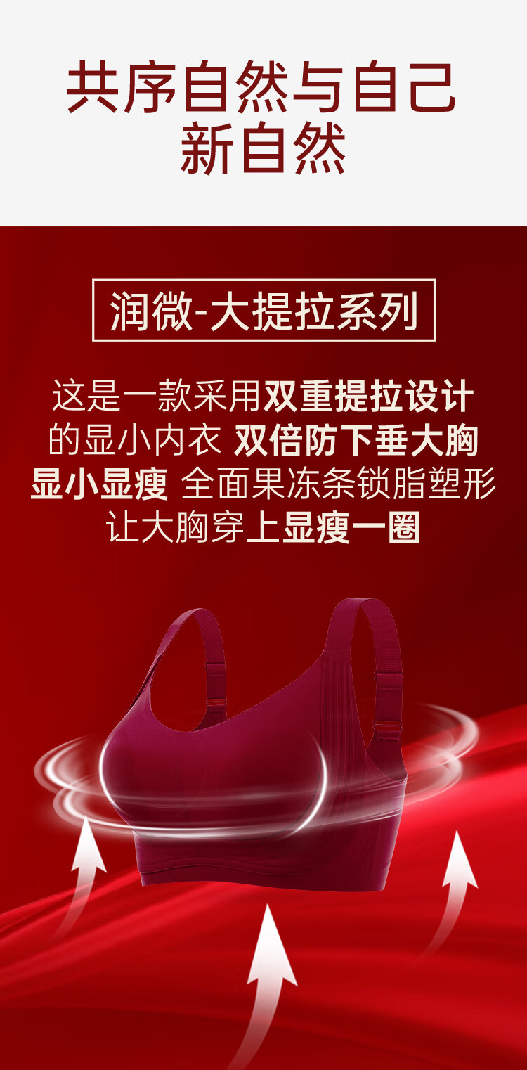 润微【送内裤+袜子】本命年红品文胸内衣礼盒结婚大胸显小防下垂文胸 【礼盒装】走运文胸+鸿运内裤+好运袜子 M (适合75BCDE)