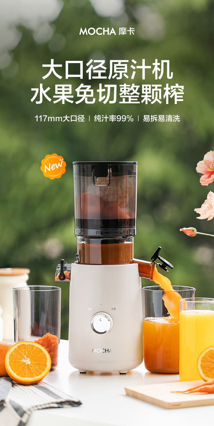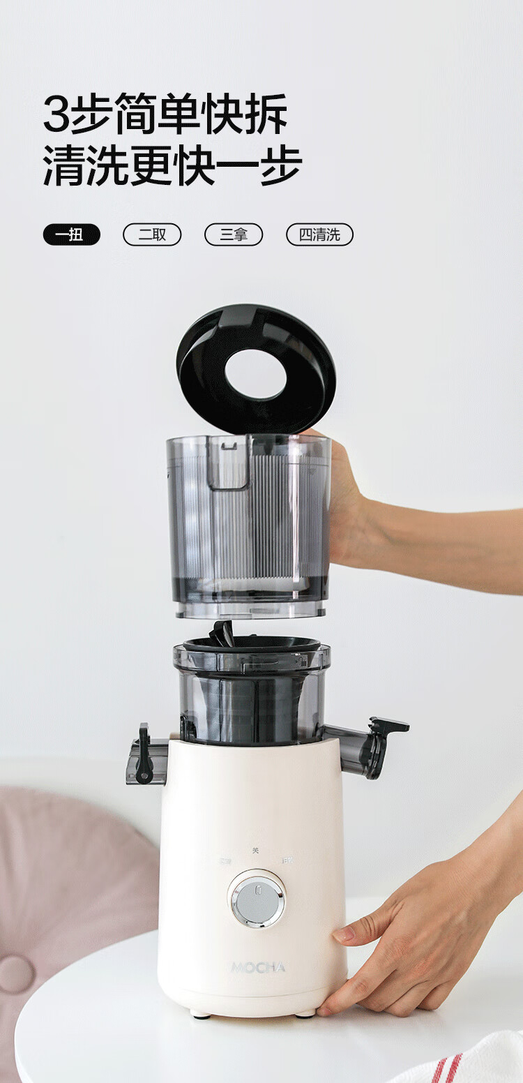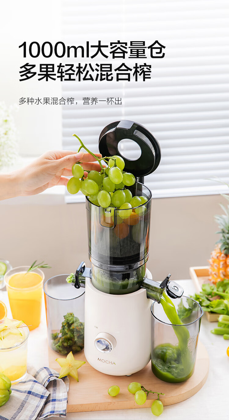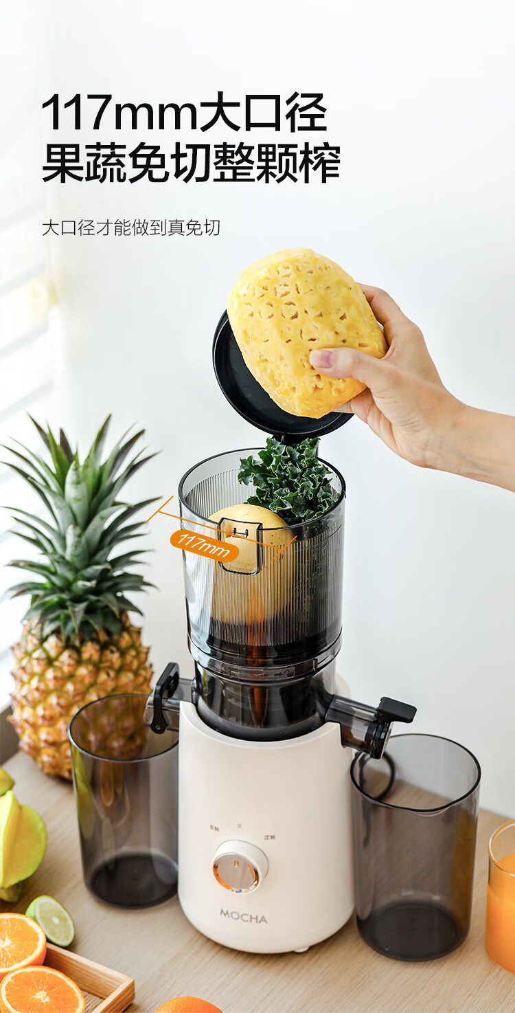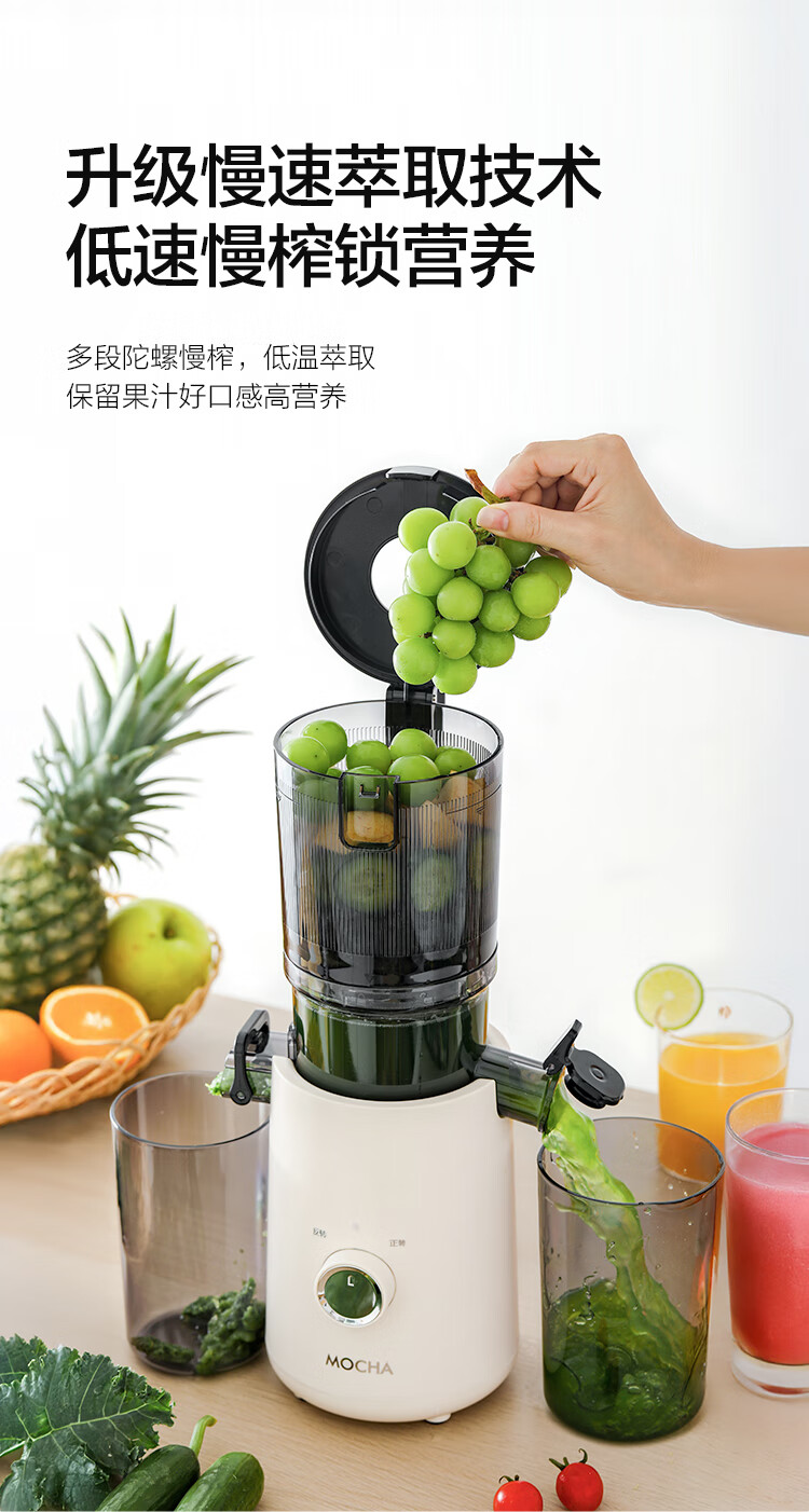 摩卡(MOCHA)榨汁机原汁机 汁渣分离家用大口径 低速水果蔬菜多功能鲜榨果汁机电动榨汁果蔬料理机 【热销爆款】178豆乳白-117MM大口径