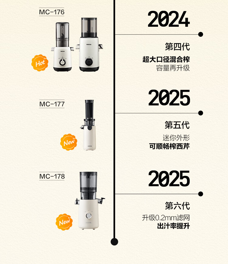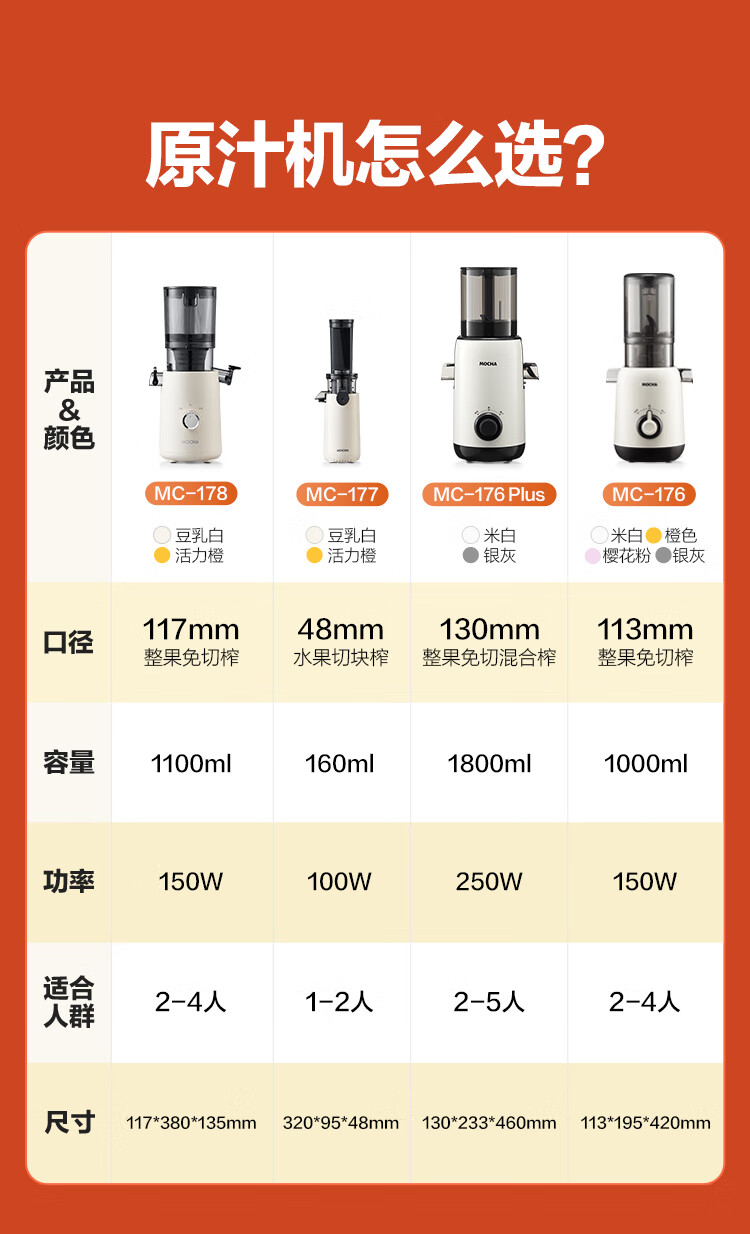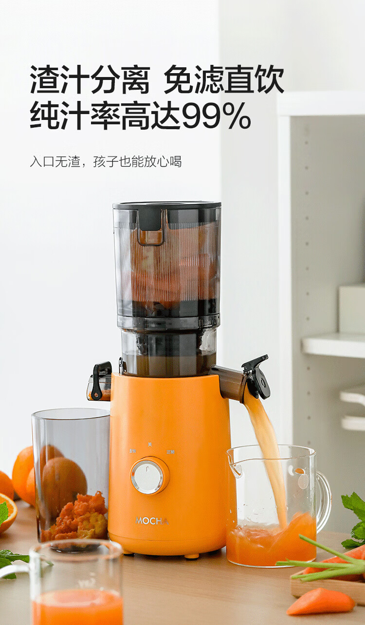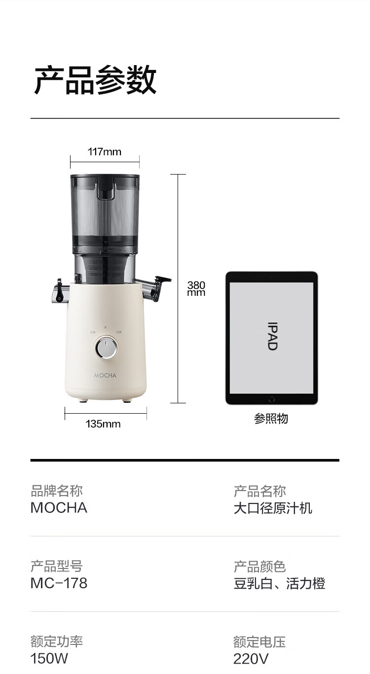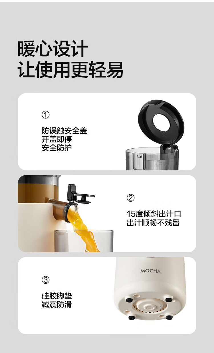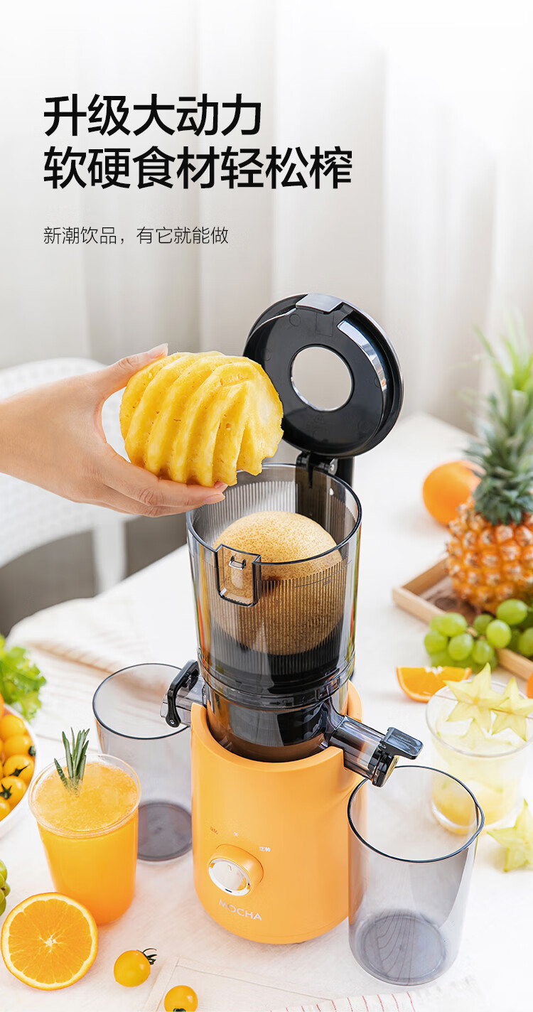 摩卡(MOCHA)榨汁机原汁机 汁渣分离家用大口径 低速水果蔬菜多功能鲜榨果汁机电动榨汁果蔬料理机 【热销爆款】178豆乳白-117MM大口径