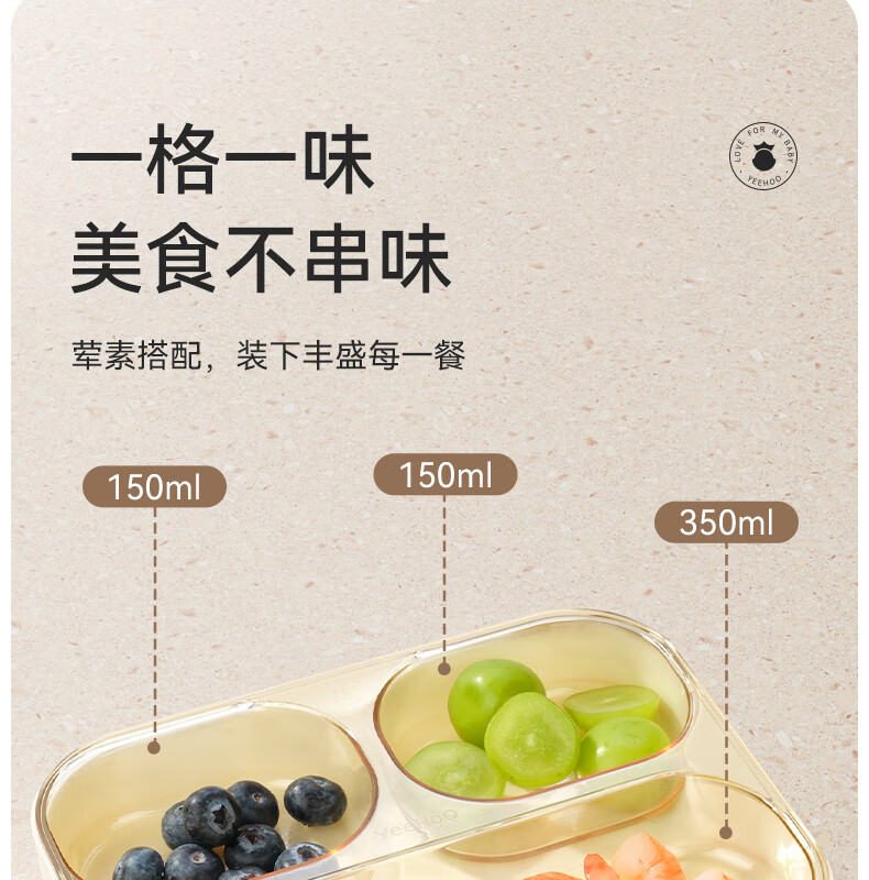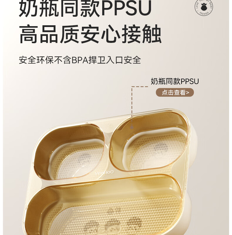 英氏(YEEHOO)婴儿宝宝分格餐盘儿童餐具吃饭碗辅食自主进食专用PPSU食品级