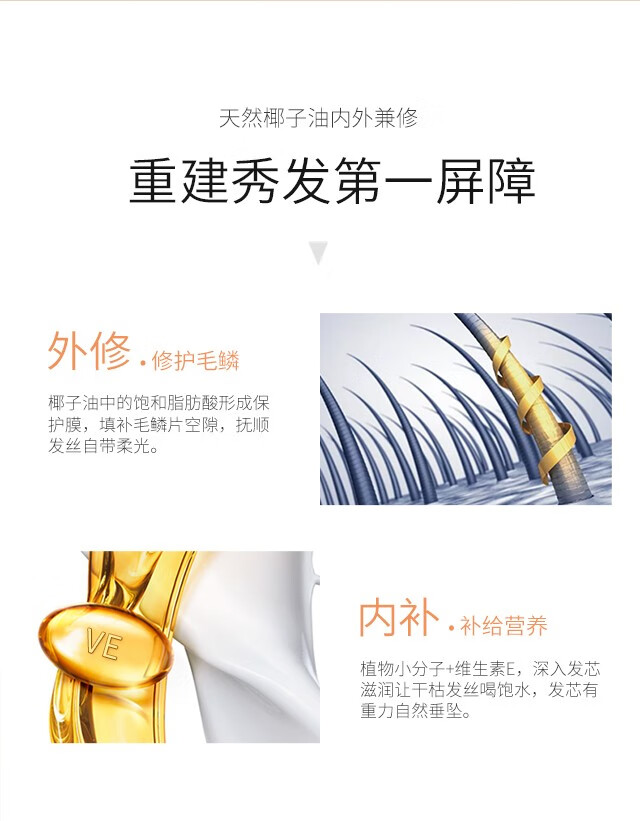博柔(BEAVER)椰子油洗发水 改善毛躁干枯发质 椰子油护发素730ml