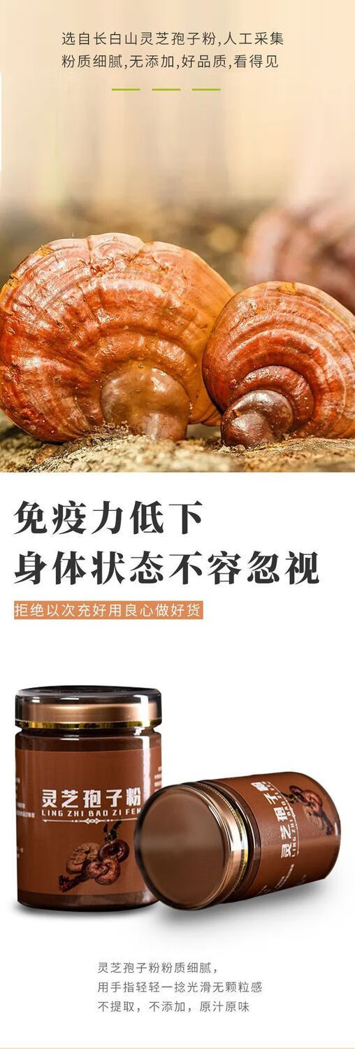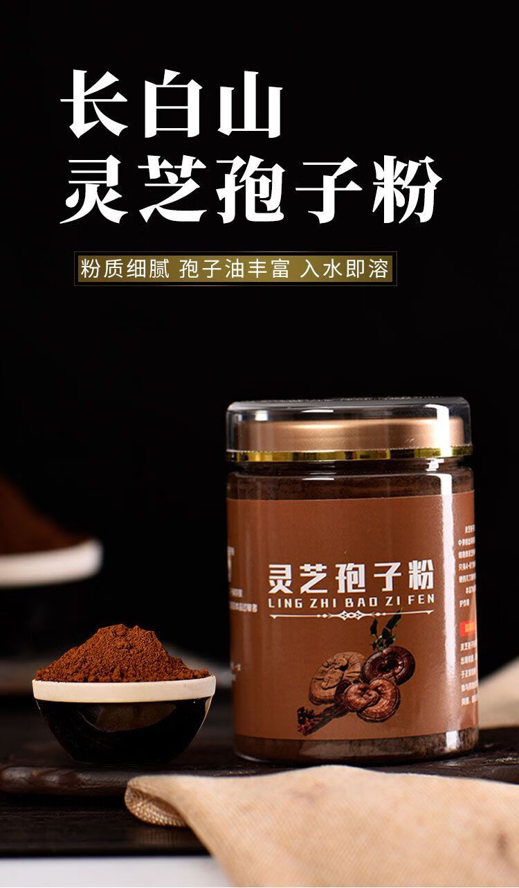 灵芝孢子粉长白山头道灵芝粉超细粉东北正宗椴木灵芝袍子粉 孢子粉258克1瓶