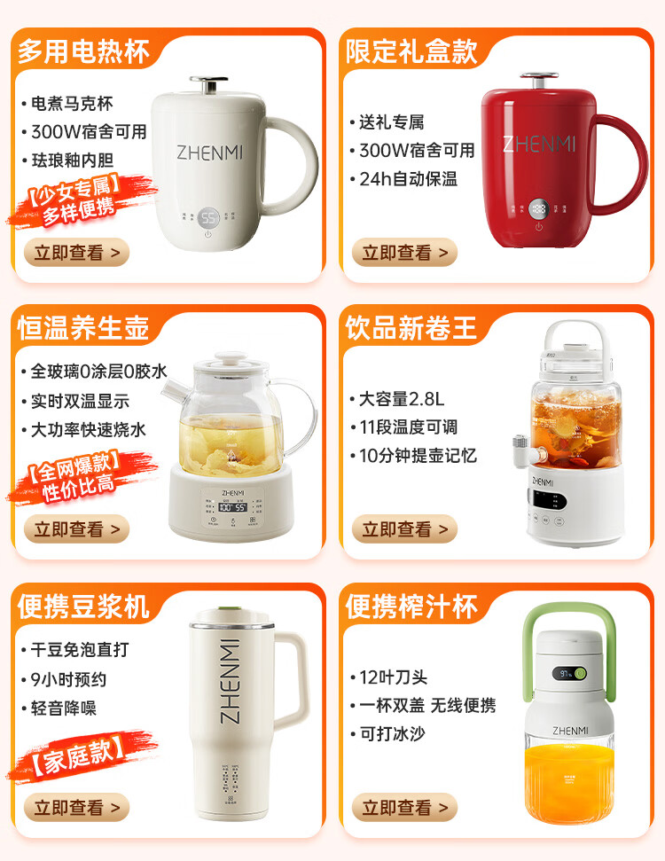 臻米养生壶 电热水杯热牛奶煮茶炖煮保温加热烧水杯热牛奶神器办公室宿舍多功能热水杯 0.6L 电热水杯(标准款)