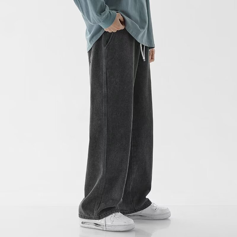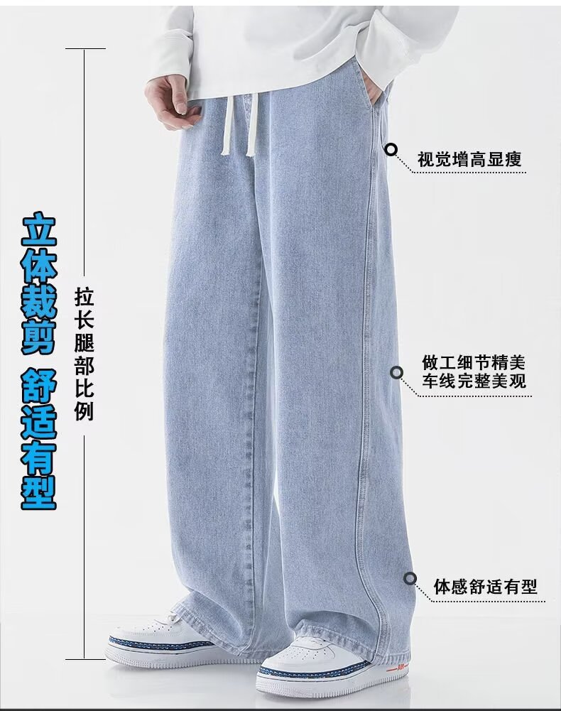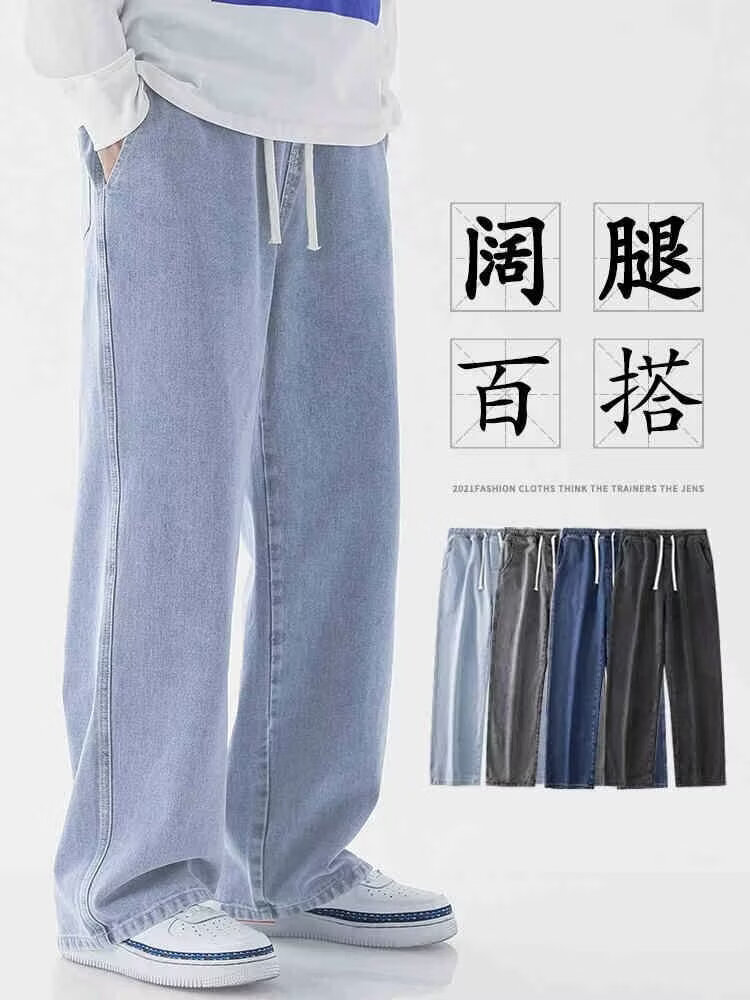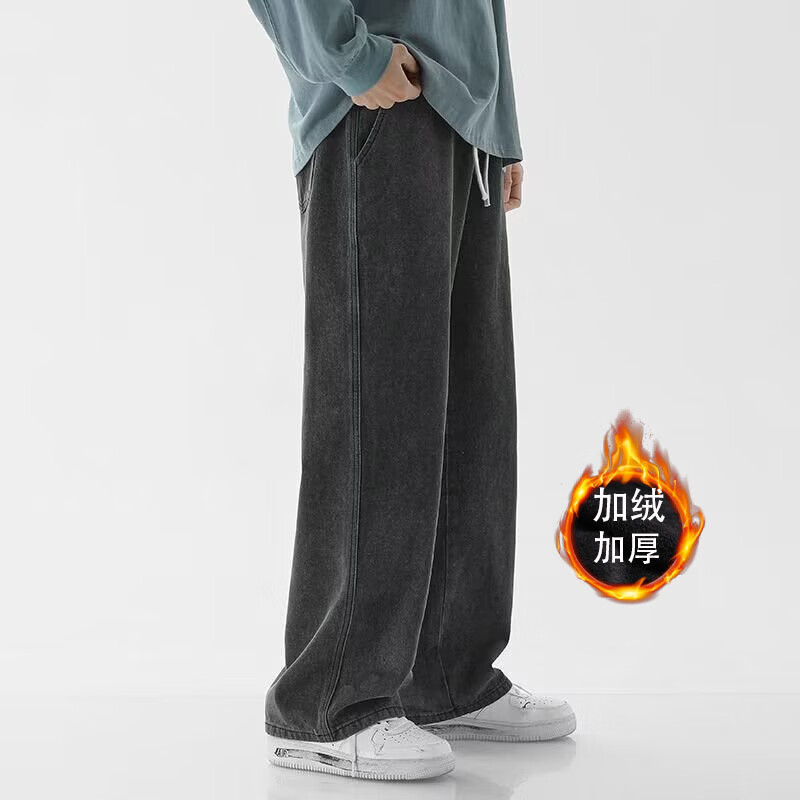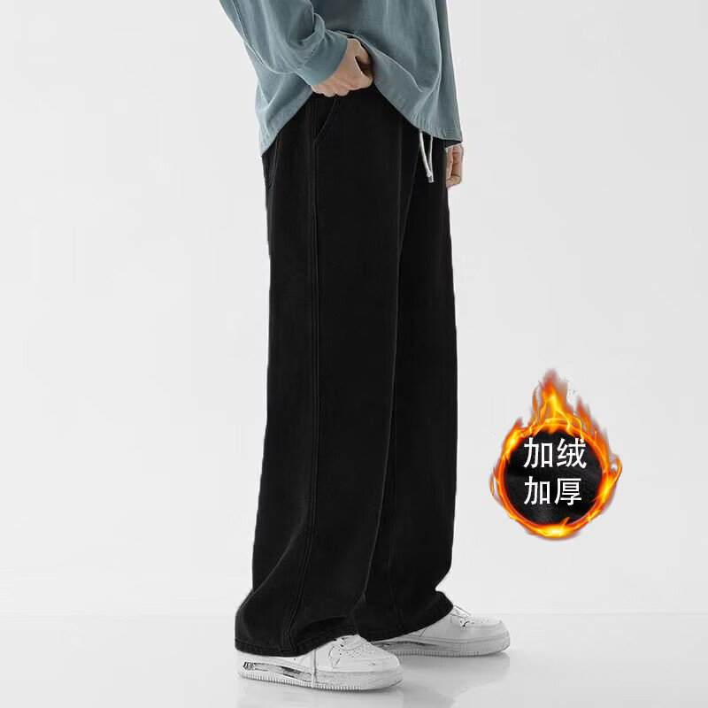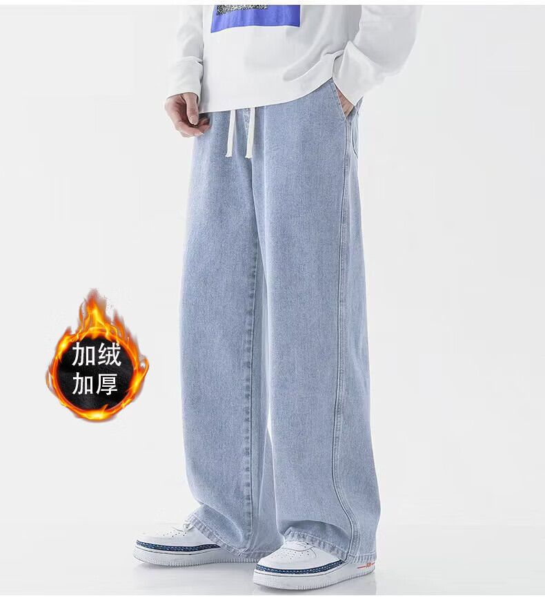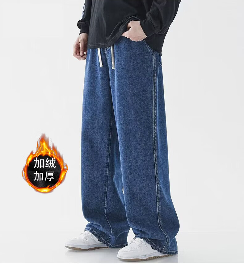 MDODC加绒加厚直筒牛仔裤子男士秋冬季美式潮牌高街男款运动休闲长裤 蓝色【加绒】 3XL 建议(145-165)