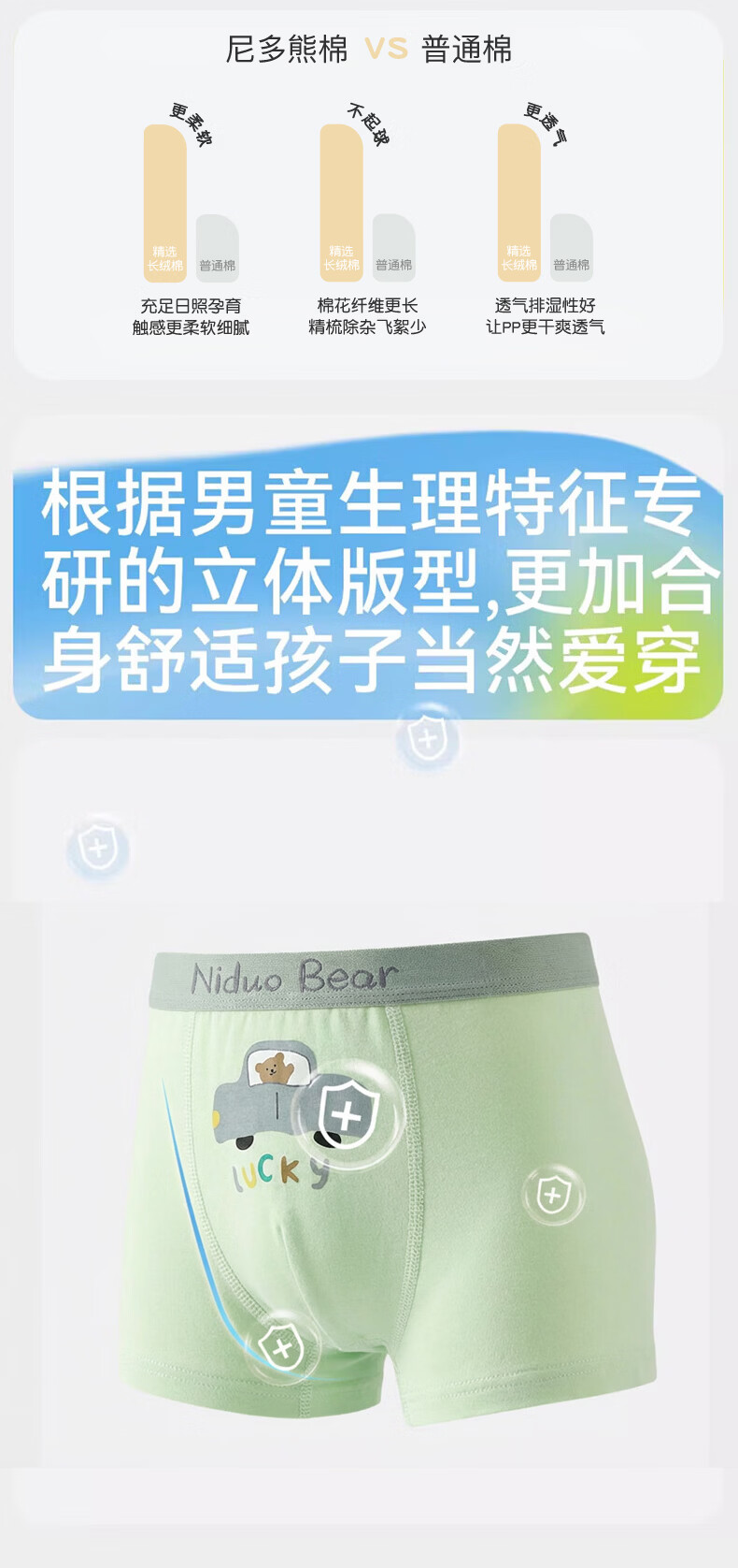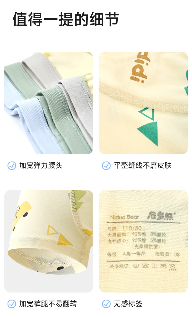 尼多熊男童内裤儿童棉质平角裤男孩四角短裤男宝宝不夹PP中大童底裤 汽车小熊 【超值推荐款】 3条 110 【建议体重25-34斤】