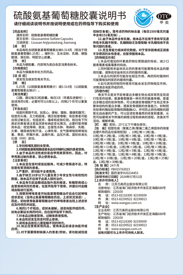 【原研药】维固力 硫酸氨基葡萄糖胶囊 0.25g*120粒/盒 OTC药品治疗级氨糖