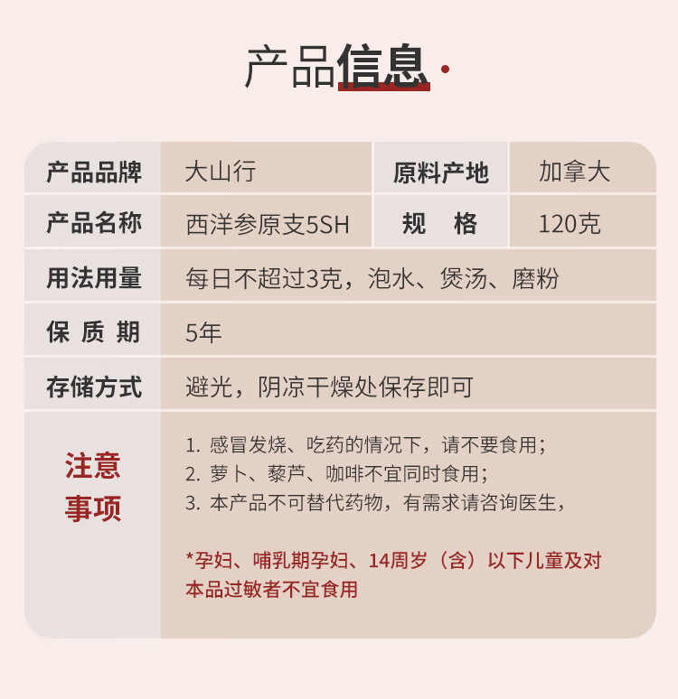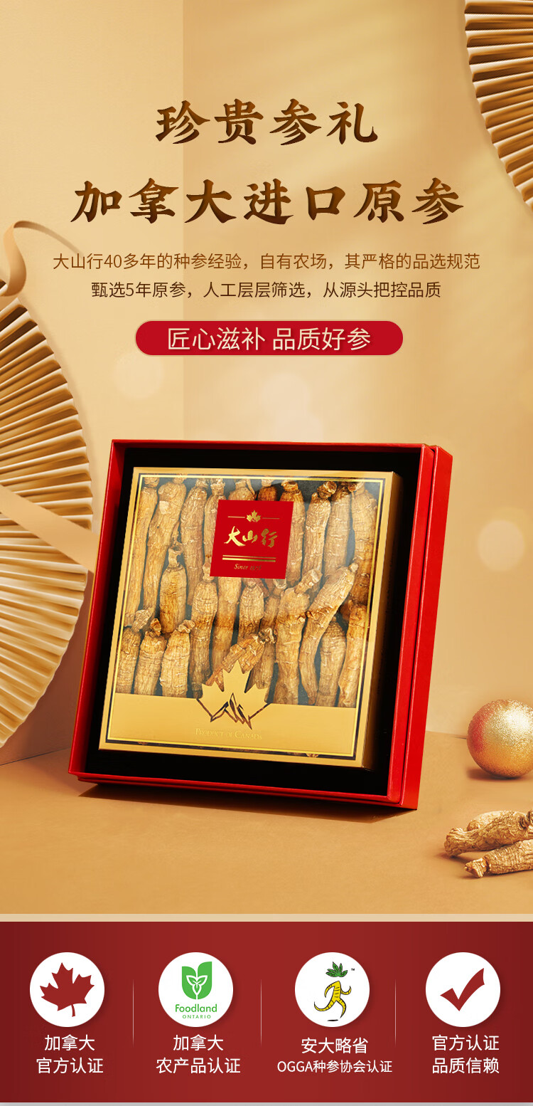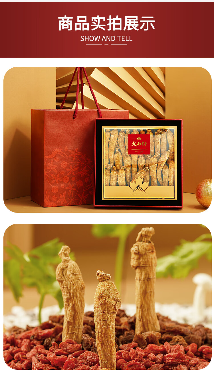 大山行【加拿大进口】西洋参原支礼盒正宗花旗参整根人参皂苷丰富送年货 小支 150g*1盒 【豪华礼盒】