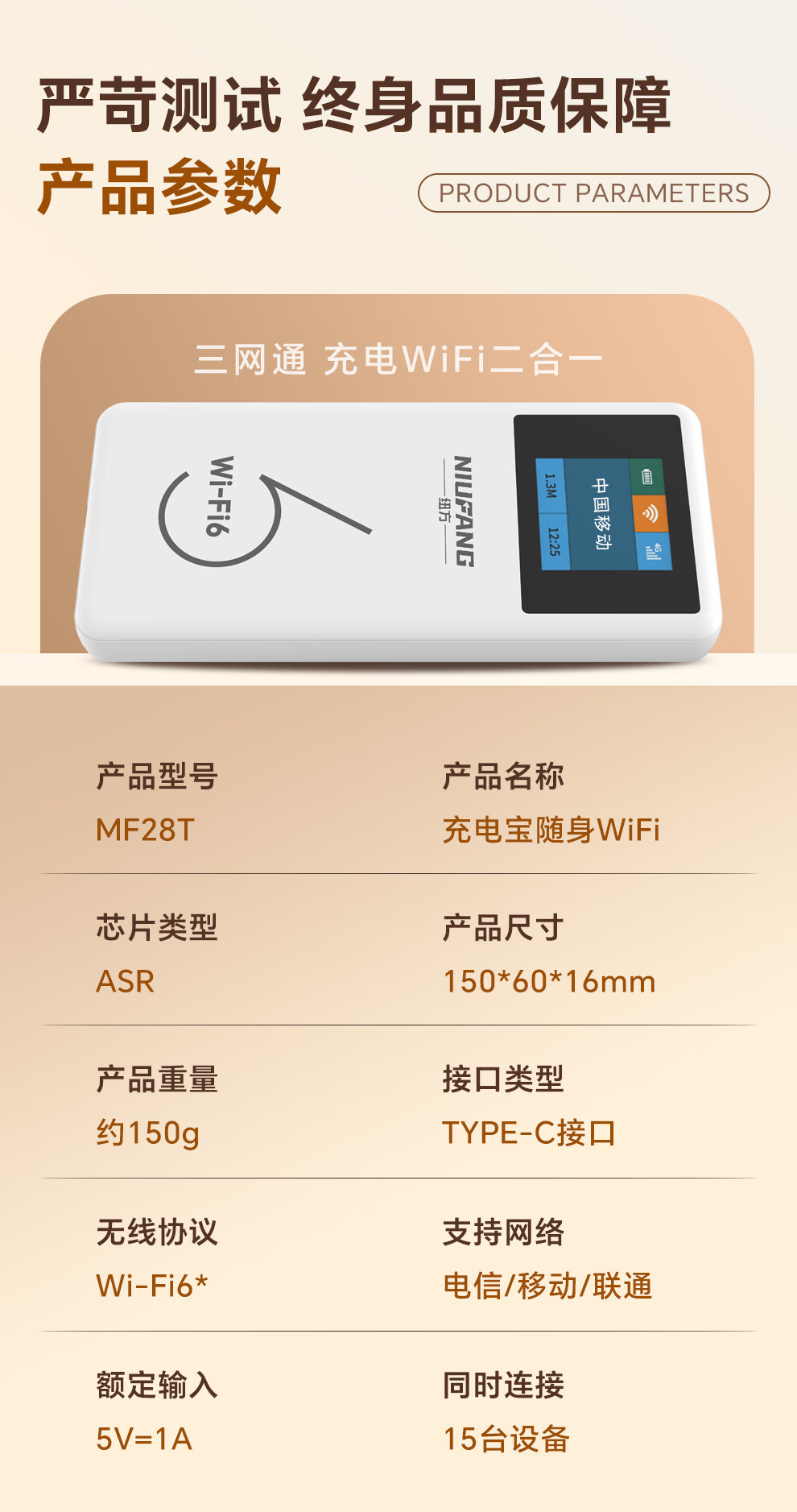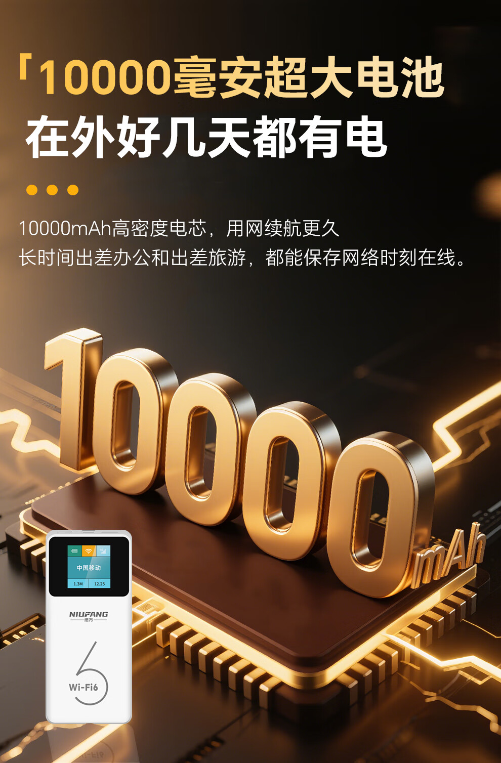 纽方【特惠套餐】无需预存【送1500G】移动随身wifi6车载4G无线wifi充电上网二合一无限高速流量 白色款10000mAh+三网切换+充电上网二合一