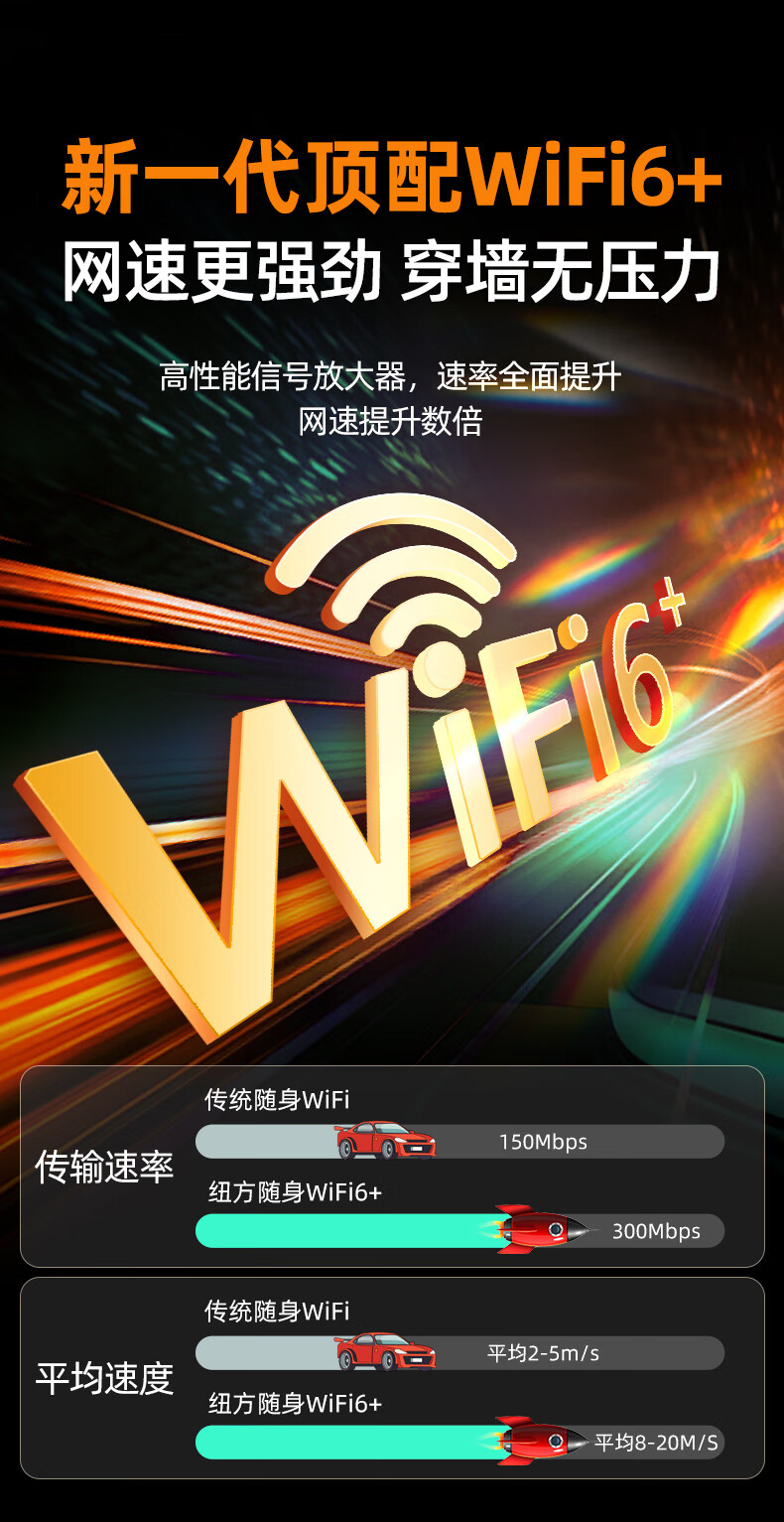 纽方移动随身wifi6免插卡【便携带】无需预存【送1500G】车载4G无线wifi充电上网二合一无限高速流量 【5G MiFi】5000毫安+三网切换+超高网速