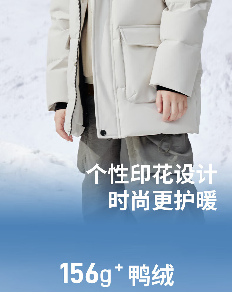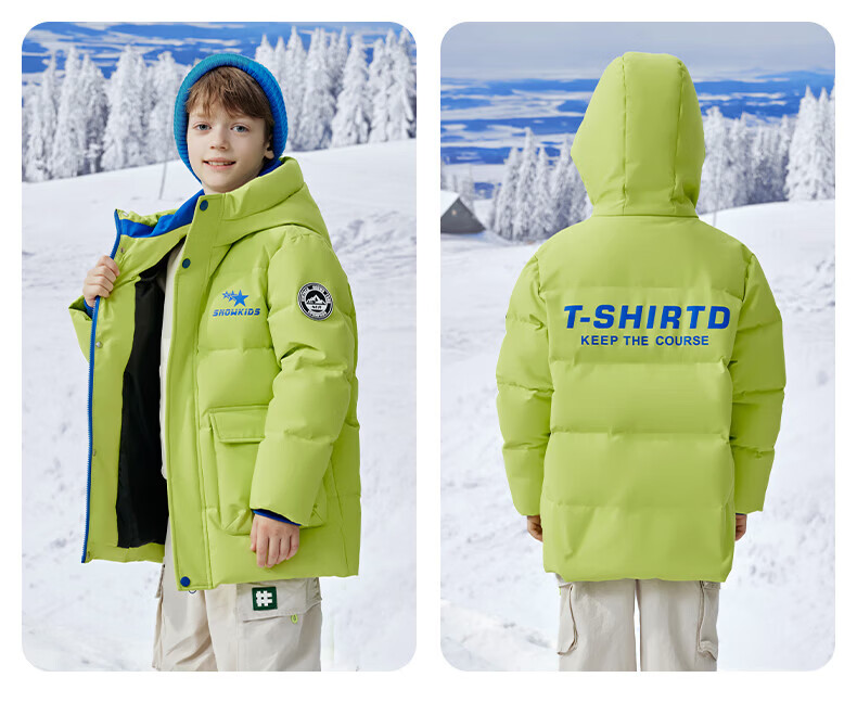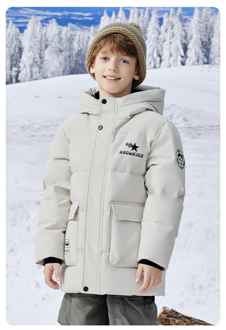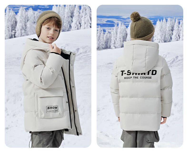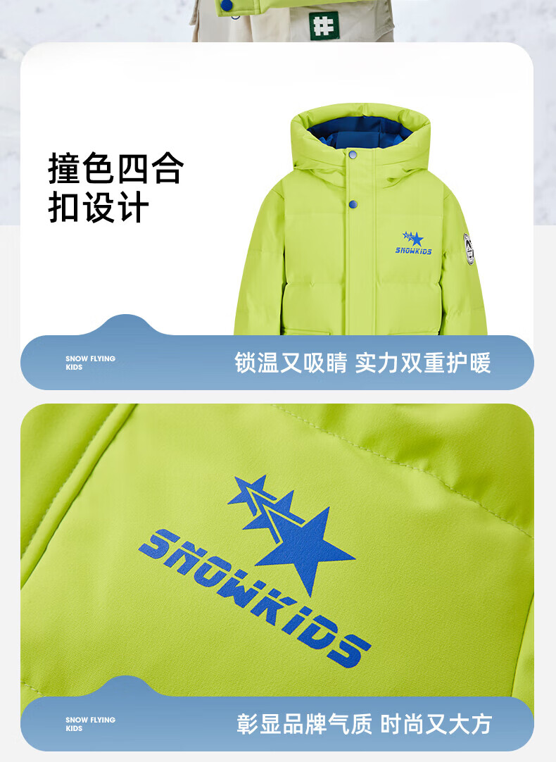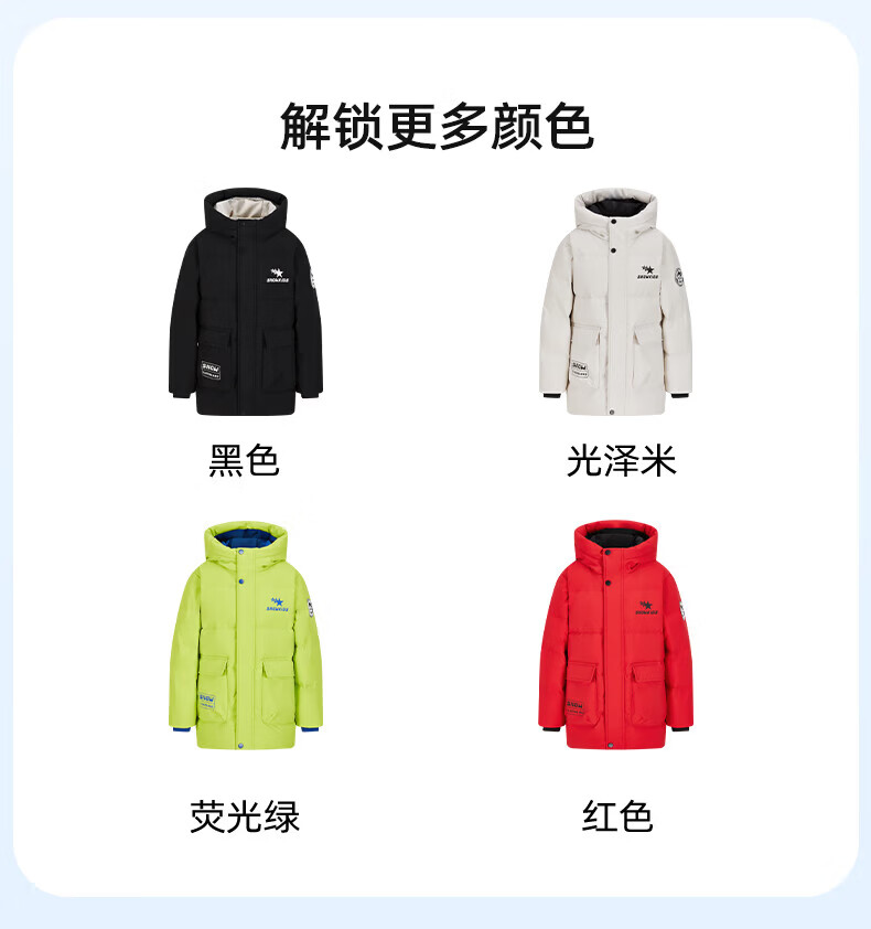 雪中飞(SNOWFLYING)【集合】童装儿童羽绒服新款男童羽绒服中大童女童撞色印花羽绒服 光泽米 160