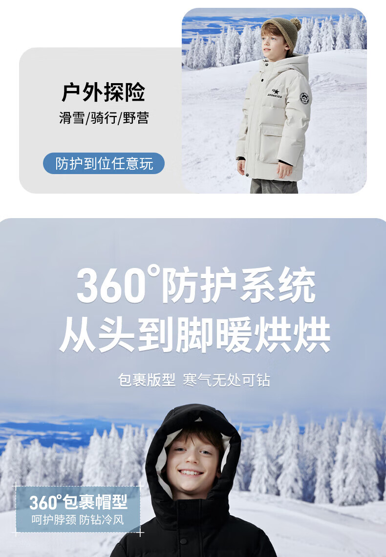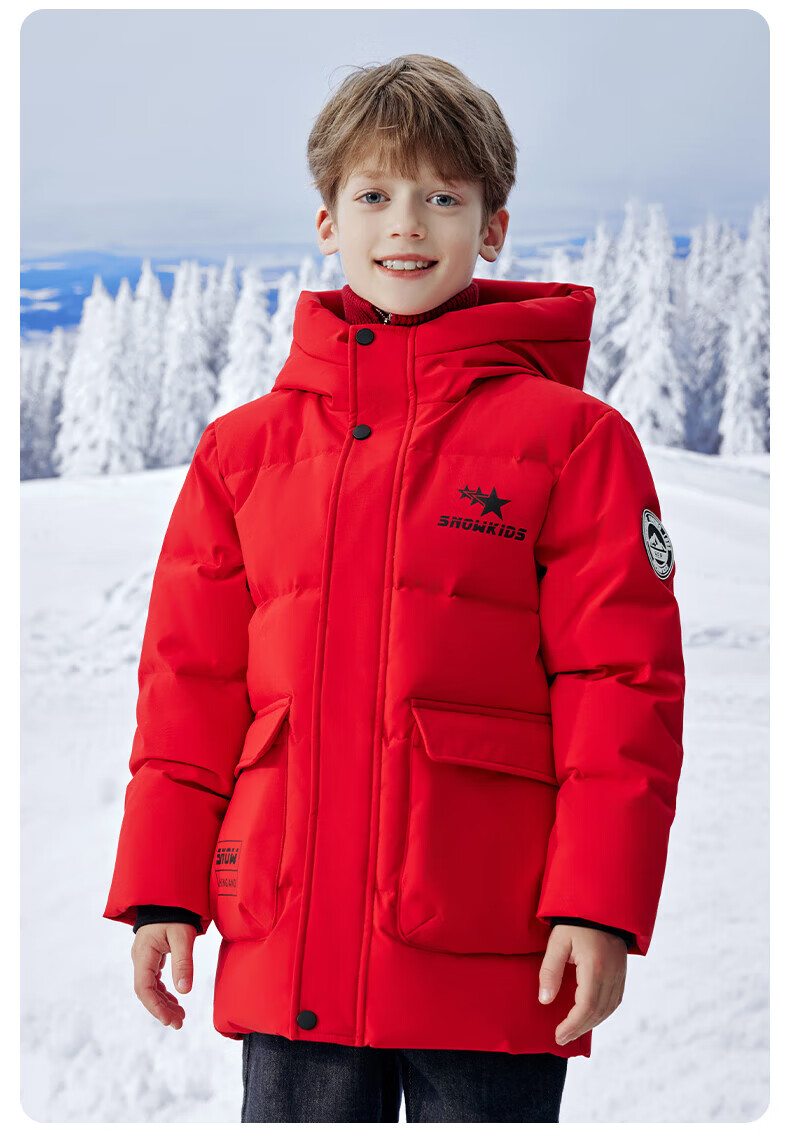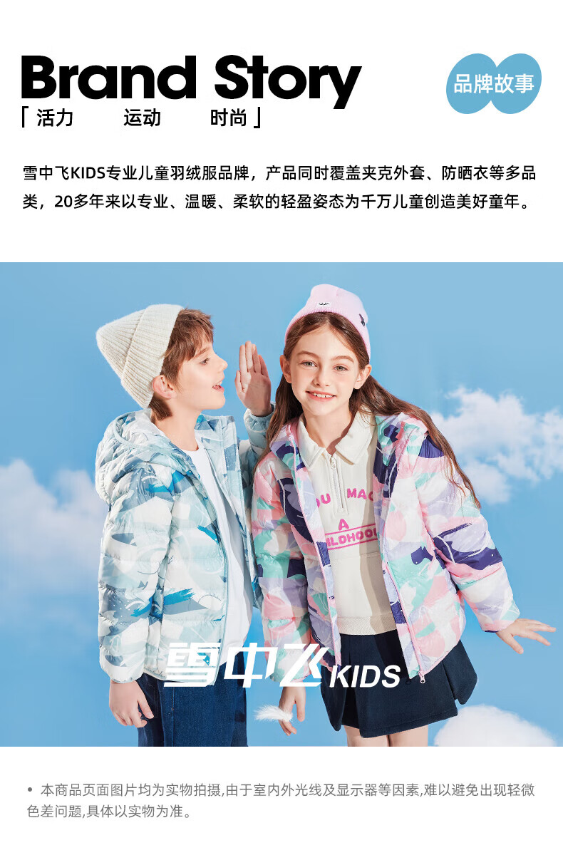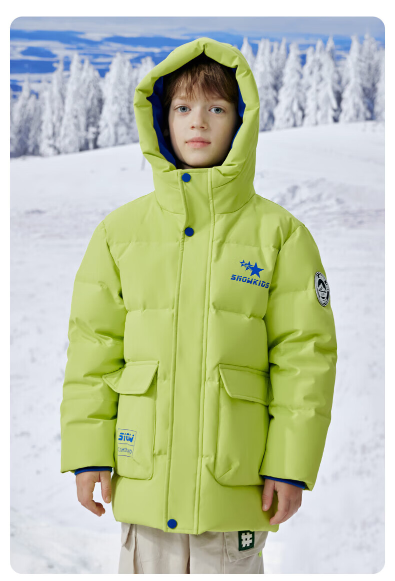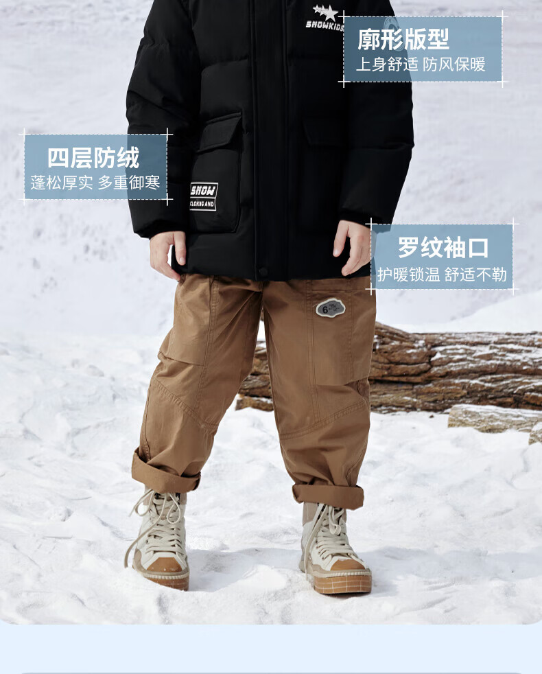 雪中飞(SNOWFLYING)【集合】童装儿童羽绒服新款男童羽绒服中大童女童撞色印花羽绒服 光泽米 160