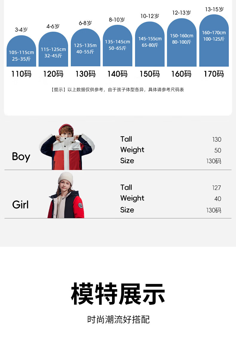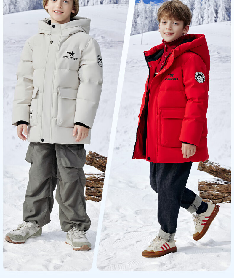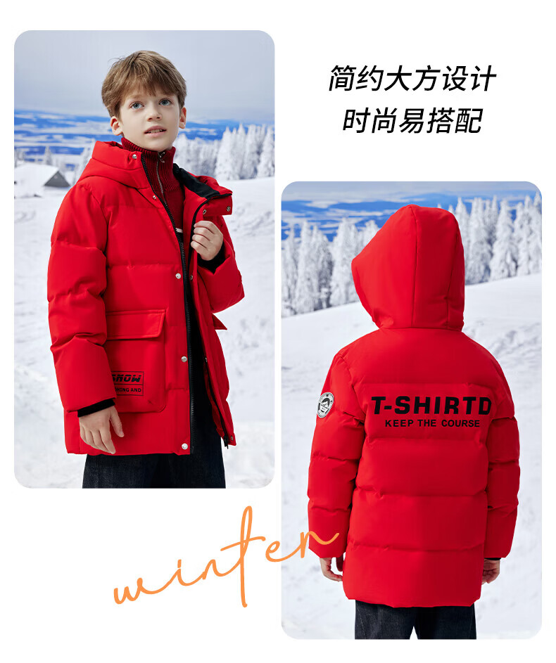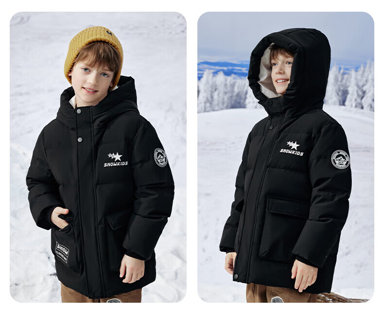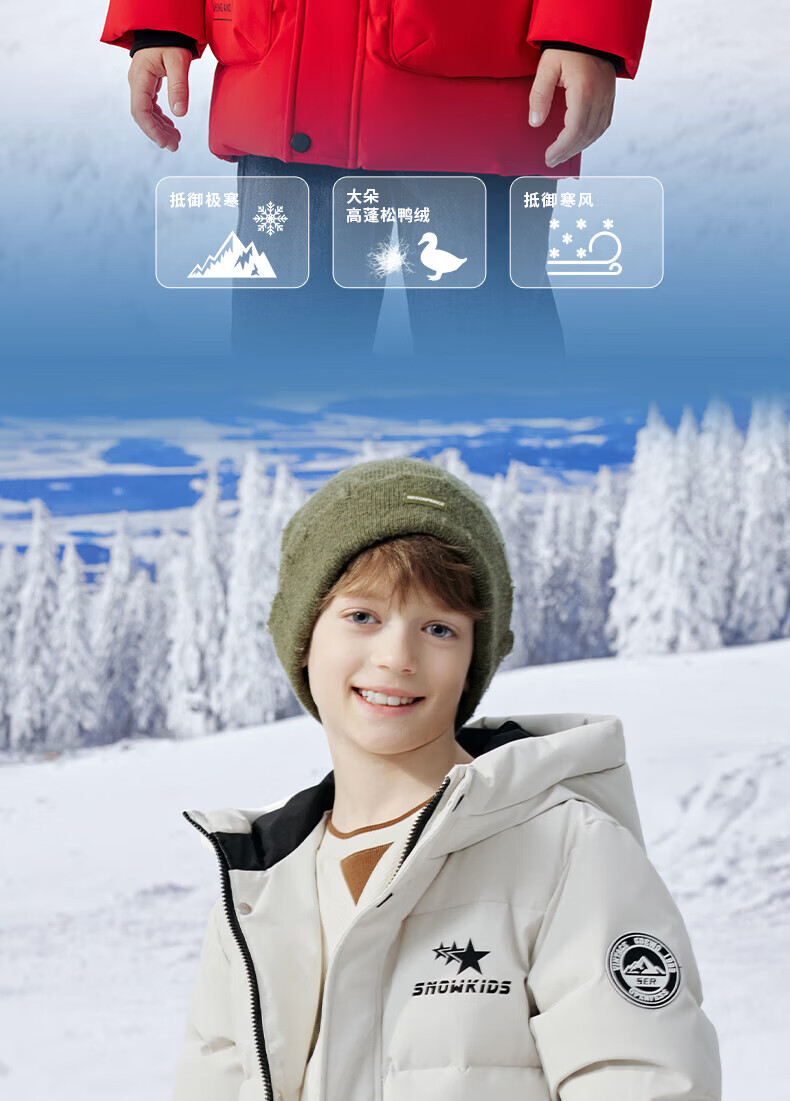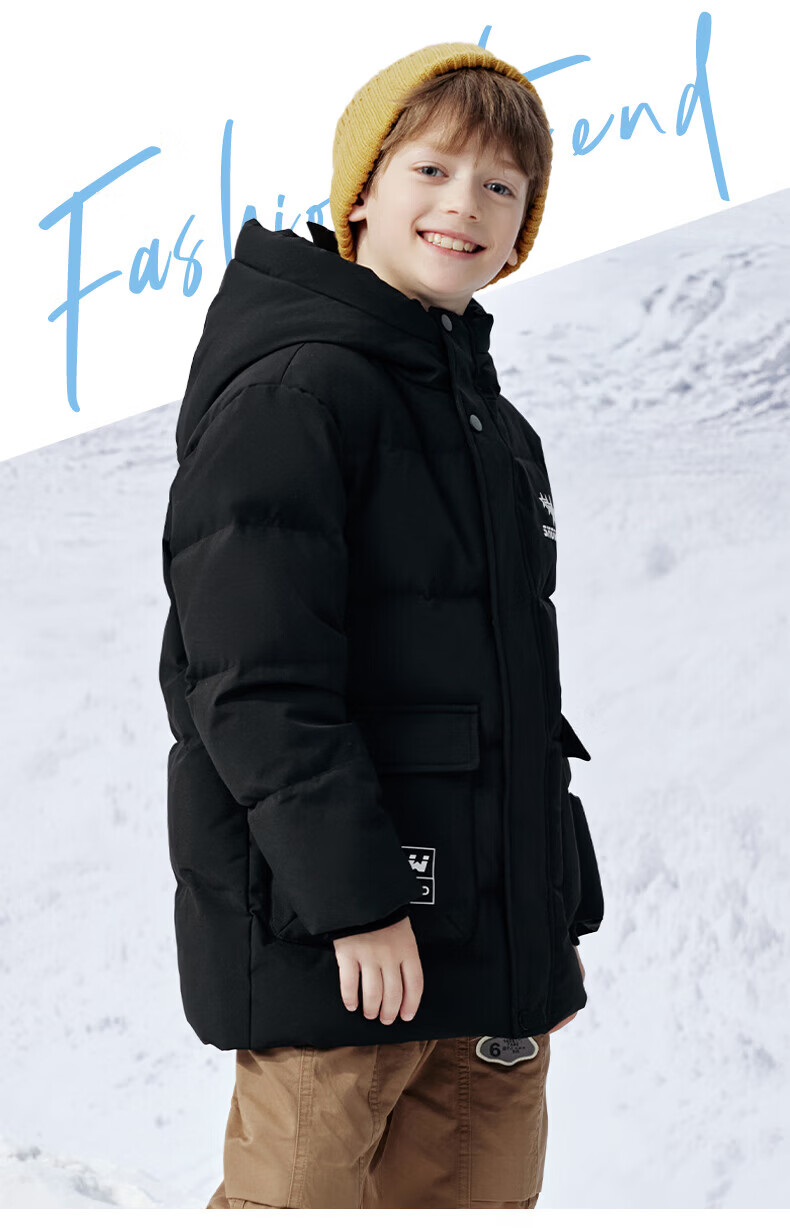 雪中飞(SNOWFLYING)【集合】童装儿童羽绒服新款男童羽绒服中大童女童撞色印花羽绒服 光泽米 160