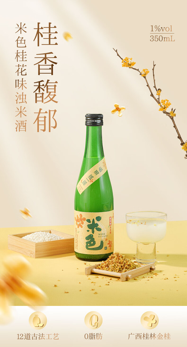 梅见米色米酒 糯米酿造浊米酒低度糯米酒男女士小甜酒晚安酒 原味米酒*1瓶+桂花米酒*1瓶
