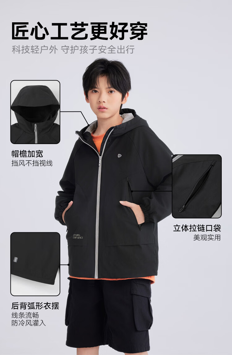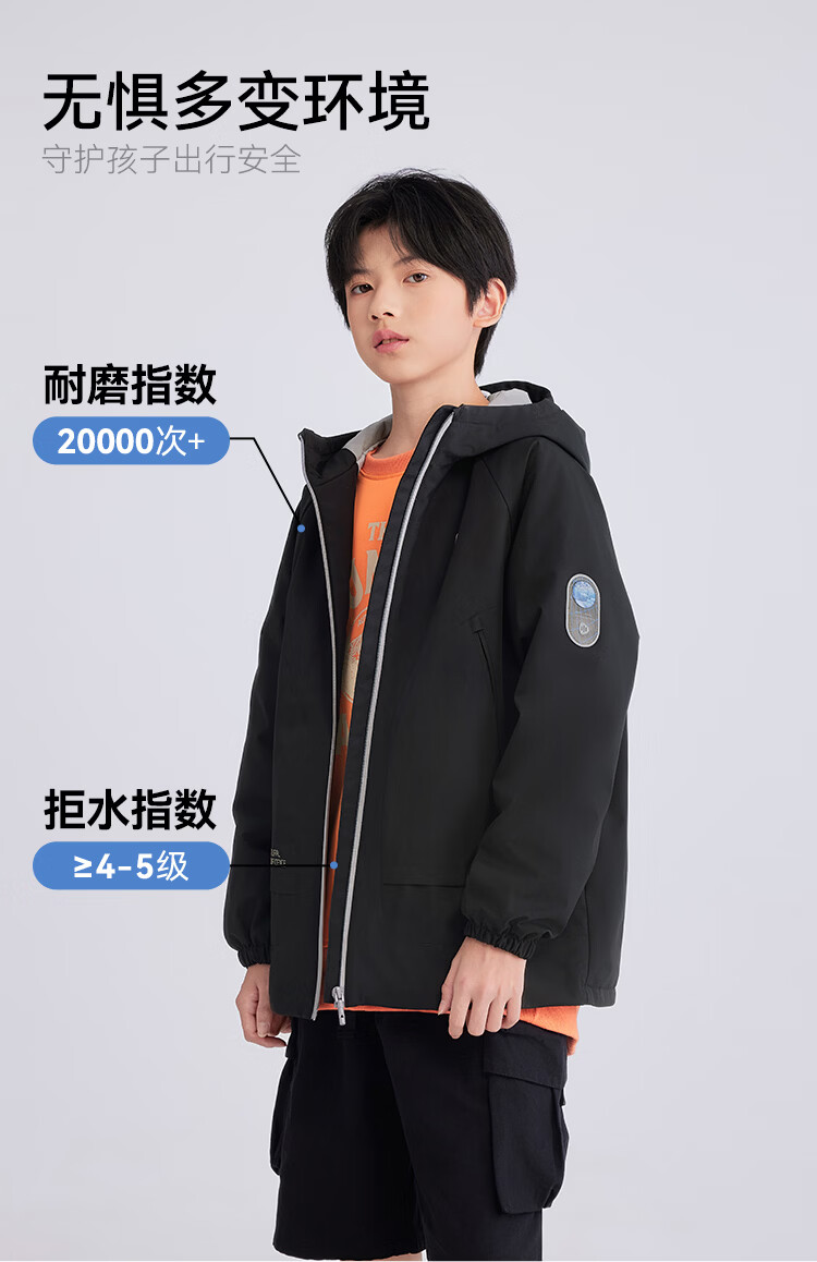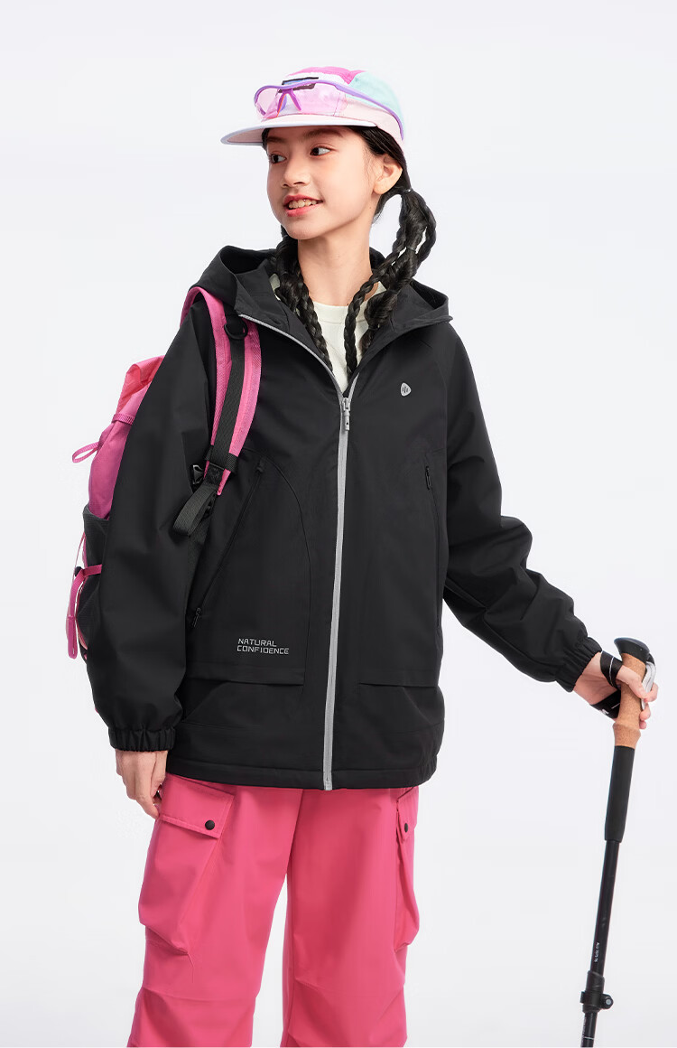 水孩儿(SOUHAIT)童装男童女童加绒厚外套2026春季新款亲子款儿童摇粒绒外套上衣 钻石黑 150