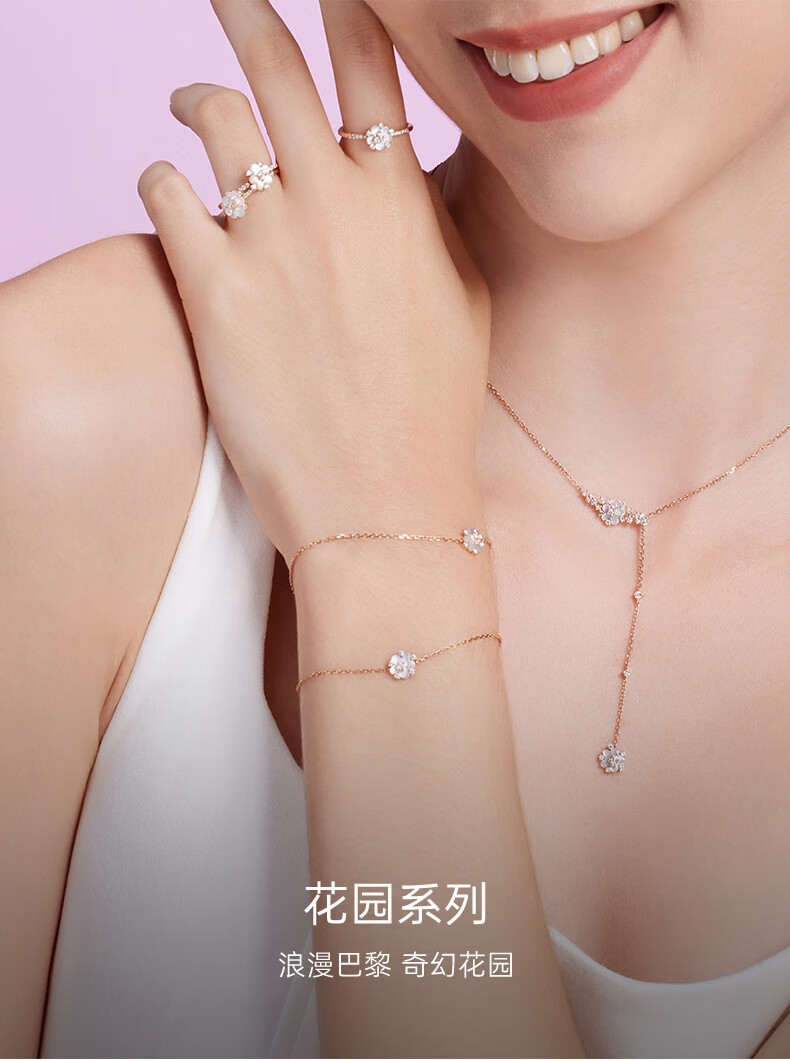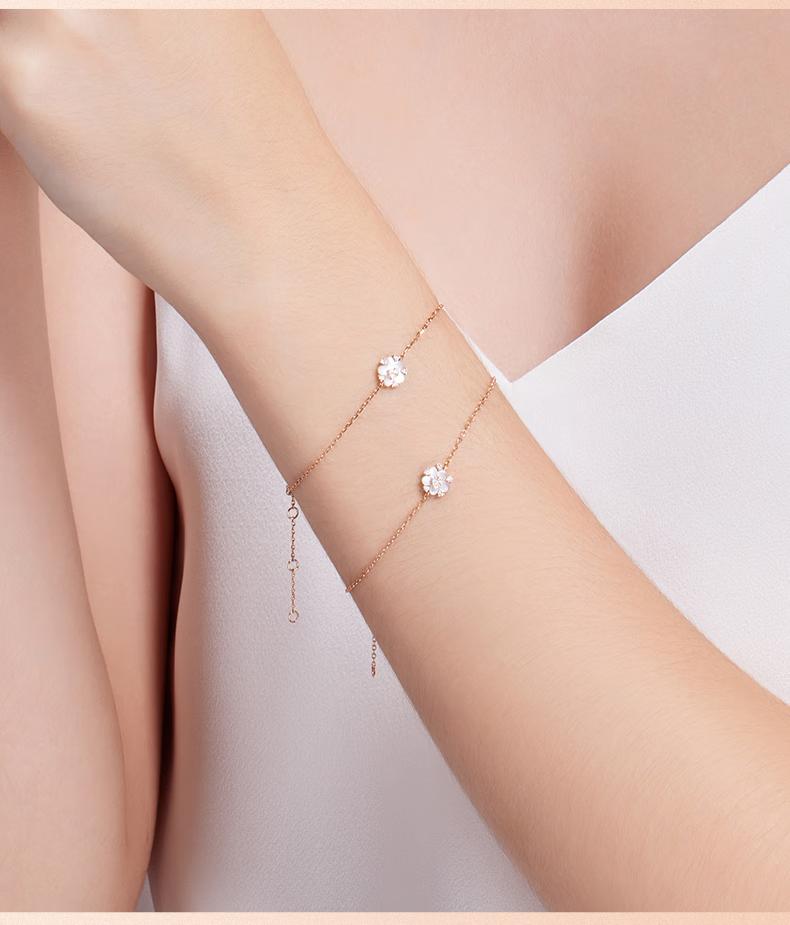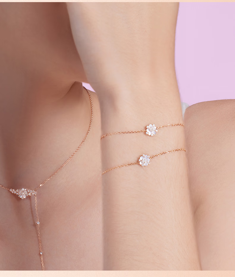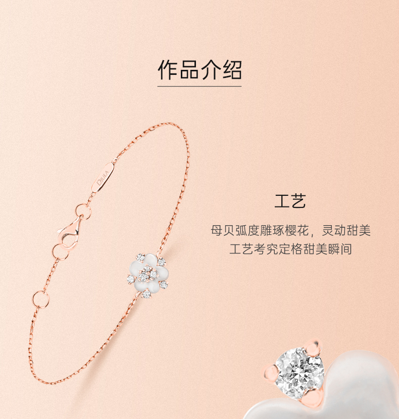 DJULA茱蕊珠宝花园樱花时尚叠戴轻奢18K金钻石手链玫瑰新年情人节礼物