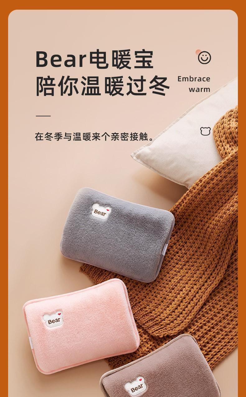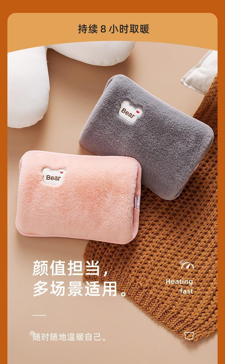 DL胖东来同款厂家批发热水袋充电防爆自动断电毛绒暖水袋暖宝 熊标豆绿-未注水