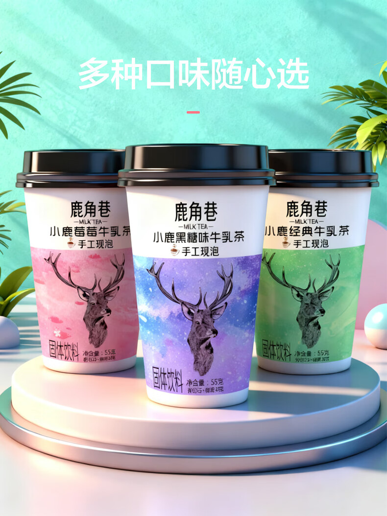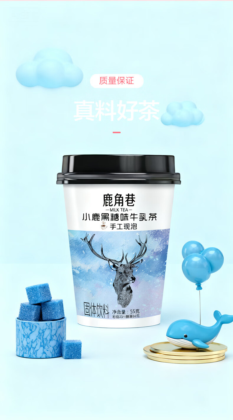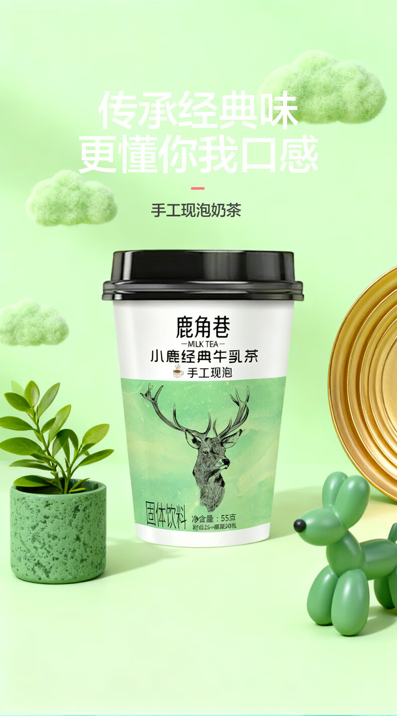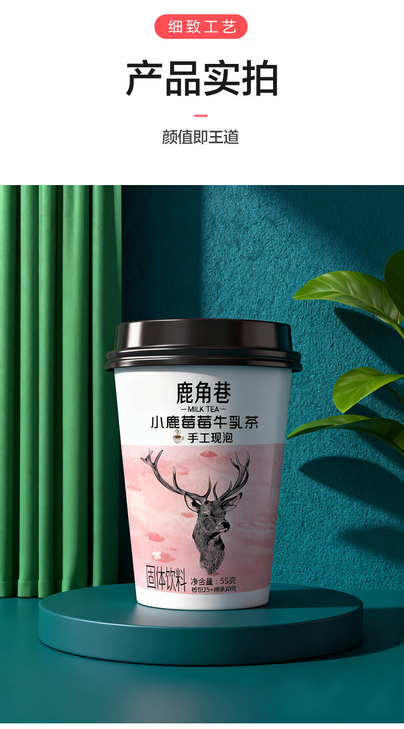 鹿角巷奶茶牛乳茶经典港式茶小鹿霉霉黑糖口味速溶冲泡下午茶热饮 3口味混装 55g/杯(4杯)