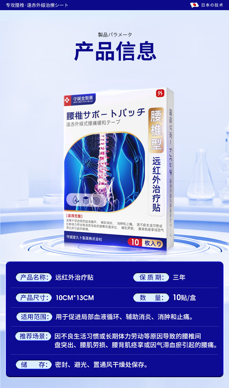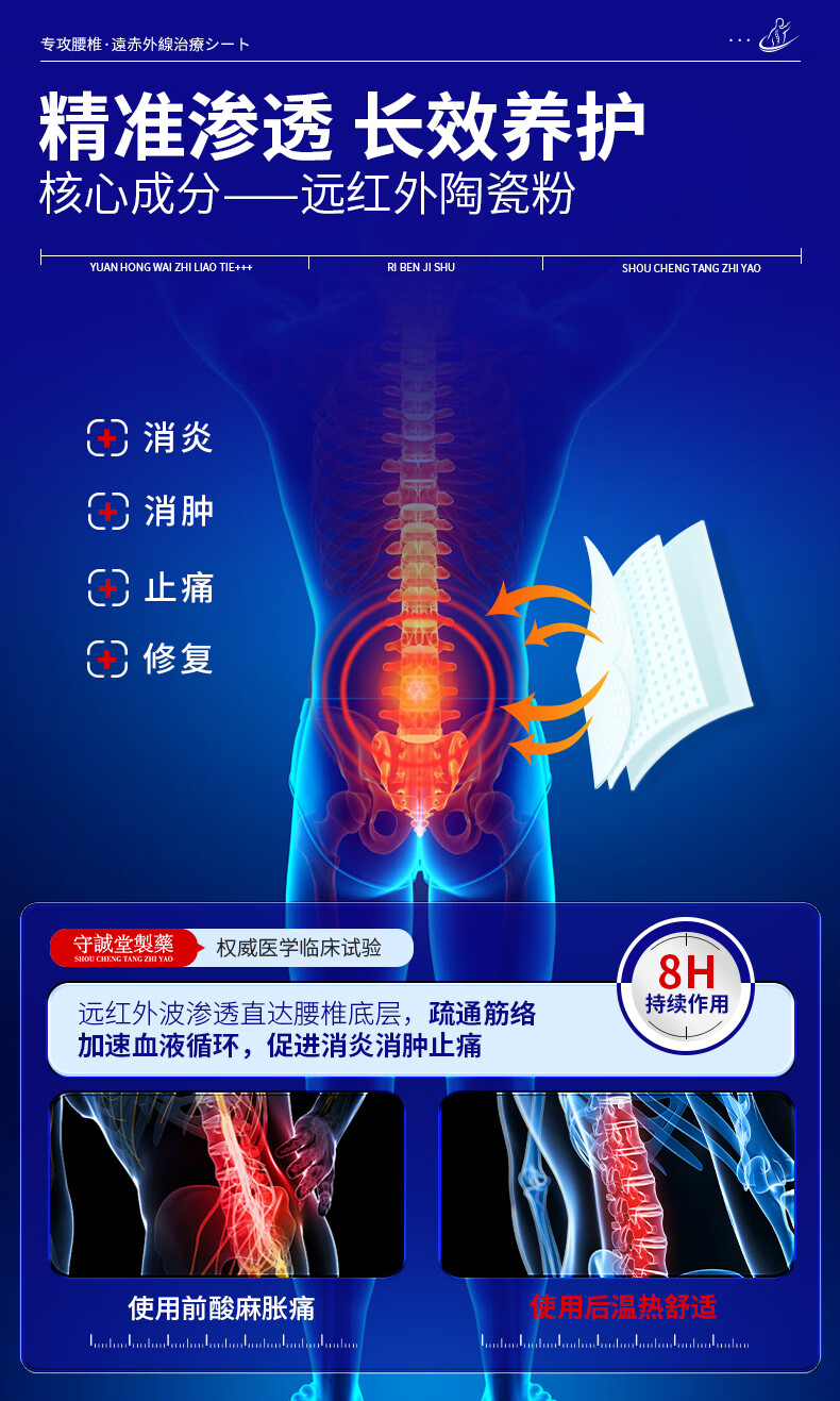 守诚堂腰椎间盘突出劳损疼痛活血止痛扭伤专用膏药热敷远红外治疗贴10贴