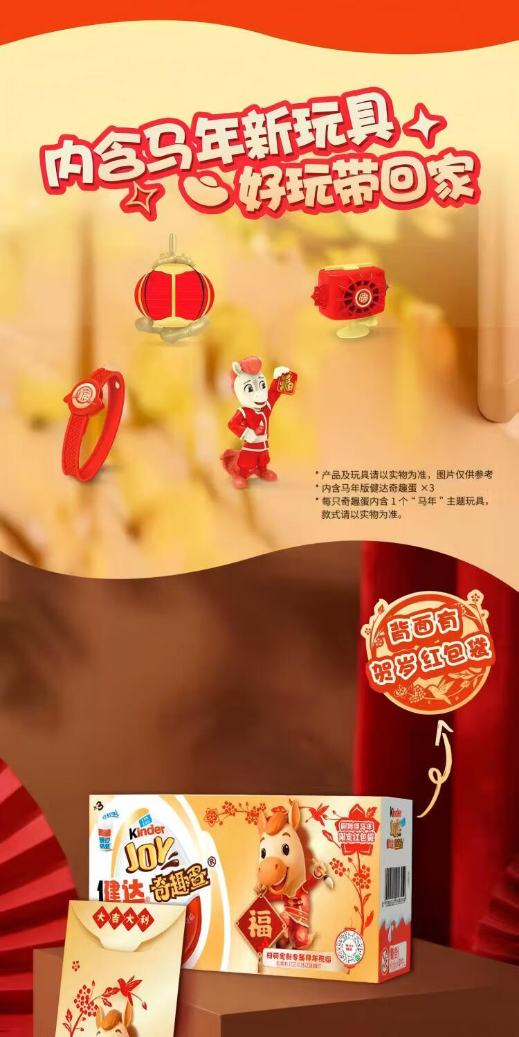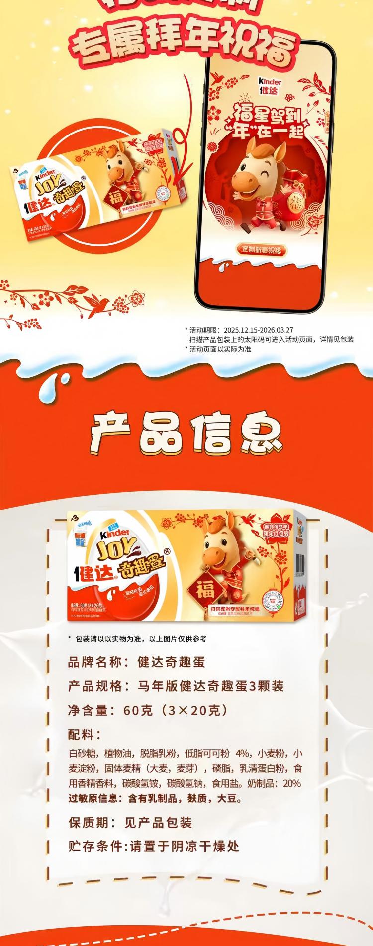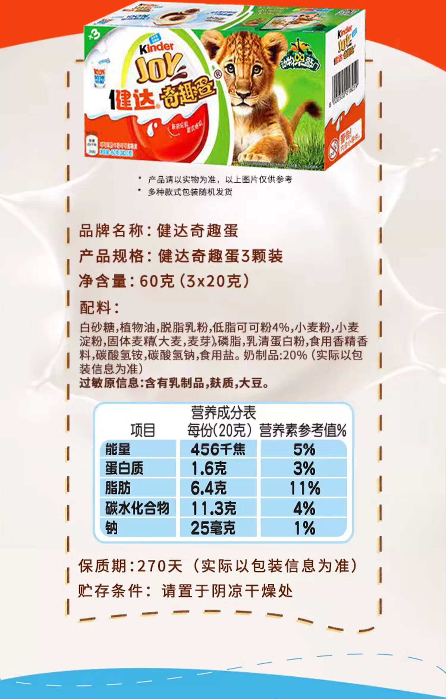 健达 奇趣蛋 动物款/马年限定款 随机发货 3颗装60g 含玩具 糖果 零食