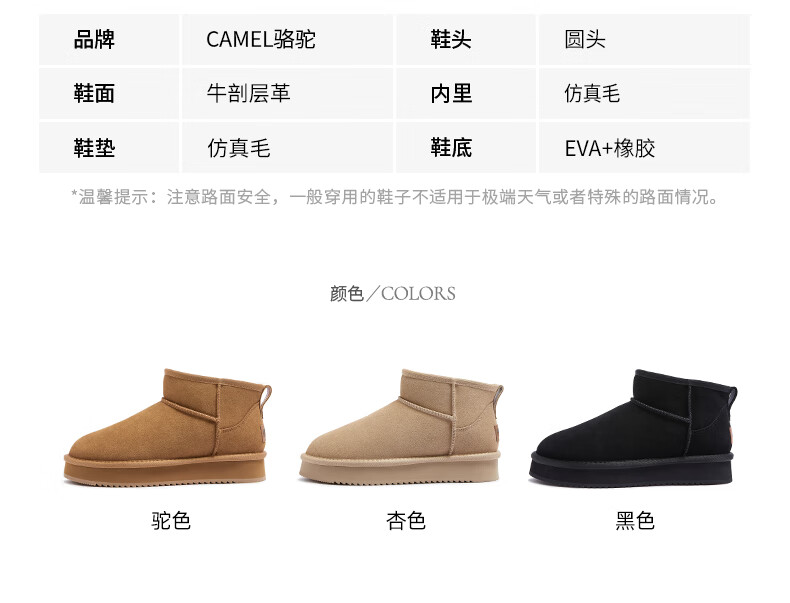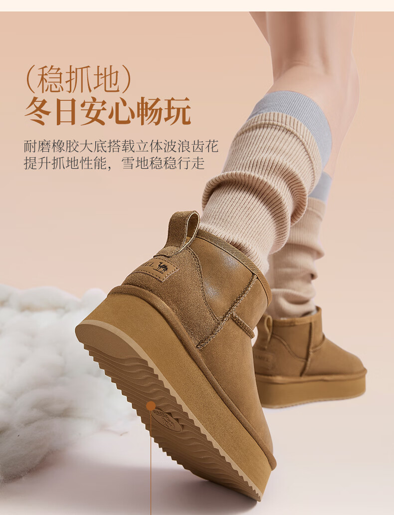 骆驼(CAMEL)经典时尚雪地靴冬季简约时尚加绒保暖百搭女靴 L15W275051男款驼色 42
