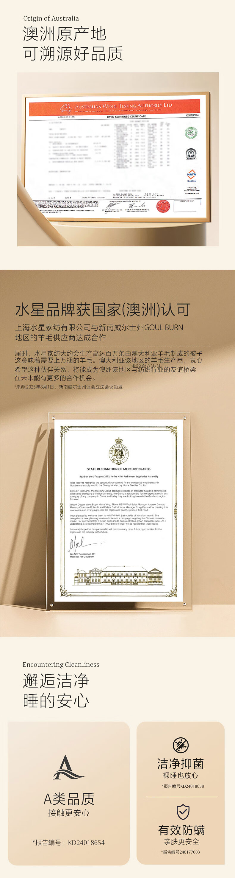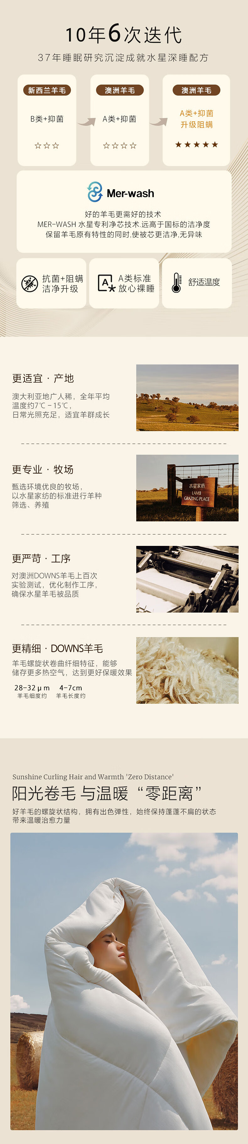 水星家纺被子100%澳洲纯羊毛被子冬季冬被芯加厚被子被芯200x230cm约6.6斤