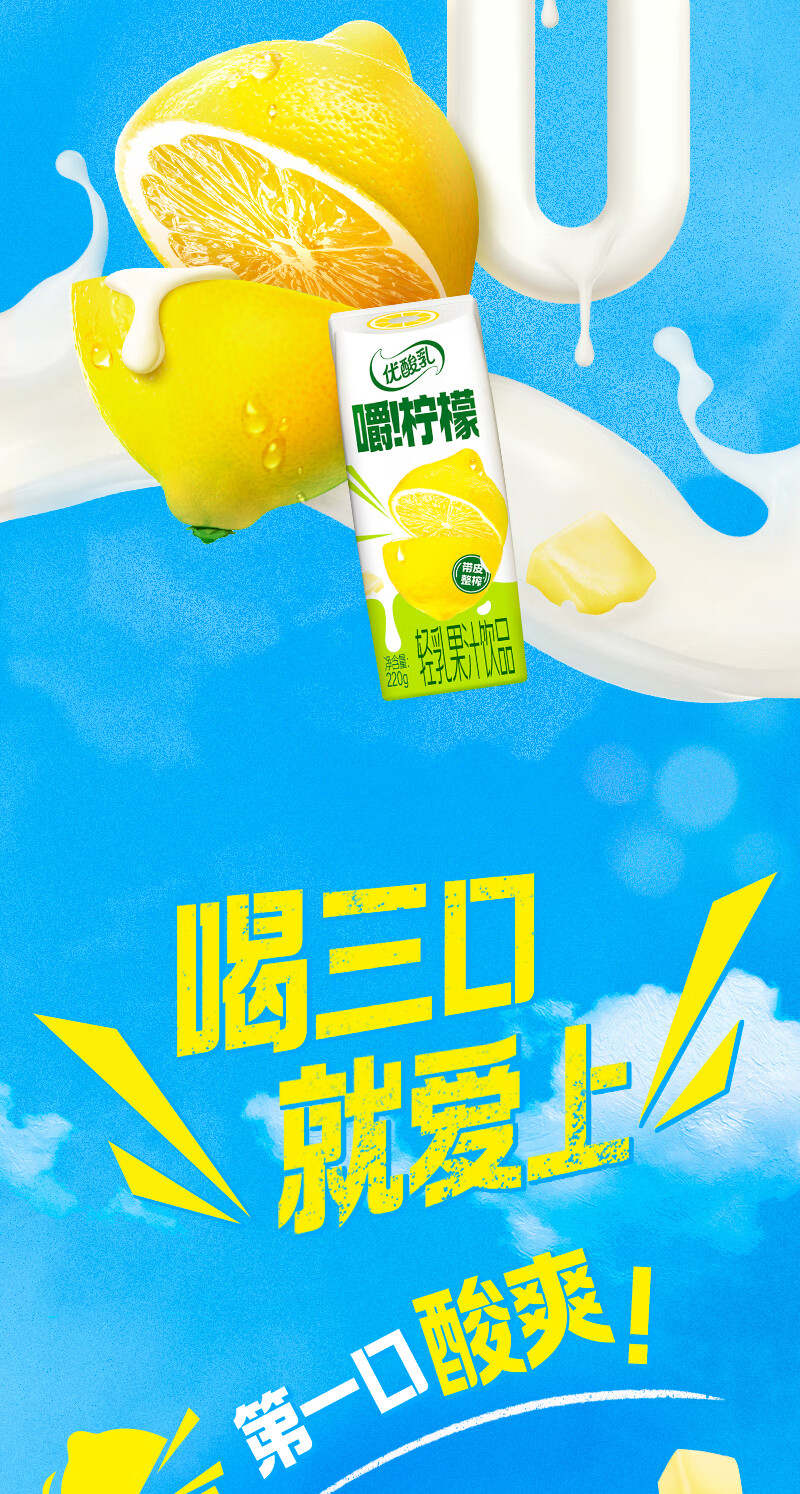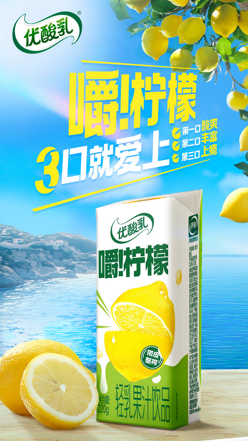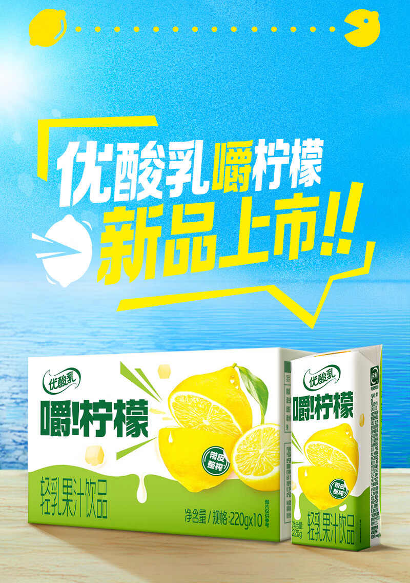 伊利优酸乳嚼柠檬轻乳果汁饮品220g*10盒 口感清爽 礼盒 9-10月产 汪铎同款