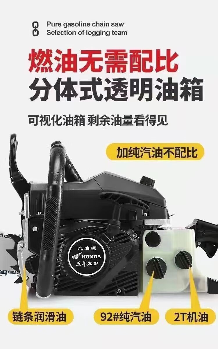 五羊本田油锯大功率四冲程汽油锯20寸家用伐木锯汽油链锯砍树锯工业品 机油