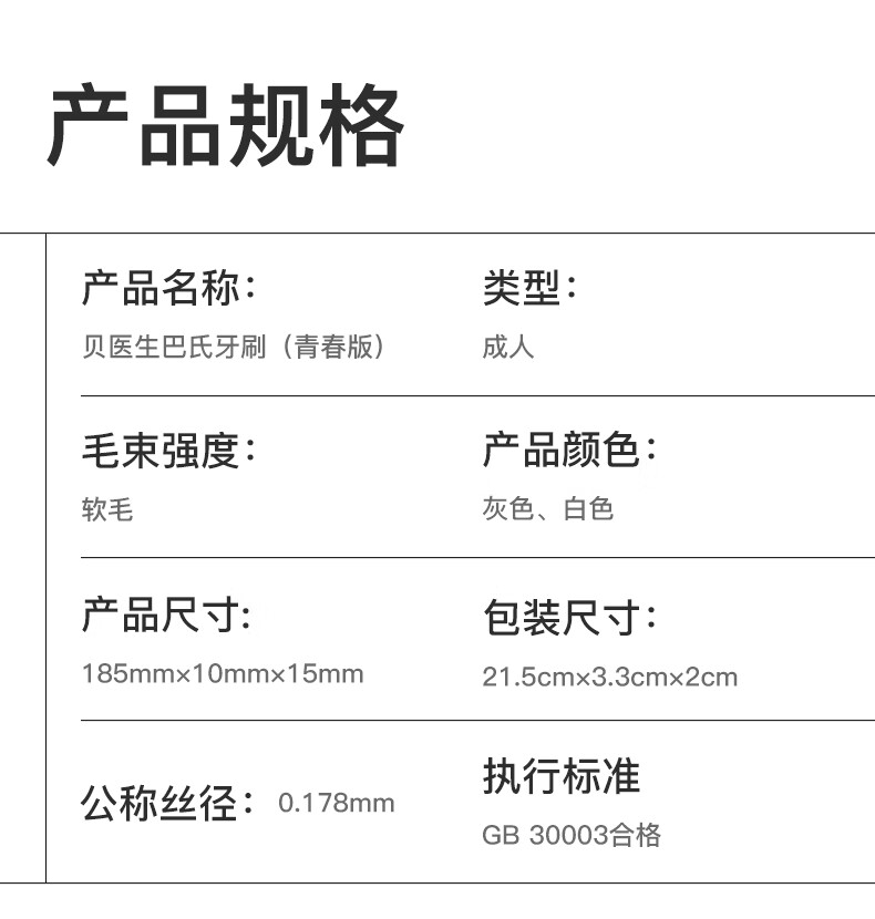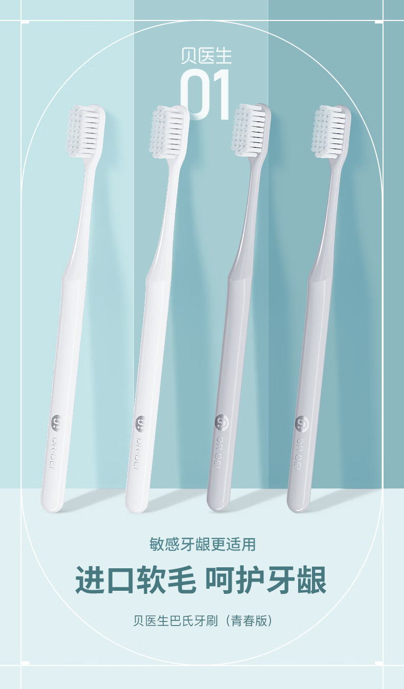 贝医生 DR.BEI软毛牙刷 细毛护龈进口软毛 小刷头 青春版灰色单支装