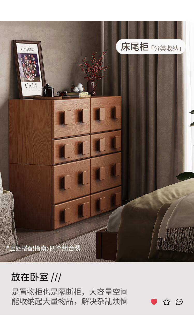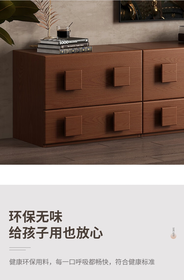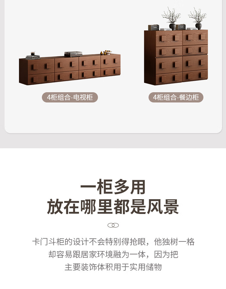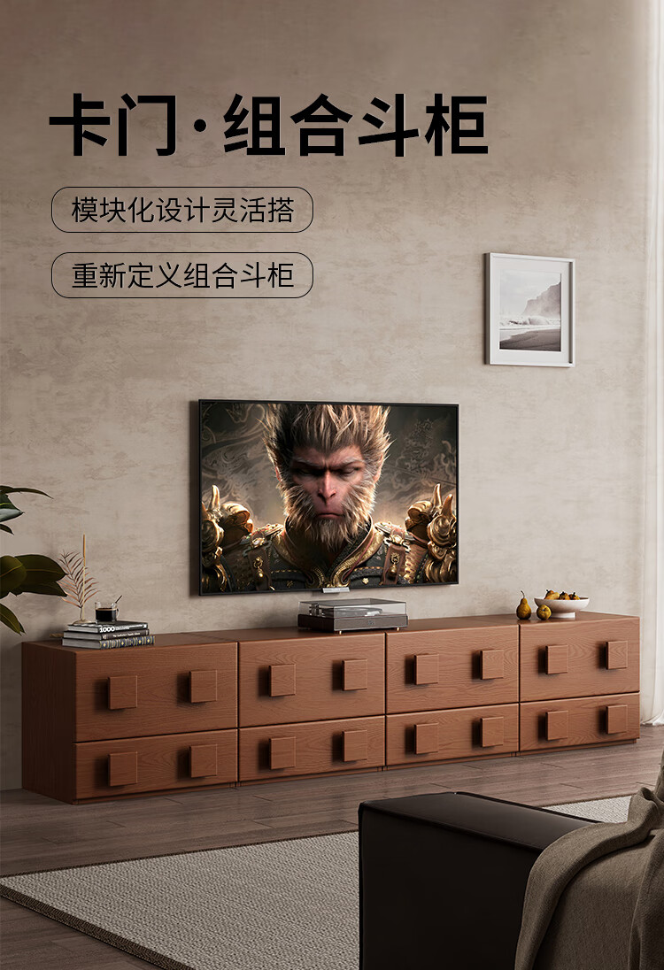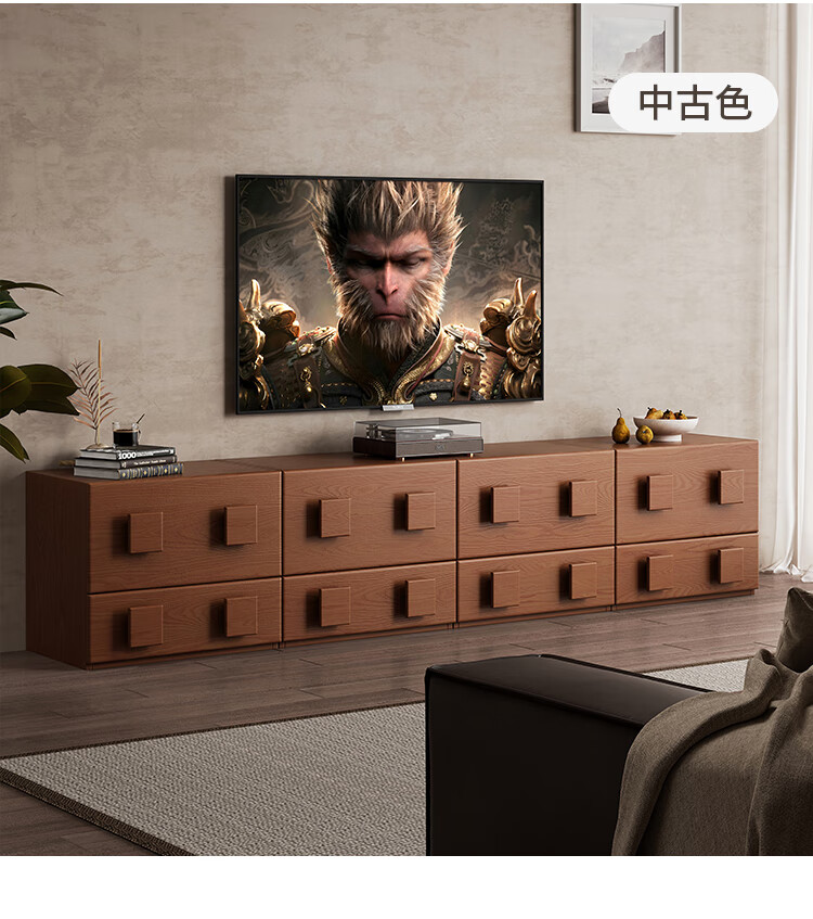 芈迪实木电视柜客厅家用落地复古卡门柜简约电视机边柜组合模块中古风 四个胡桃色斗柜【颜色备注】