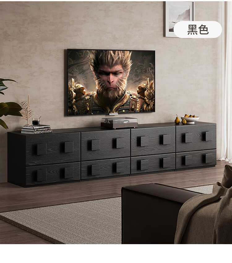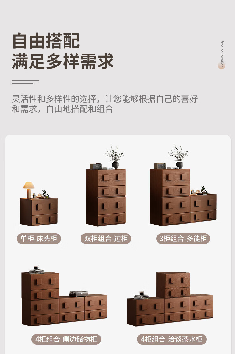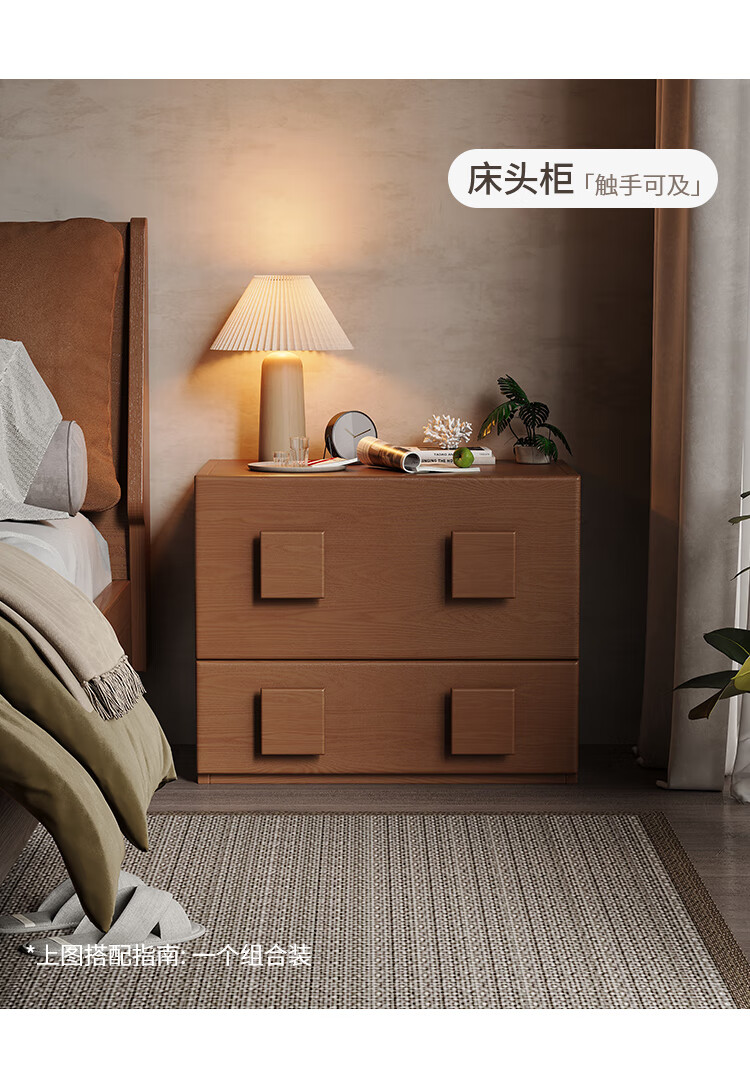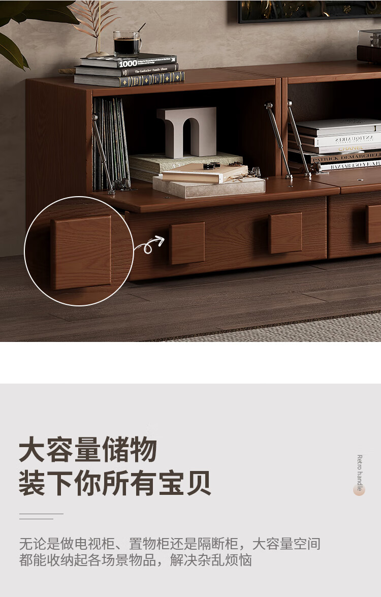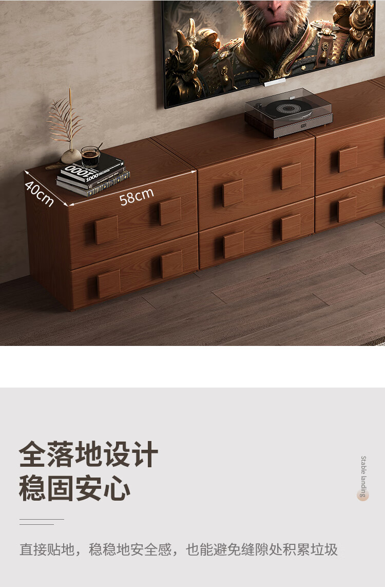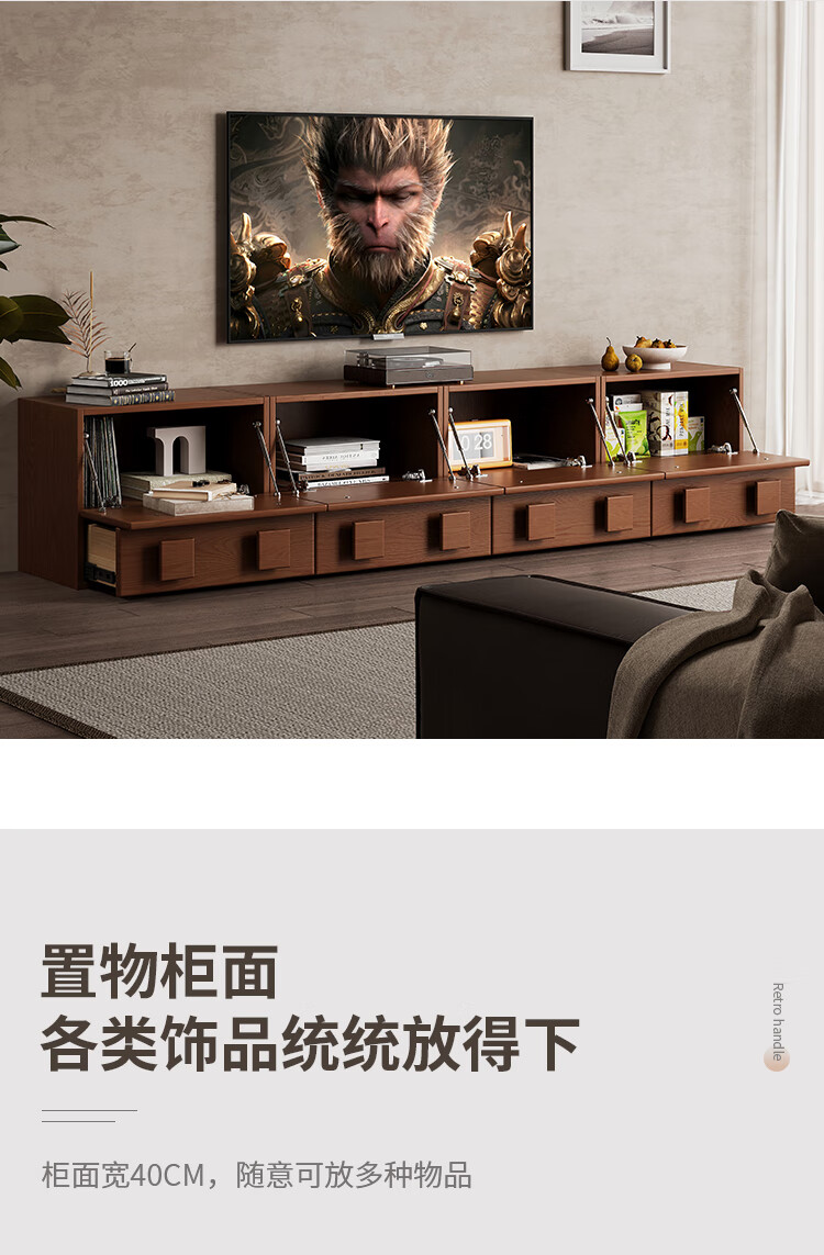 芈迪实木电视柜客厅家用落地复古卡门柜简约电视机边柜组合模块中古风 四个胡桃色斗柜【颜色备注】