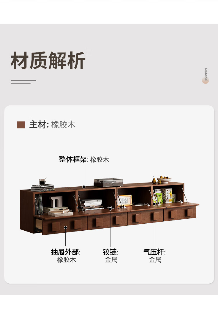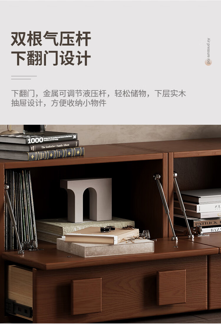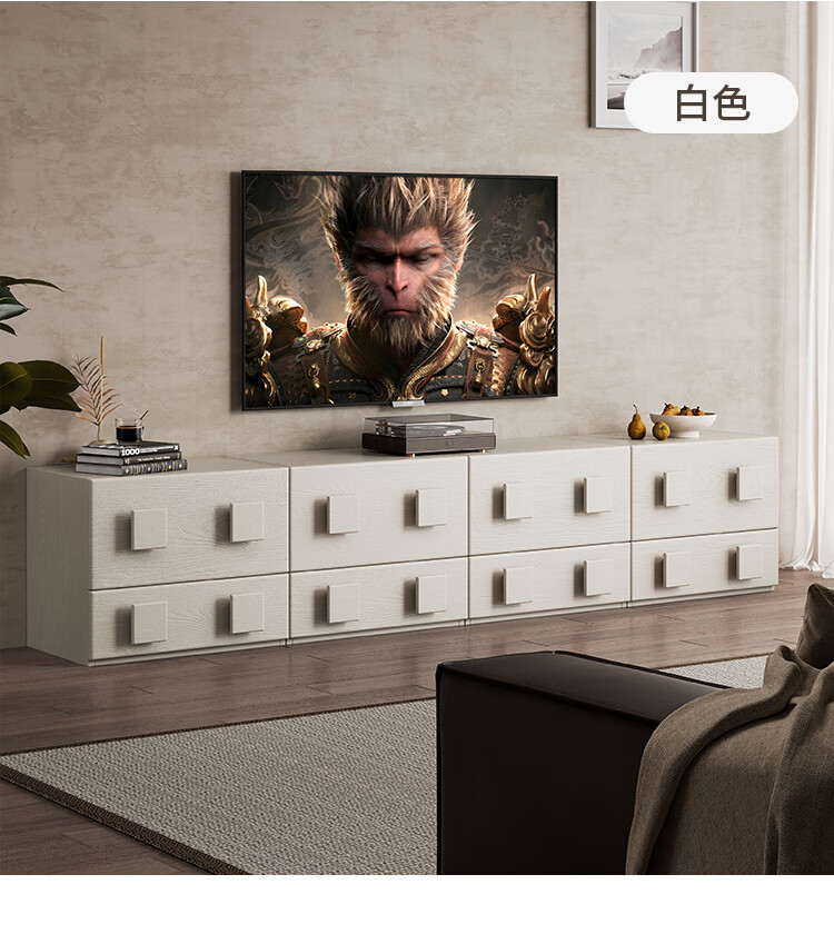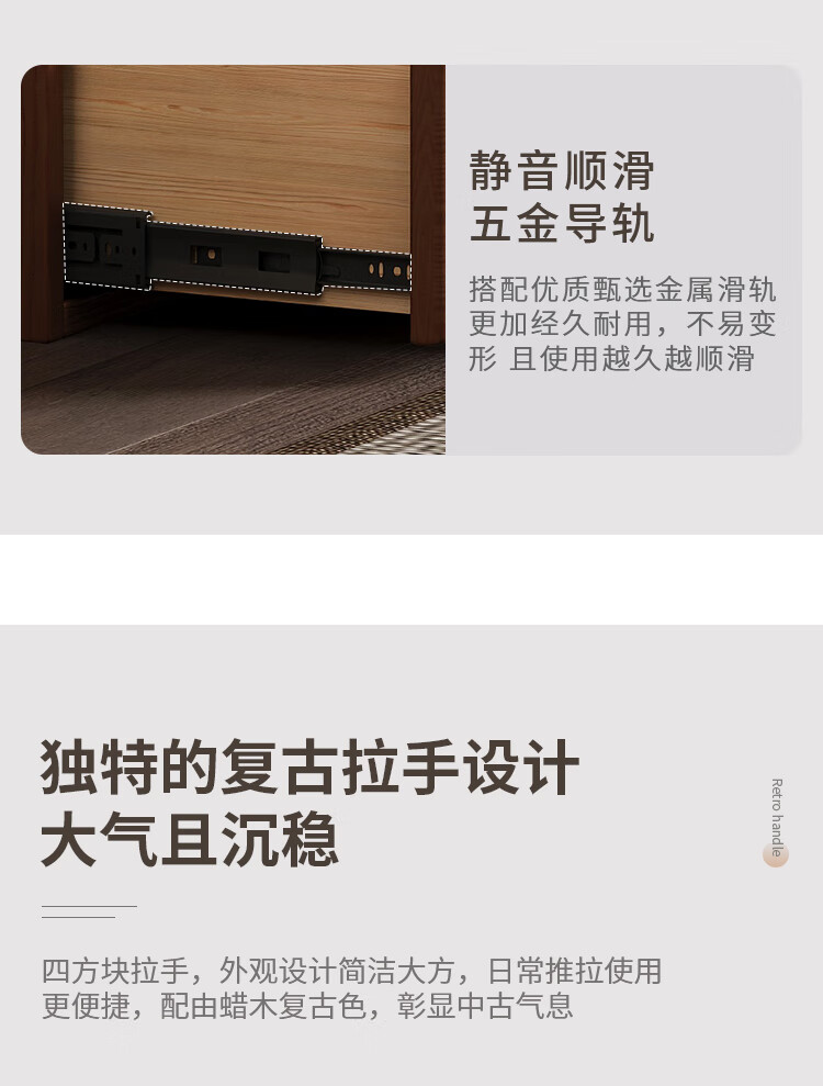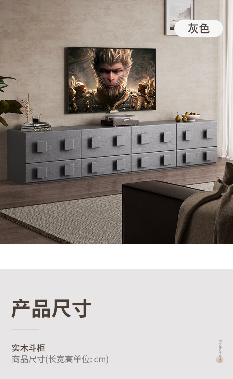 芈迪实木电视柜客厅家用落地复古卡门柜简约电视机边柜组合模块中古风 四个胡桃色斗柜【颜色备注】