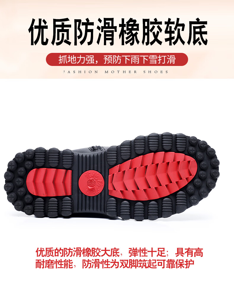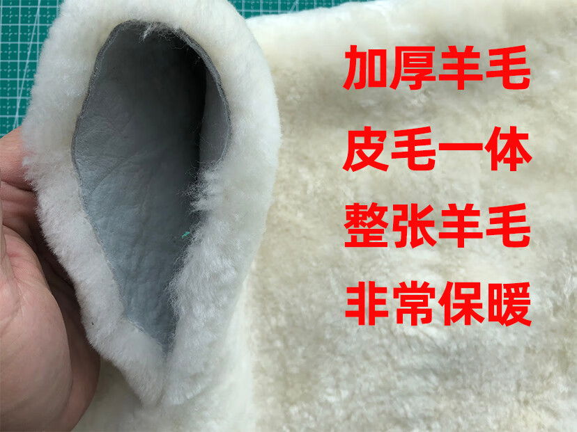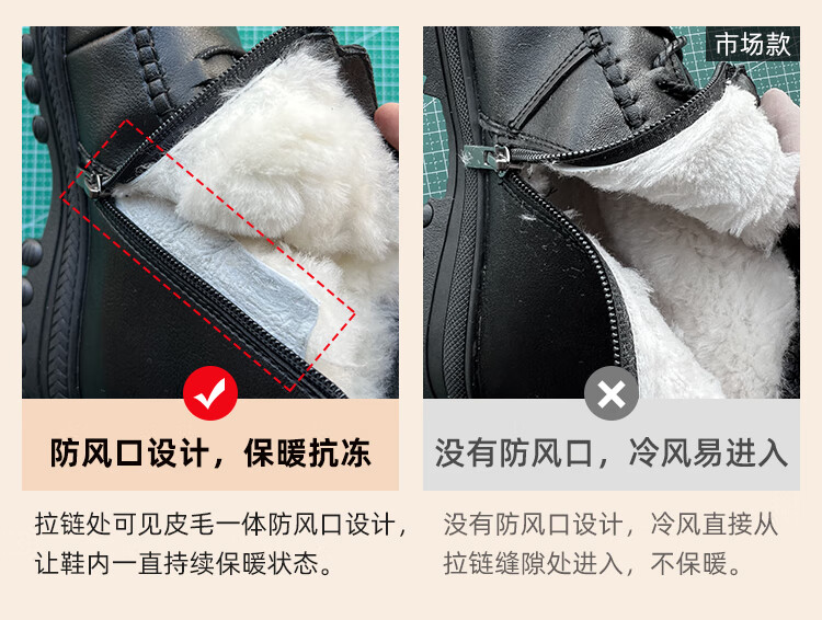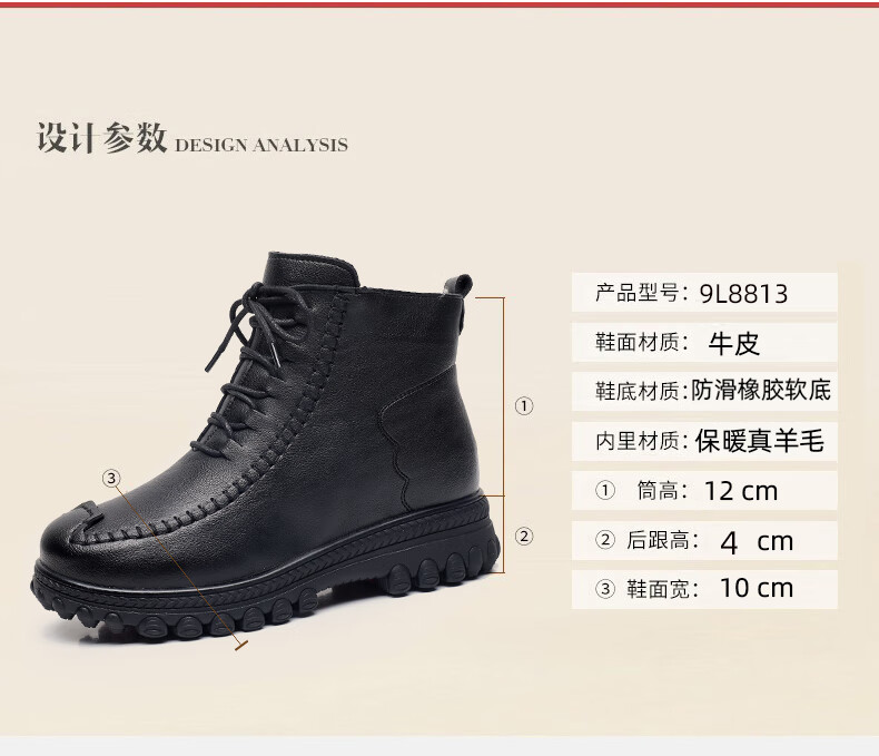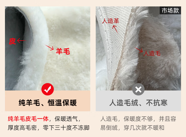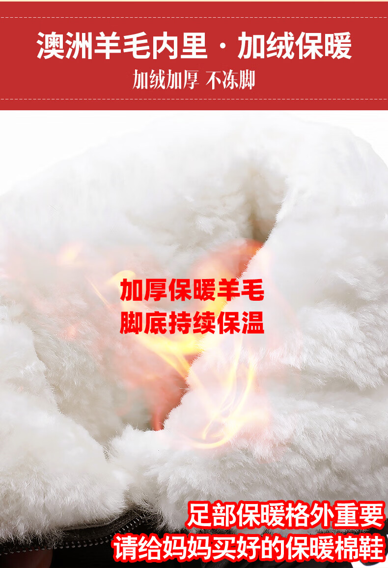 稻草人(MEXICAN)羊毛皮毛一体加厚保暖棉鞋防滑平底真皮短靴女中老年妈妈鞋雪地棉 黑色 35
