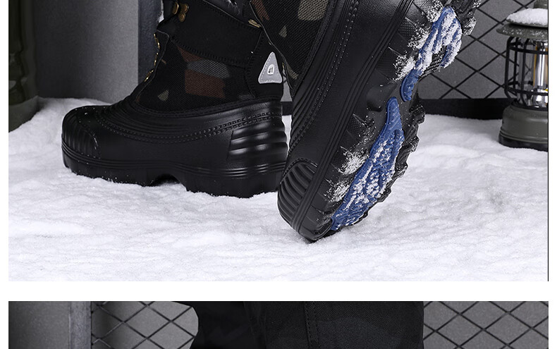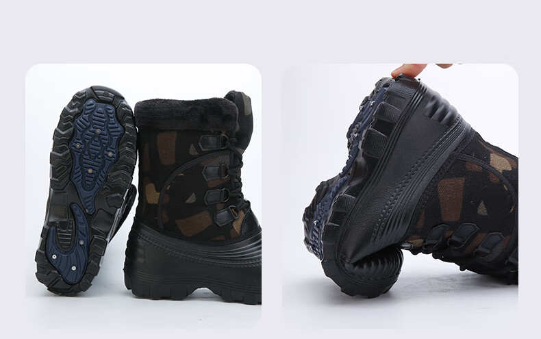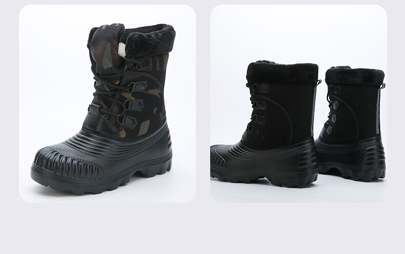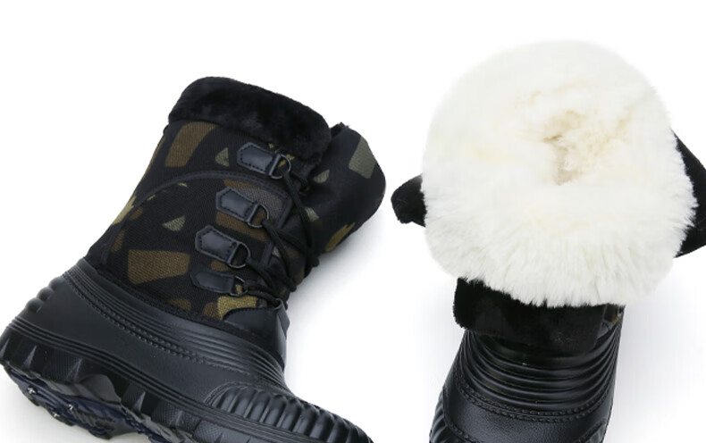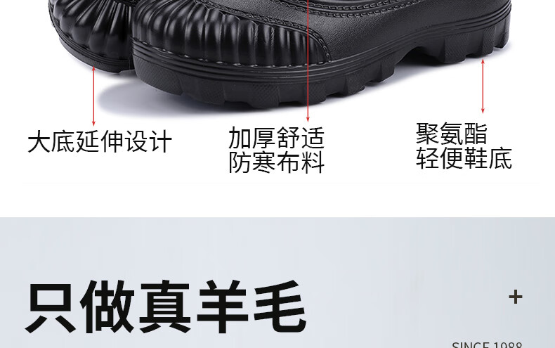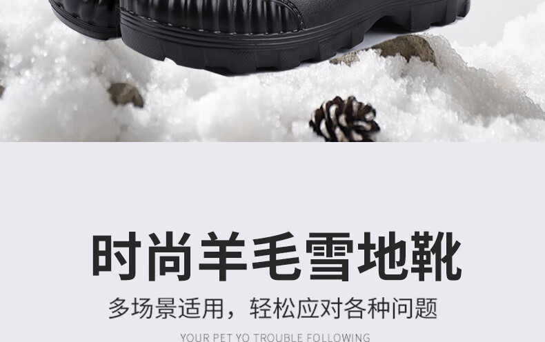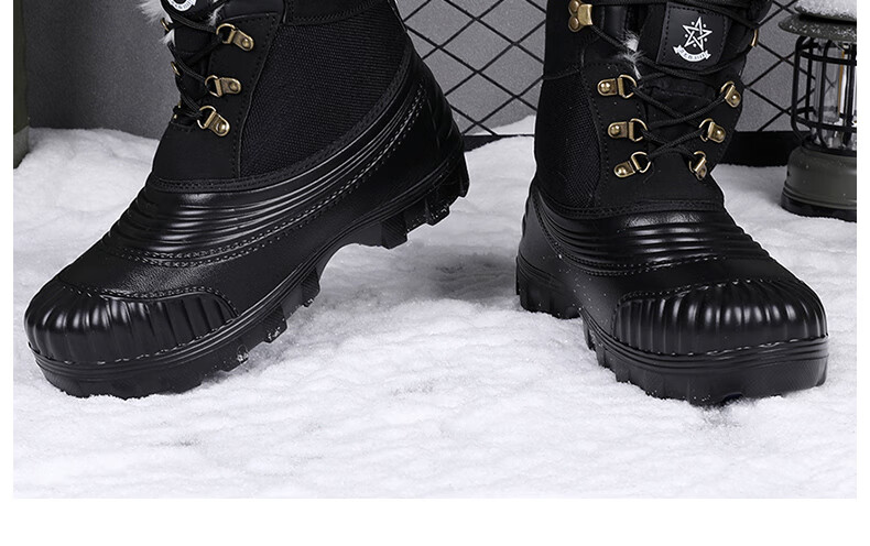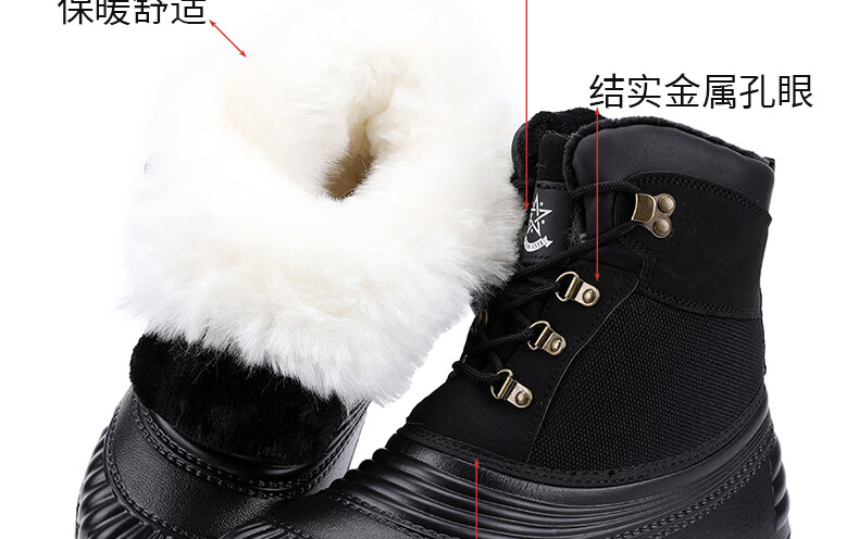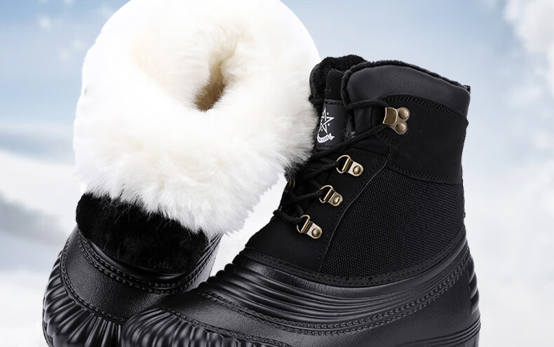 稻草人(MEXICAN)冬季户外特厚纯羊毛雪地靴皮毛一体防寒靴高帮棉鞋防水防滑钓鱼靴 公羊25-1纯黑色 【特厚纯羊毛】 38 【标准运动鞋尺码】