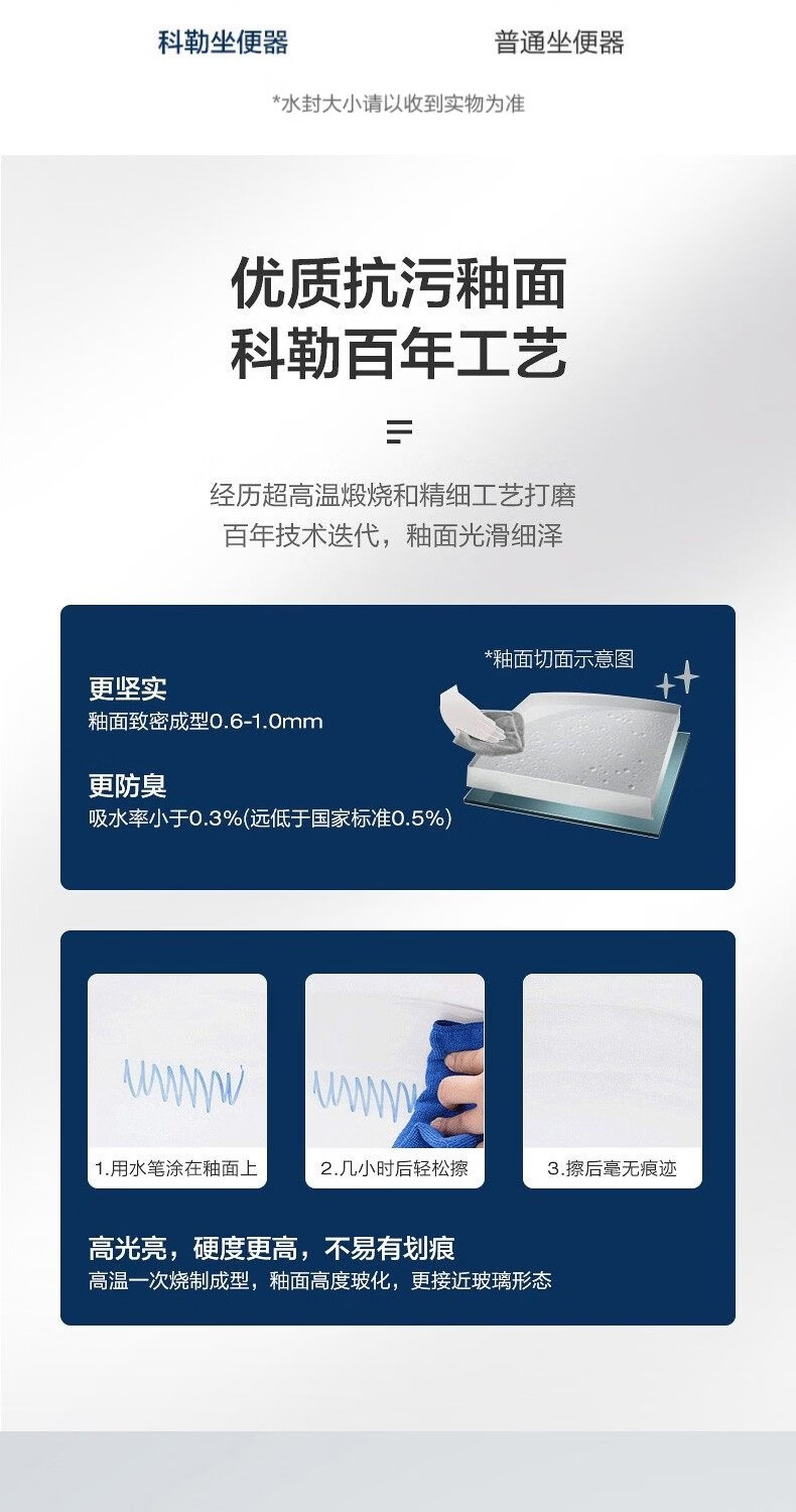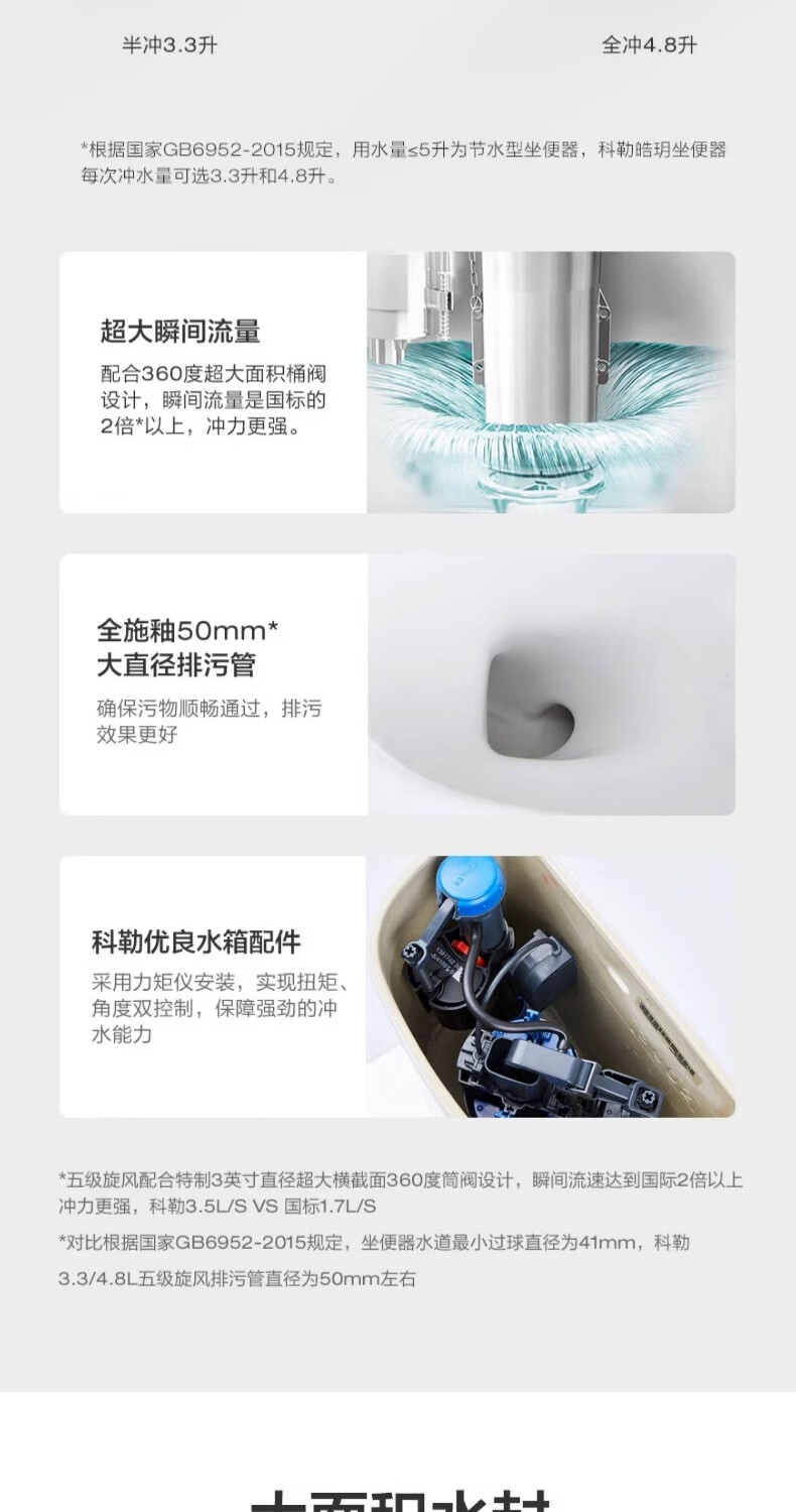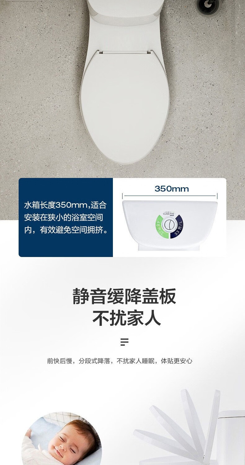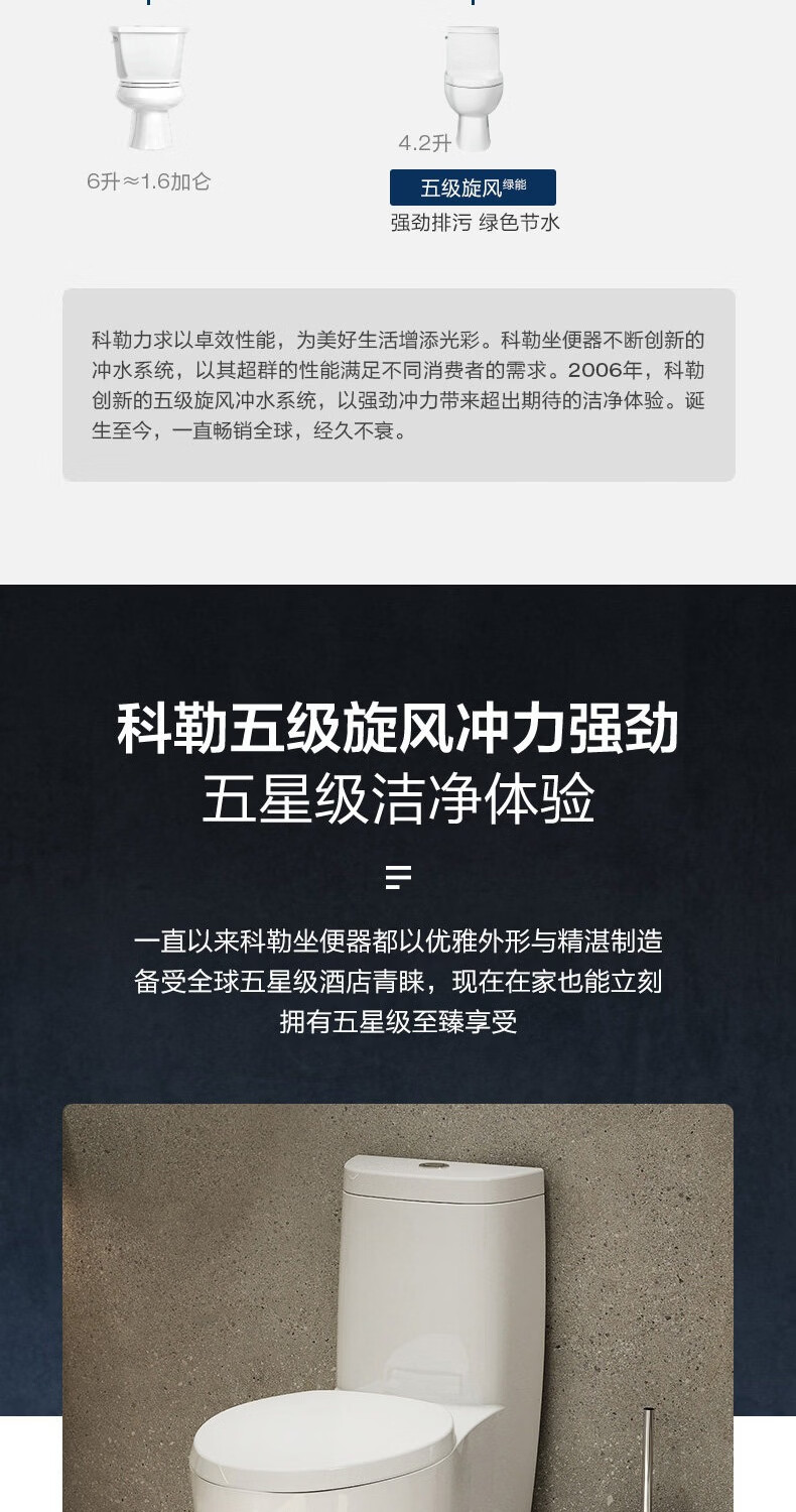 科勒(KOHLER)五级旋风马桶皓玥家用卫生间坐便器缓降连体式马桶小户型3902T 皓玥连体坐便器 305/300mm