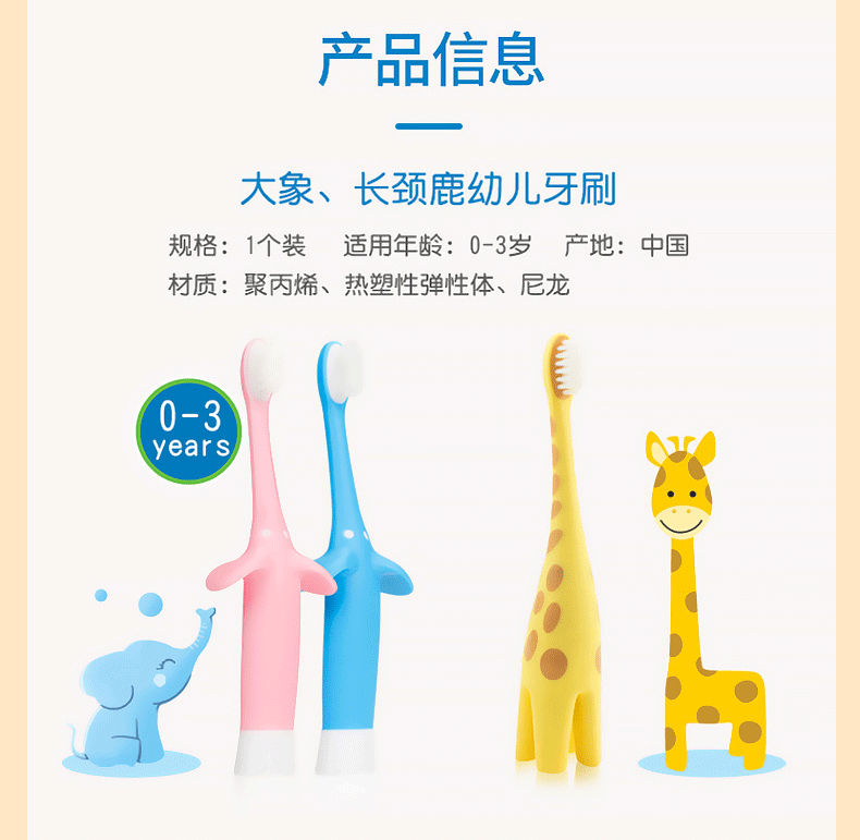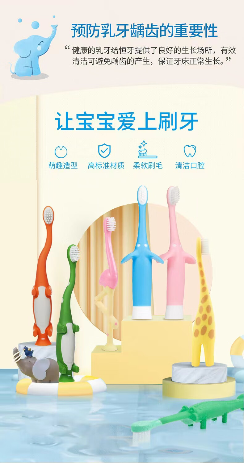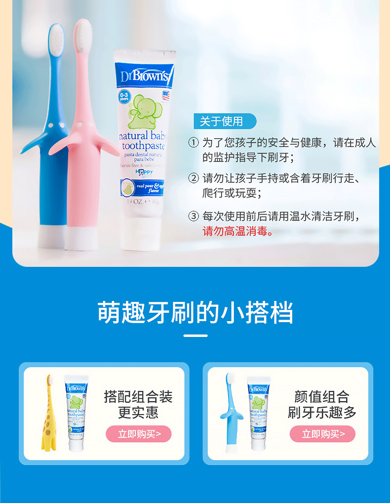 布朗博士儿童软毛牙刷 0-3岁口腔清洁训练款 防蛀牙启蒙乳牙刷(长颈鹿)