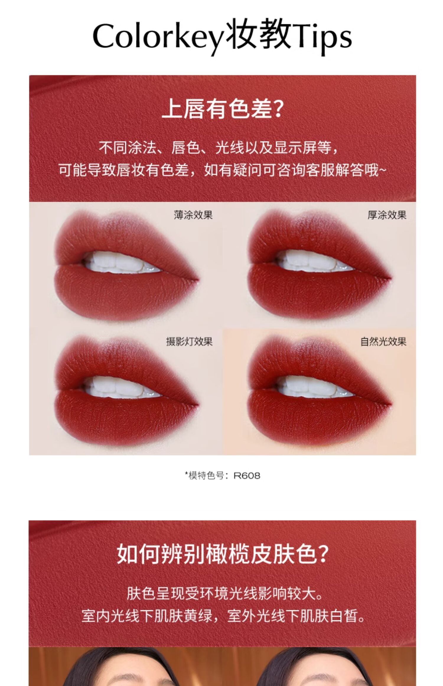 Color Key珂拉琪空气唇釉丝绒唇釉镜光唇釉显白百搭易上色口红女生新年礼物 B605*1支