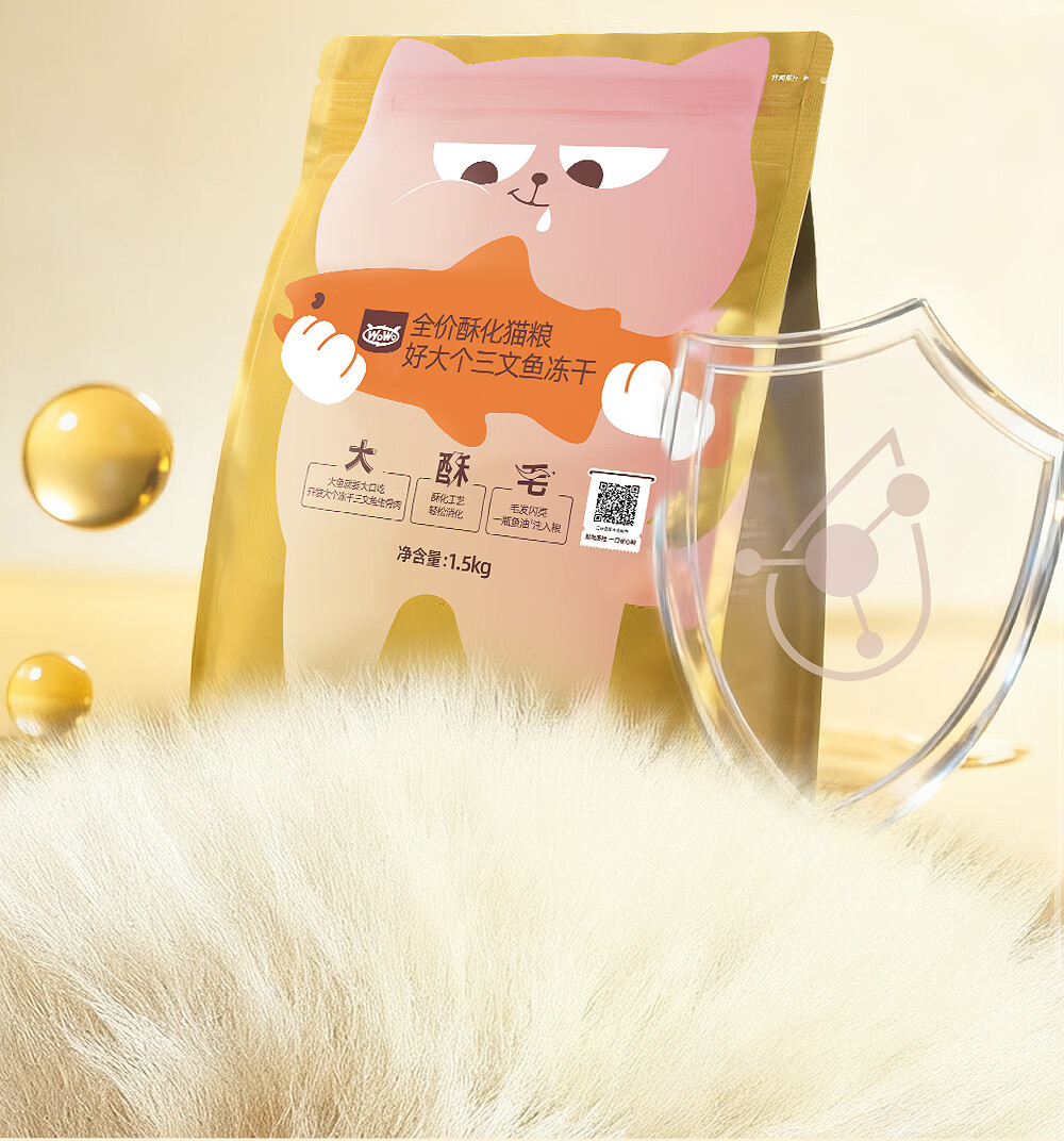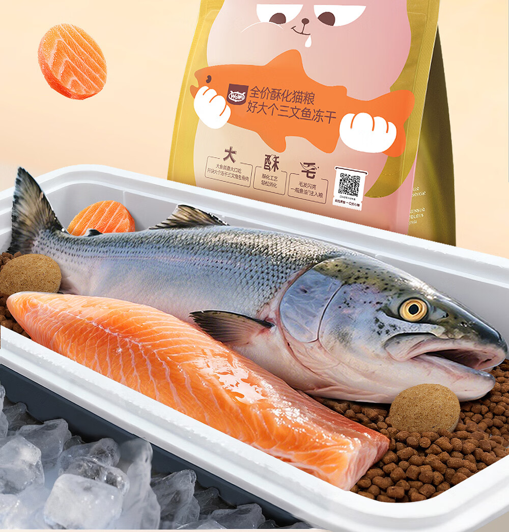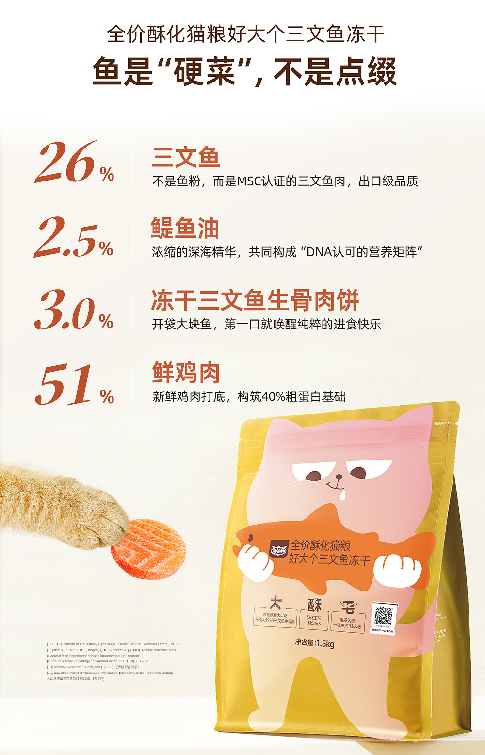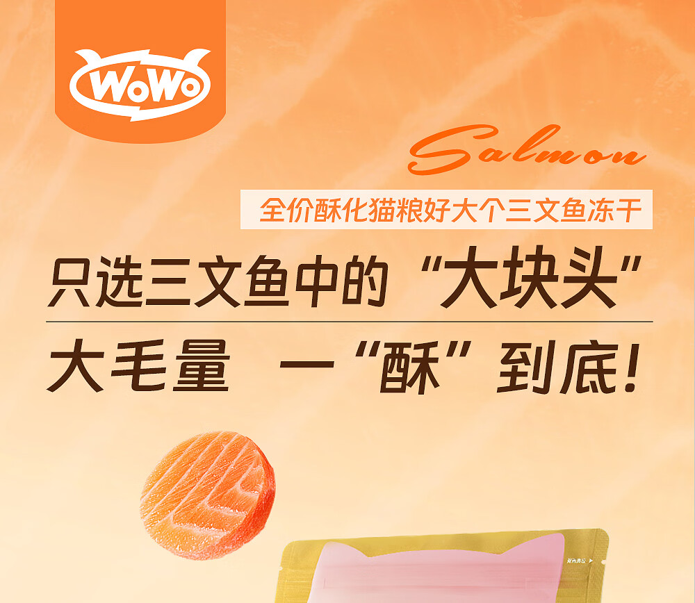 喔喔(WOWO)猫粮成猫幼猫通用三文鱼鳀鱼油美毛冻干酥化粮猫粮 酥化粮试吃40g*3