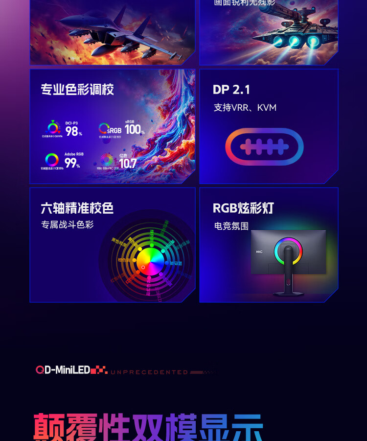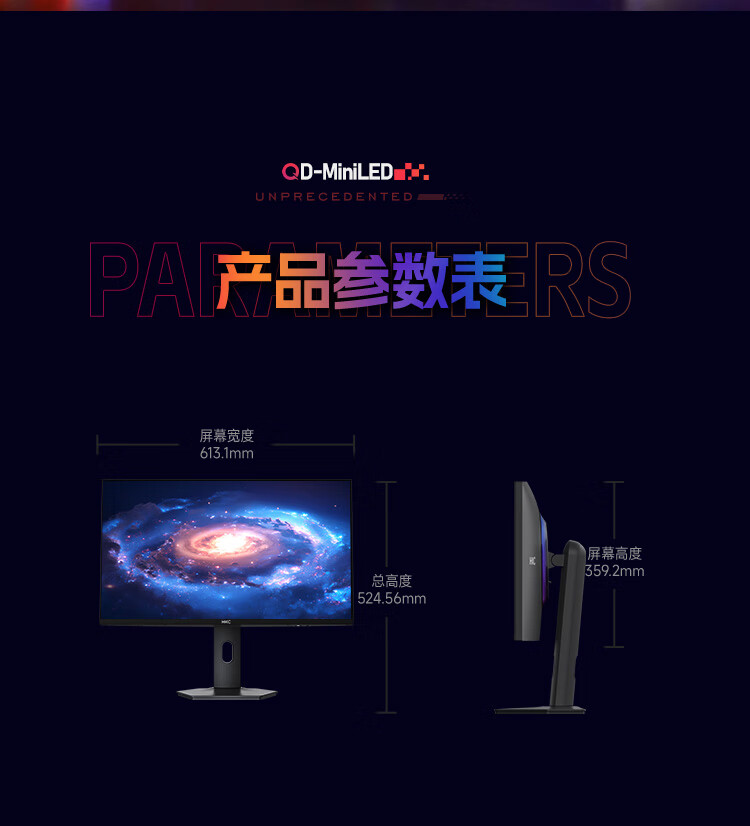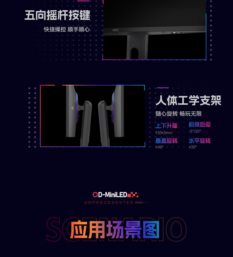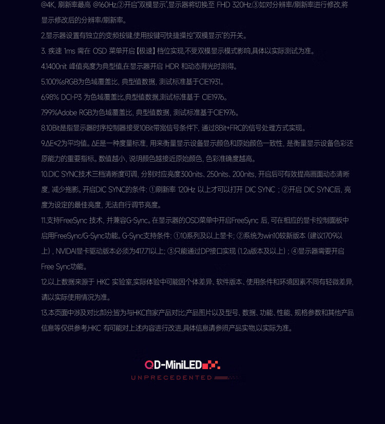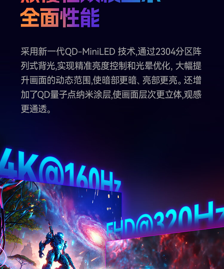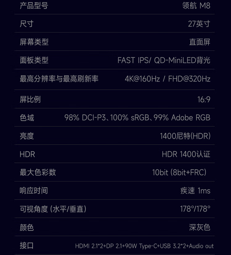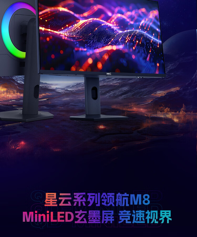 HKC 27英寸4K 160Hz双模320Hz MiniLED 2304分区玄墨屏游戏电竞Type-C90W旋转升降DP2.1显示器领航M8