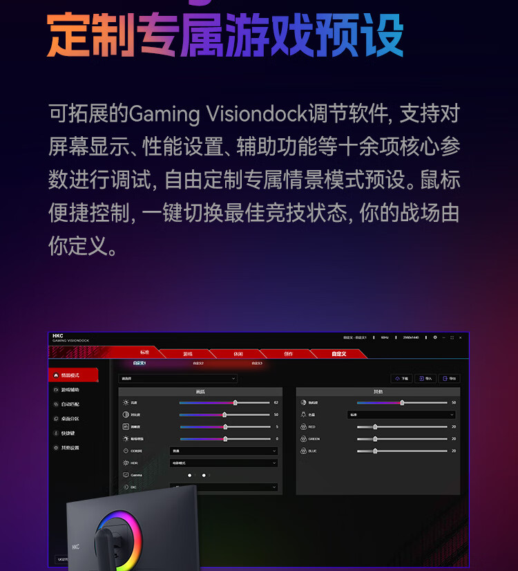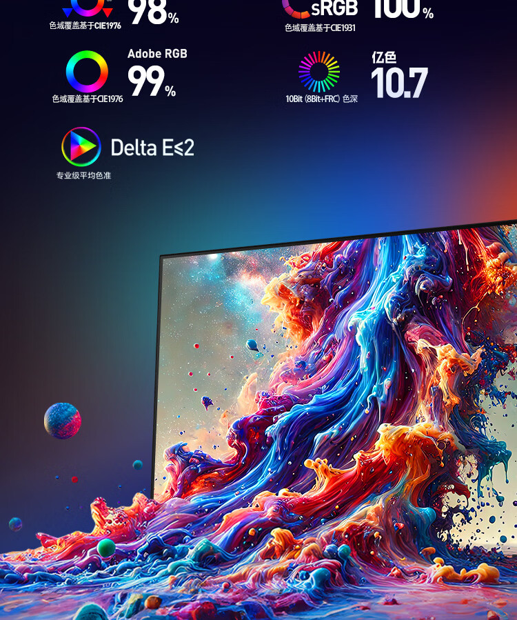 HKC 26.5英寸QD-OLED屏幕4K超清240Hz原生10bit HDR400电竞Type-C90W旋转升降27台式电脑显示器GS27UK