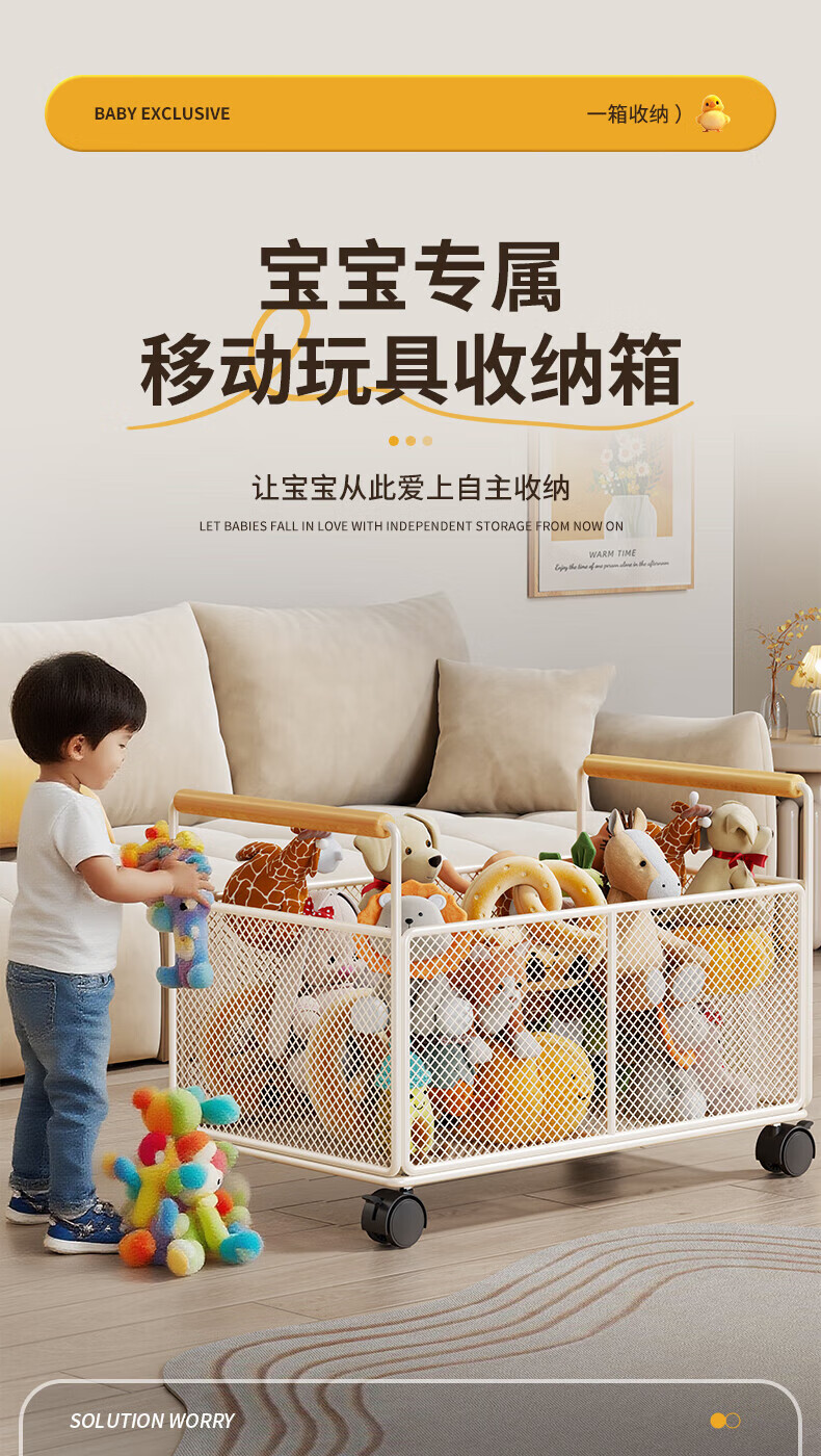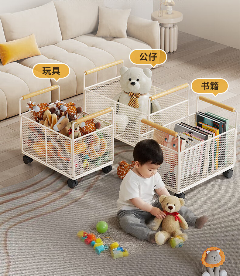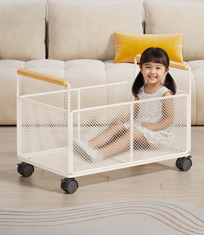 尔思家玩具收纳箱网易严选儿童玩偶收纳小推车宝宝毛绒玩具推车置物架 白色小号-无轮 【精明宝妈之选】