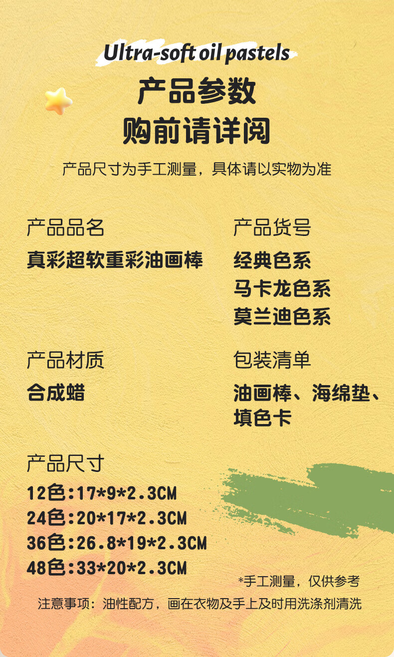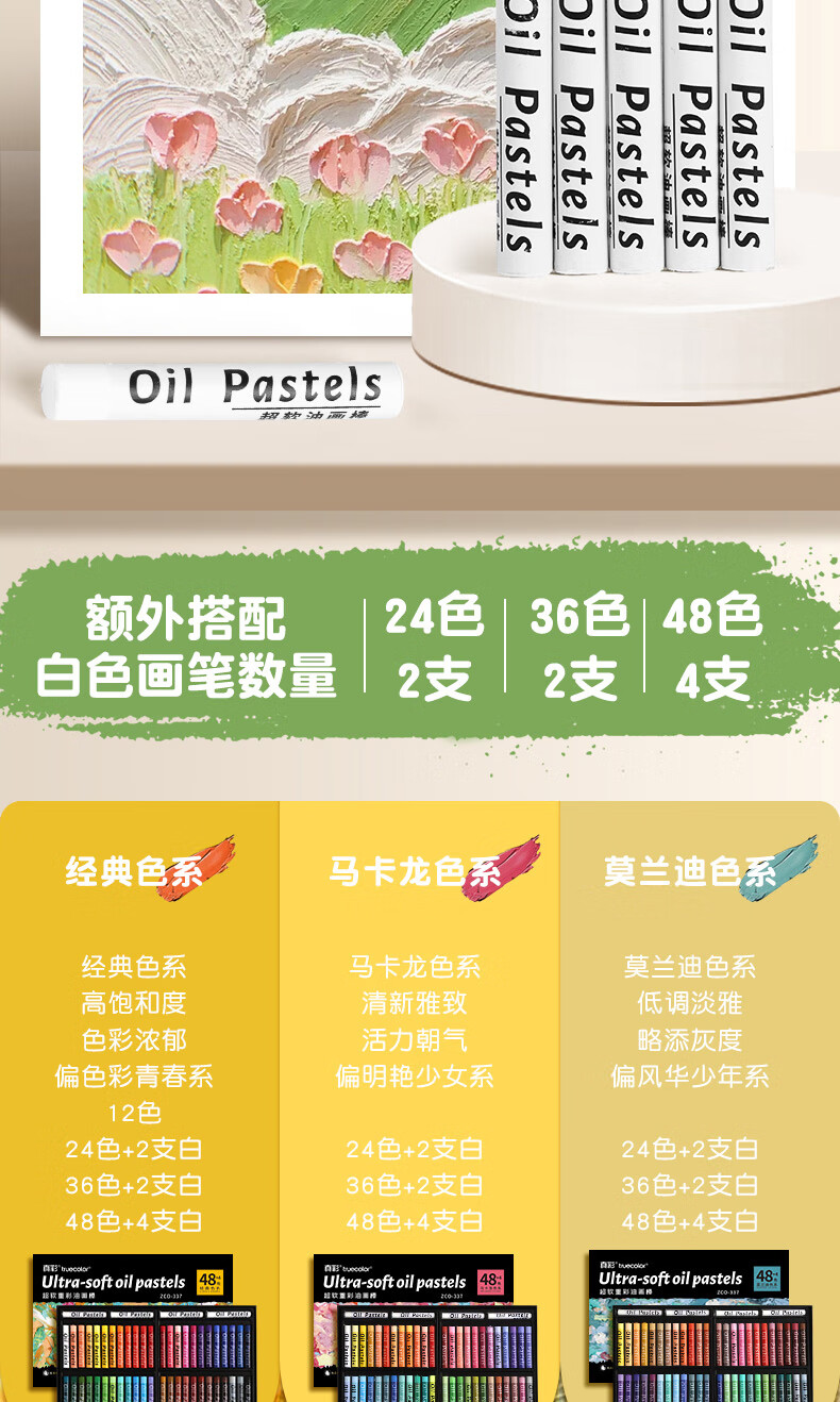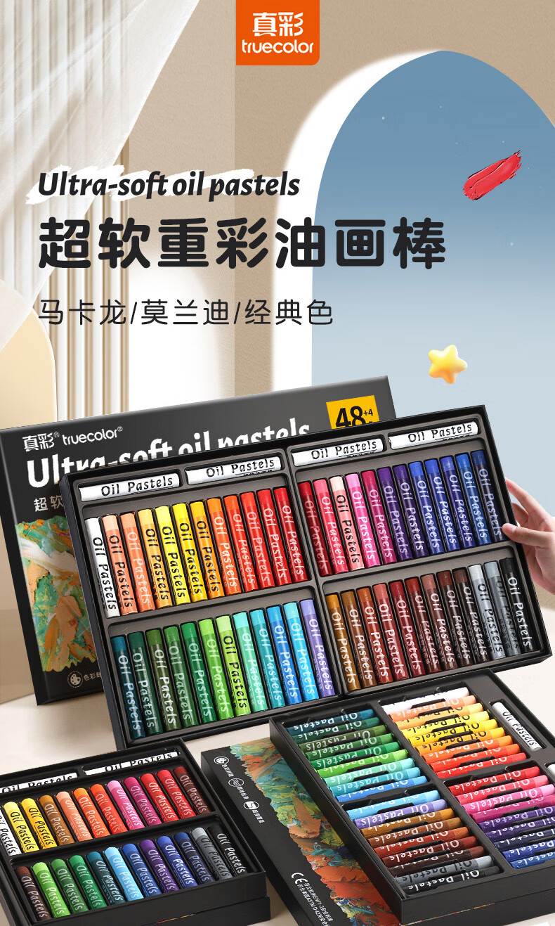 真彩(TRUECOLOR)真彩超软重彩油画棒diy画儿童尼泊尔本蜡笔油画棒幼儿园专用纸小学生画框画册刮刀工具高颜值套装 超软重彩油画棒36色专业级【经典色】
