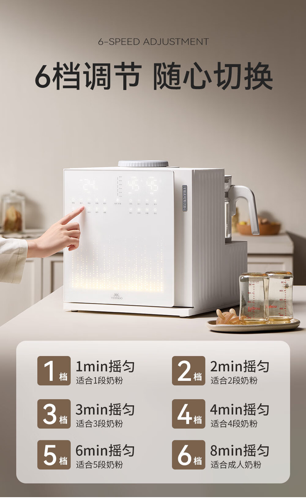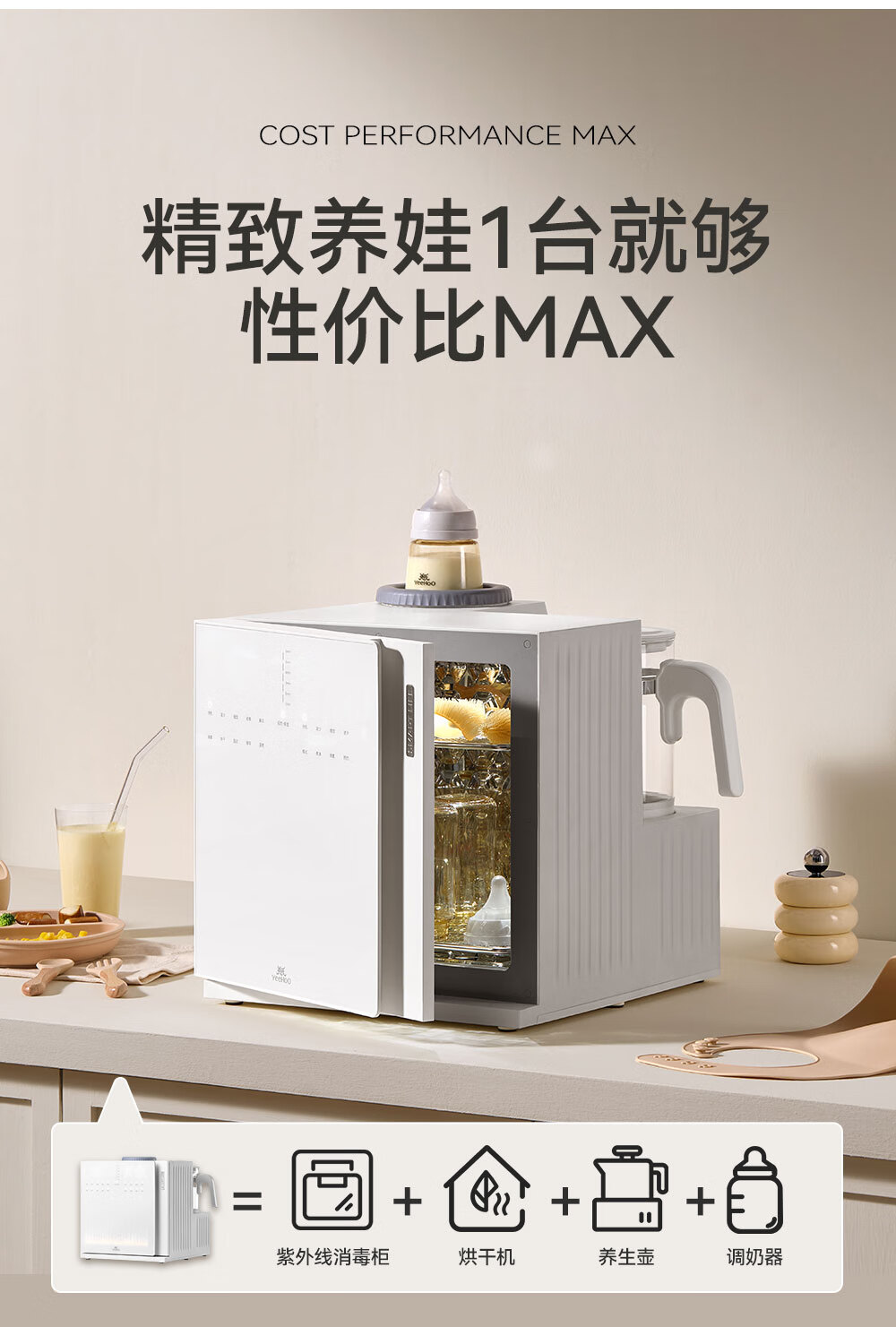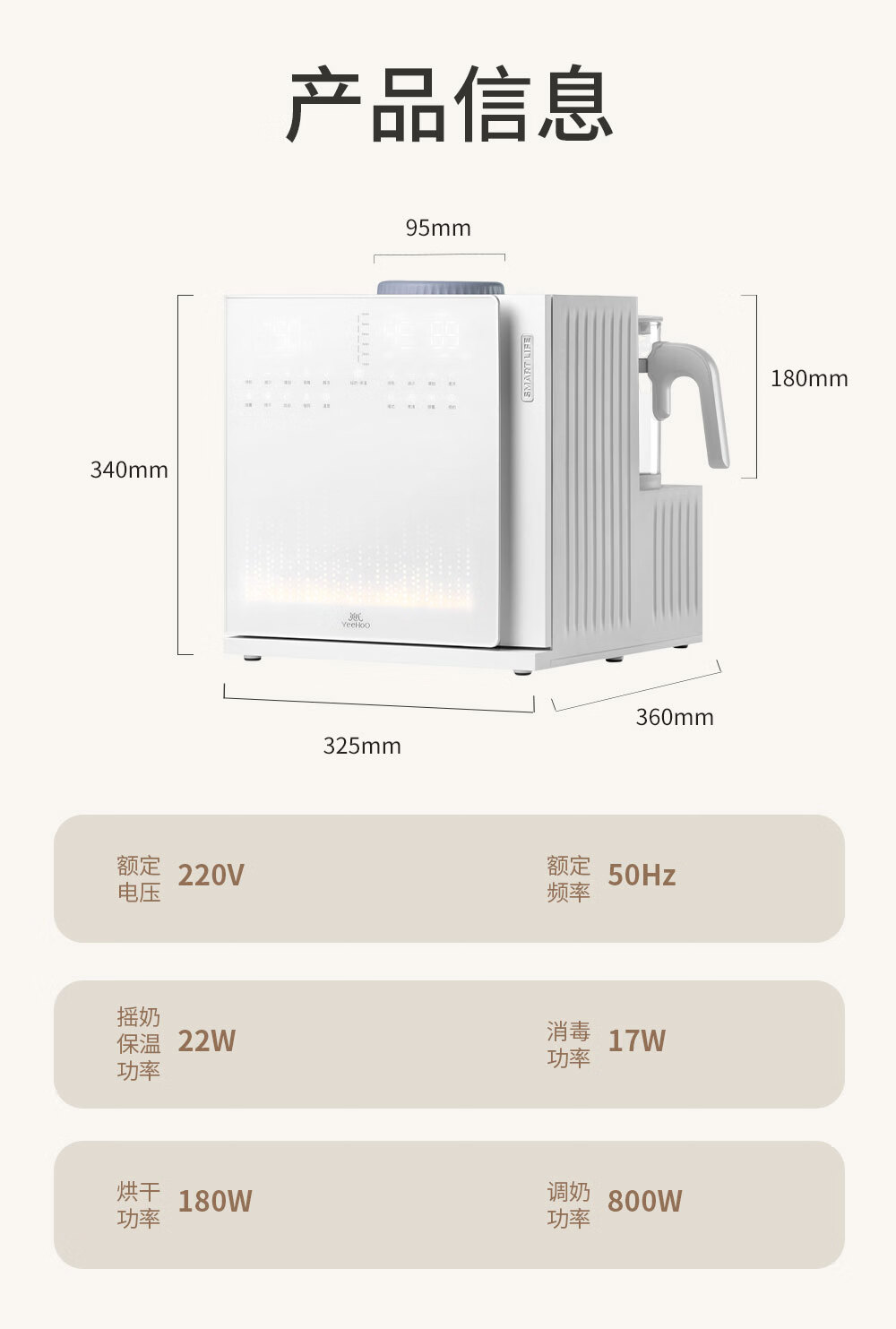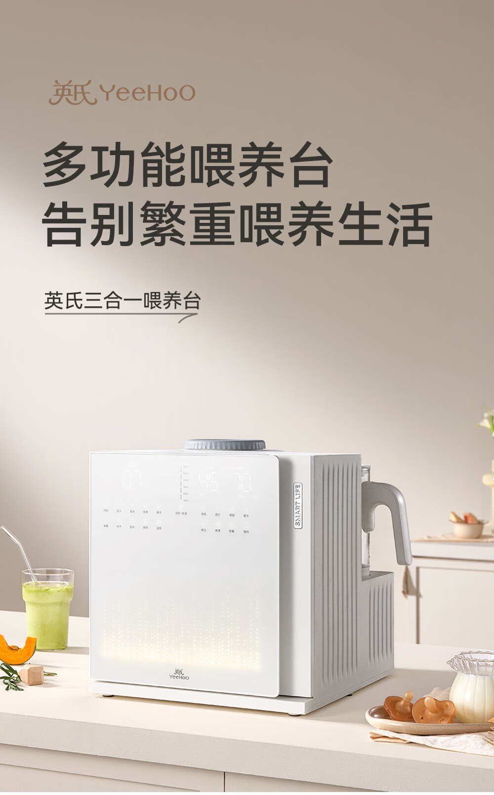 英氏(YEEHOO)紫外线奶瓶消毒柜婴儿摇奶器恒温壶泡奶机三合一喂养台 YH8050