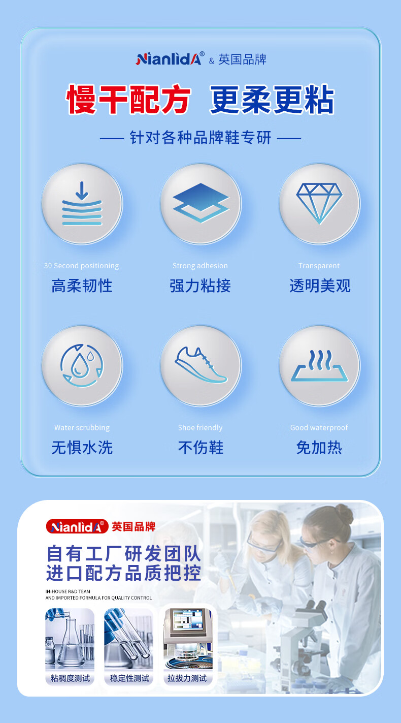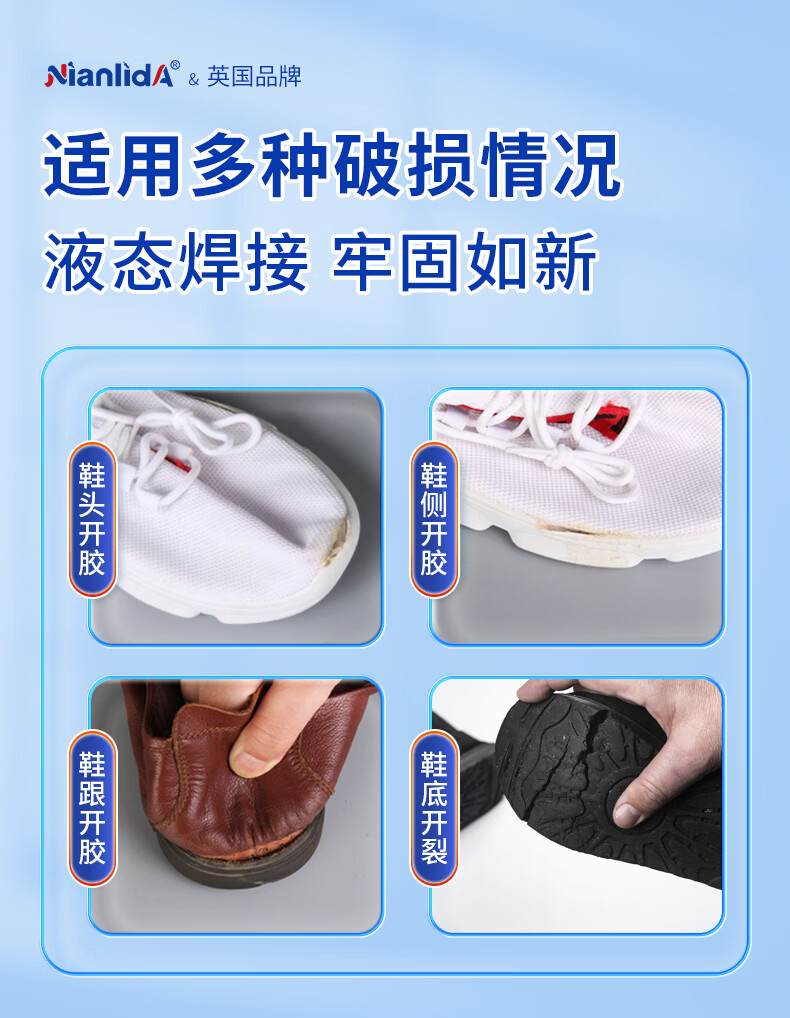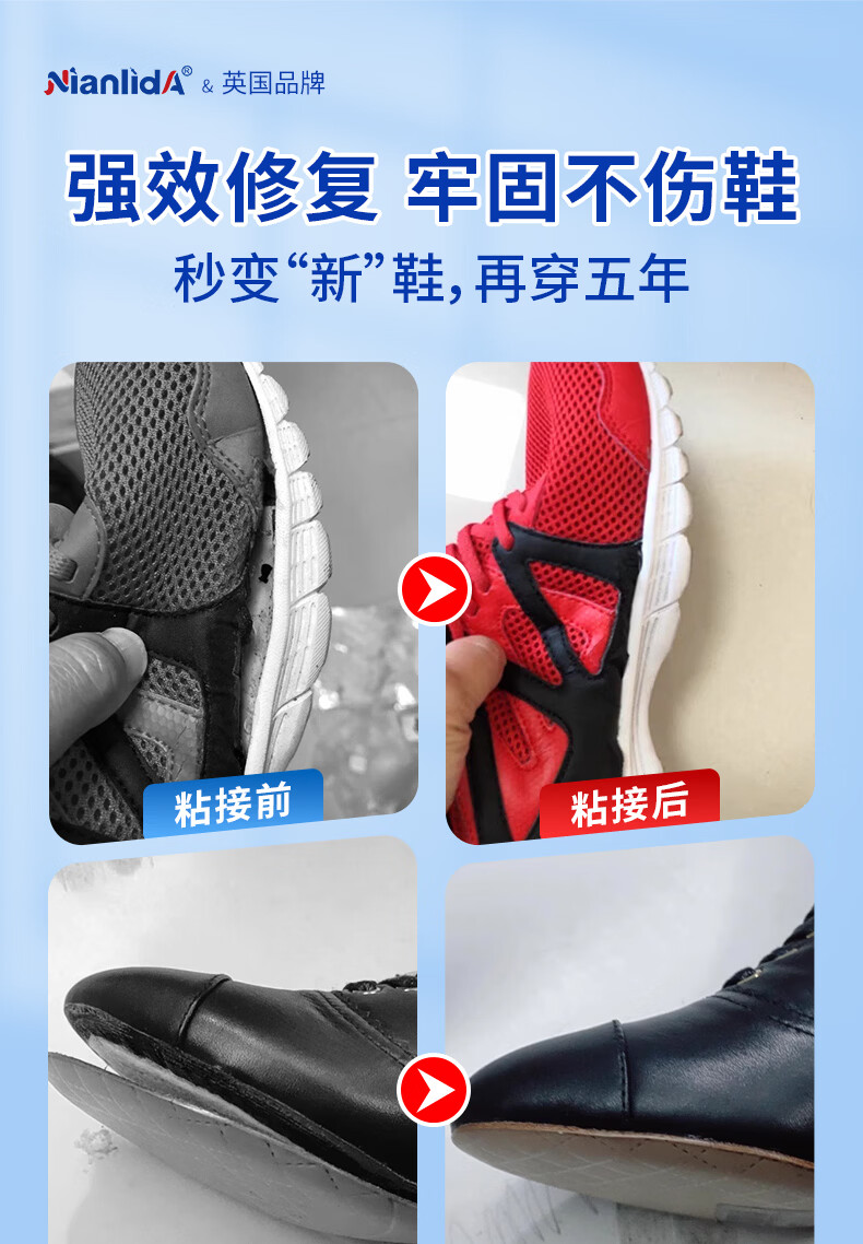 NianlidA【英国进口】补鞋专用胶水 强力防水粘鞋运动鞋皮鞋皮革鞋底 软性树脂不发硬万能鞋胶 【无气味】G8-8-9黑科技快干胶