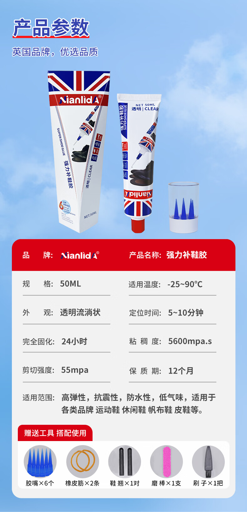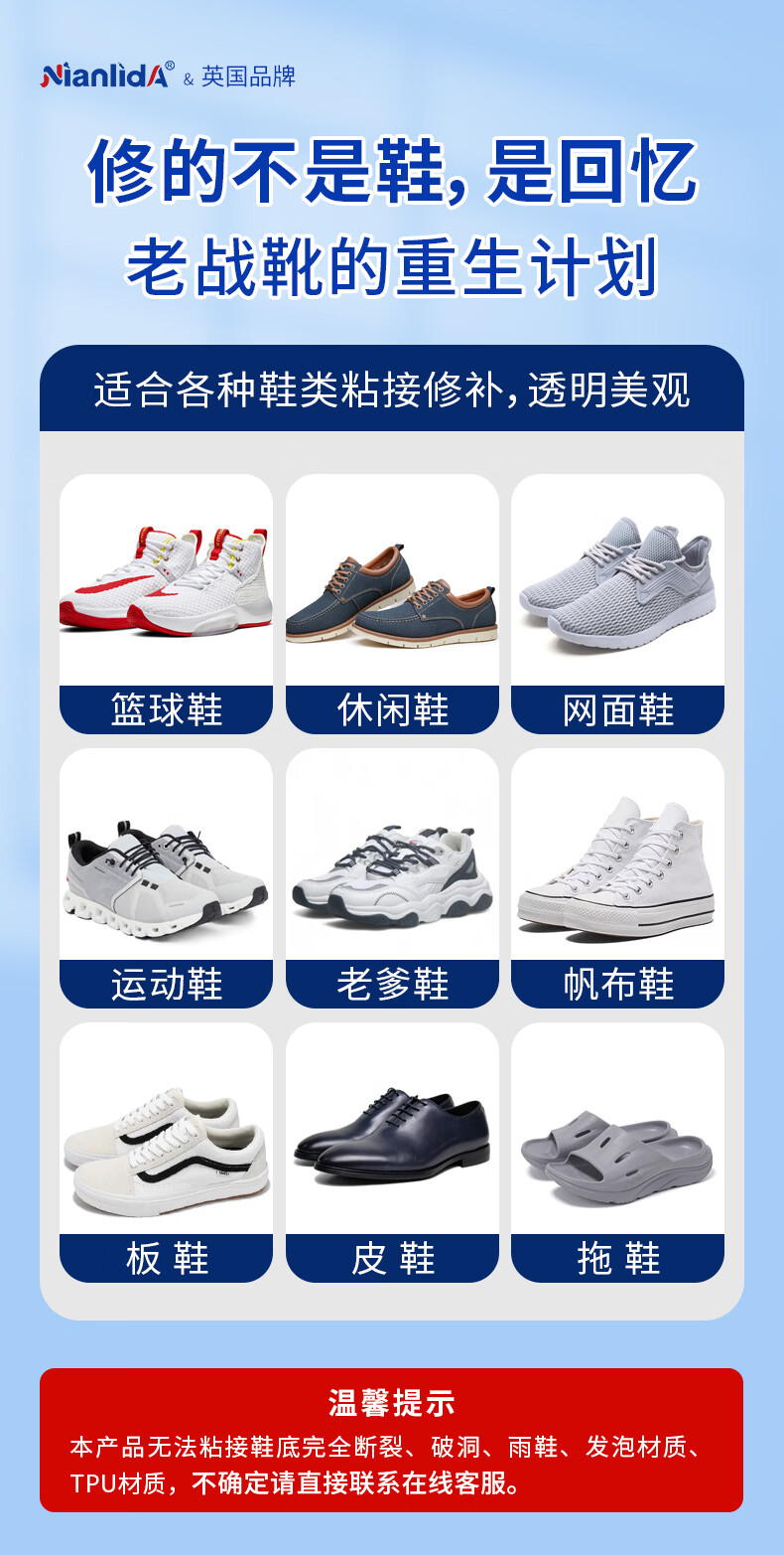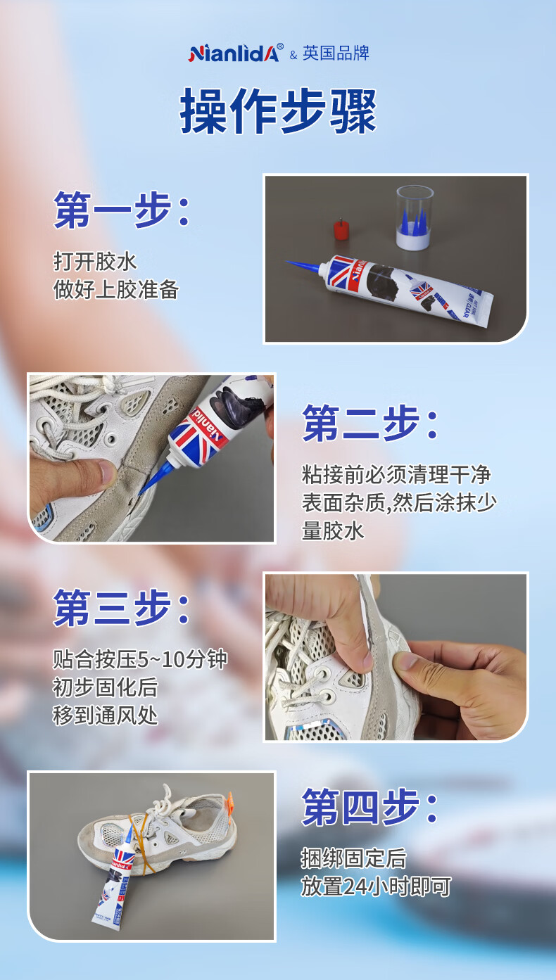 NianlidA【英国进口】补鞋专用胶水 强力防水粘鞋运动鞋皮鞋皮革鞋底 软性树脂不发硬万能鞋胶 【无气味】G8-8-9黑科技快干胶