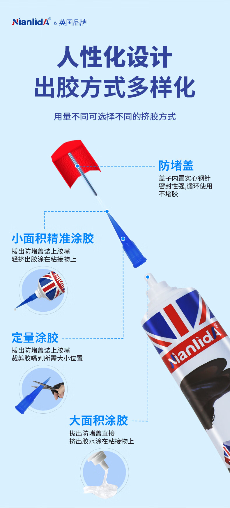 NianlidA【英国品牌】珠宝饰品胶水手工diy专用强力透明防水胶粘镶嵌钻石首饰耳钉 新升级【英国进口胶液】G44流体胶6ml