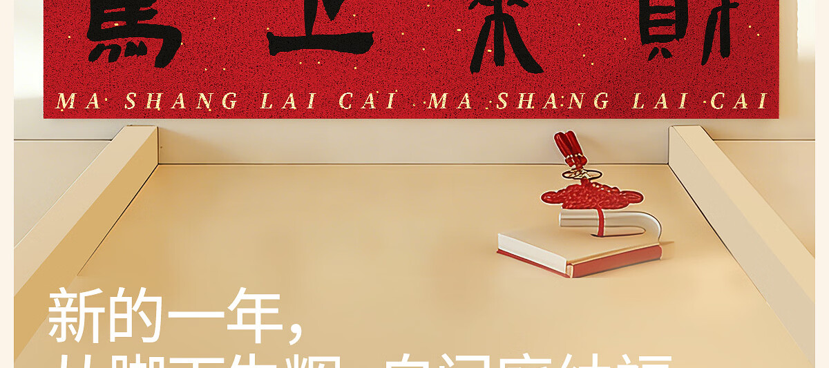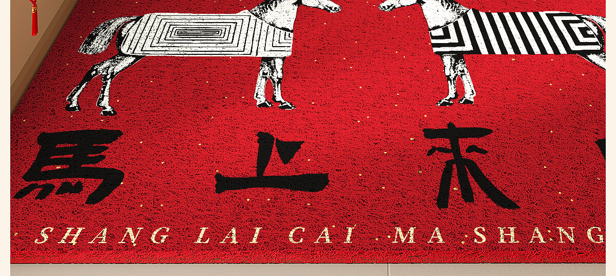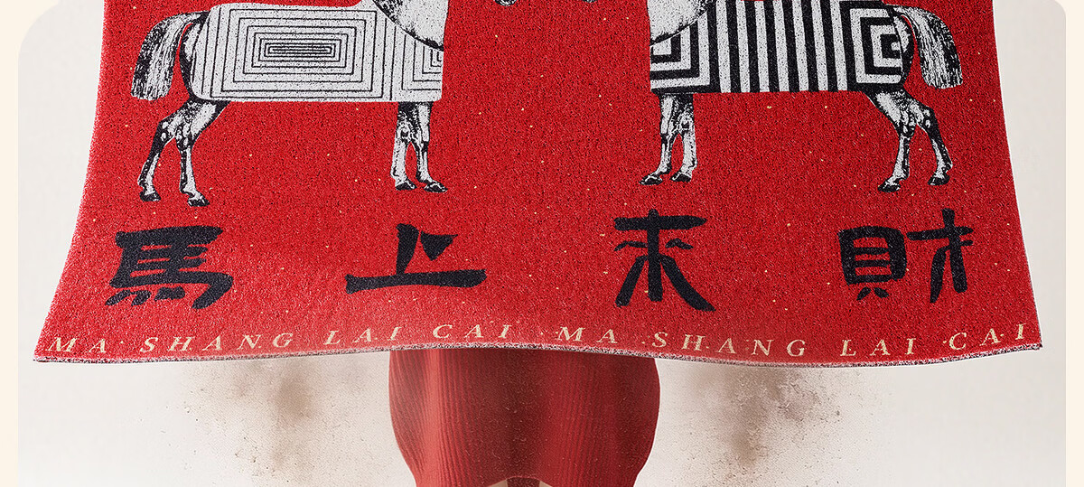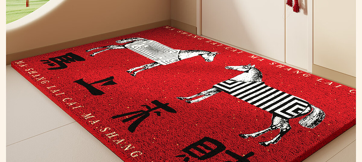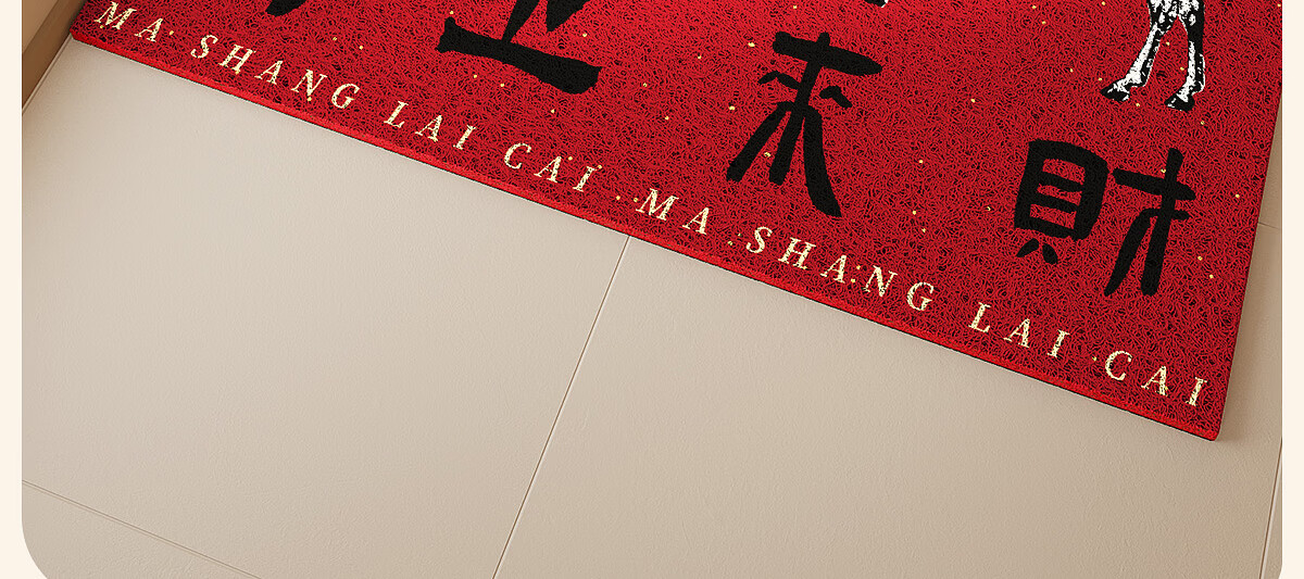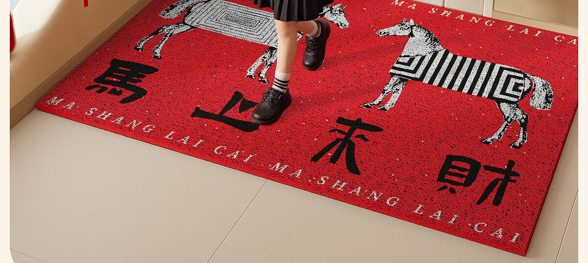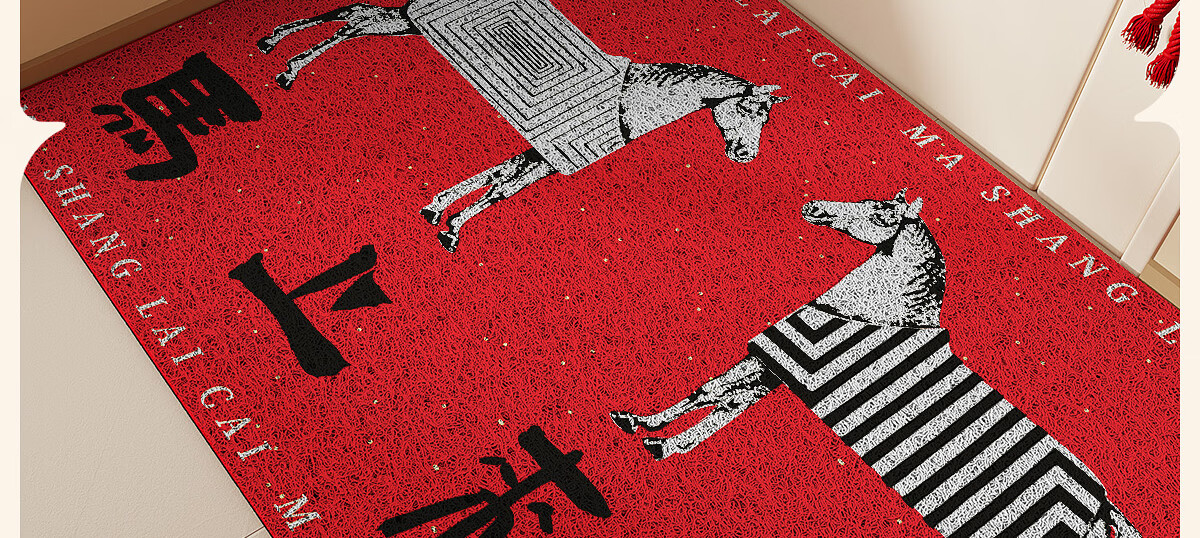 梓晨2026新款马年入户门地垫马上来财红色喜庆家用门口脚垫除尘垫子 马上来财-黑色 60×90cm