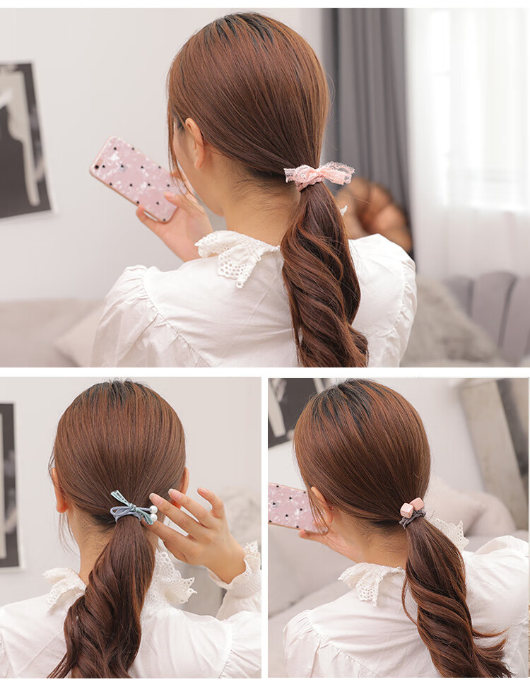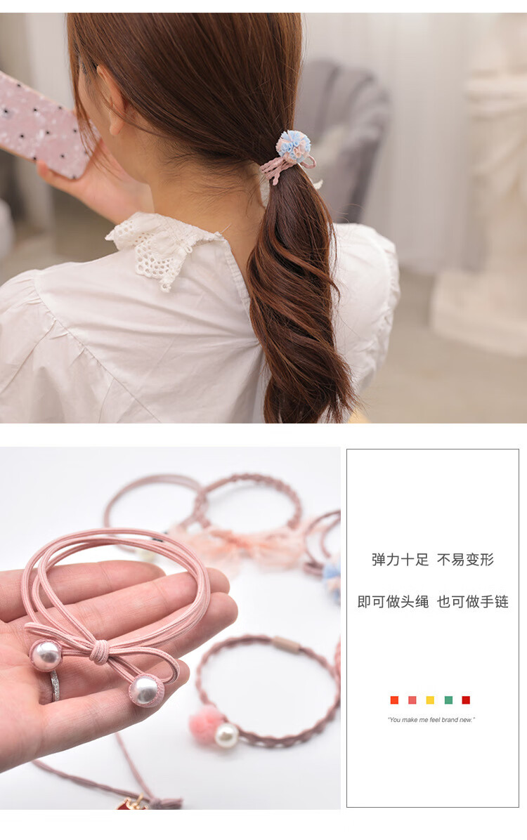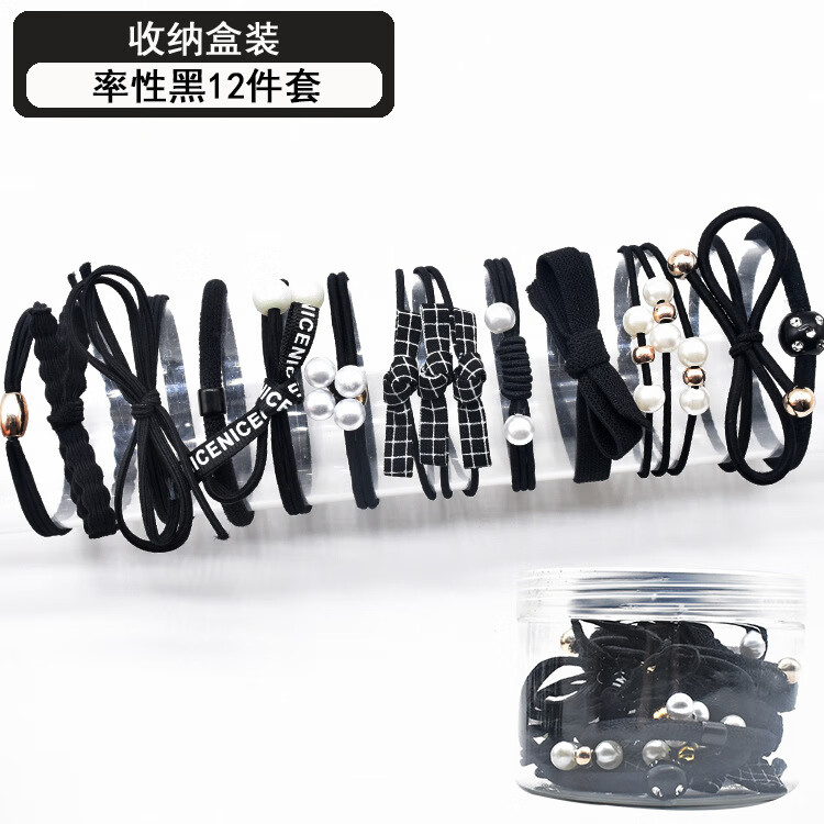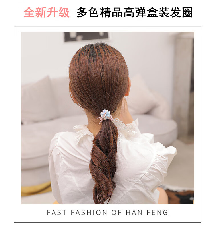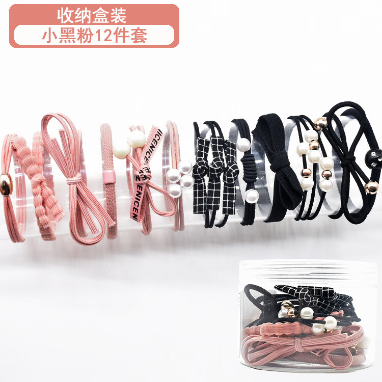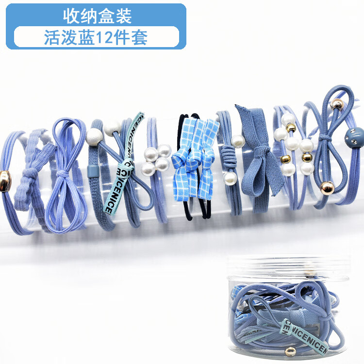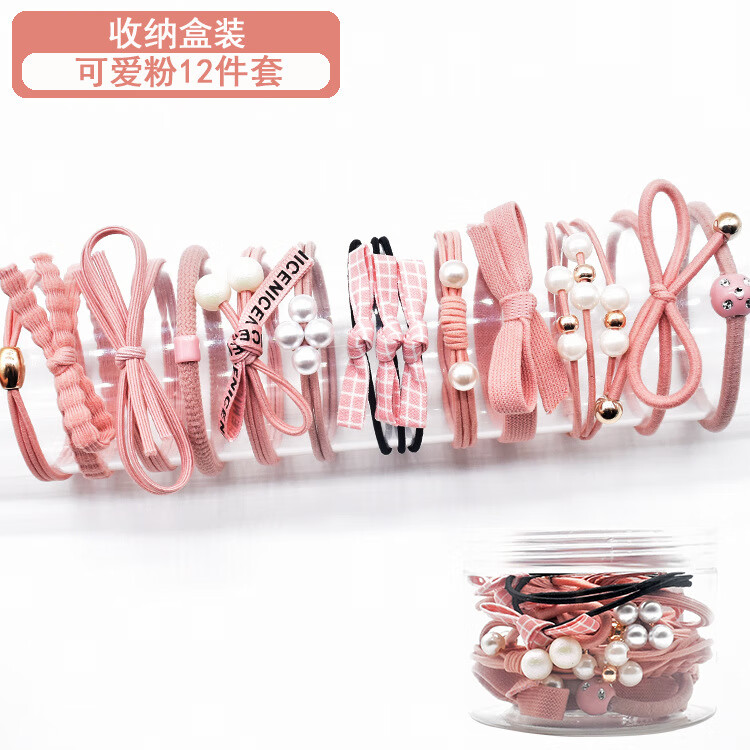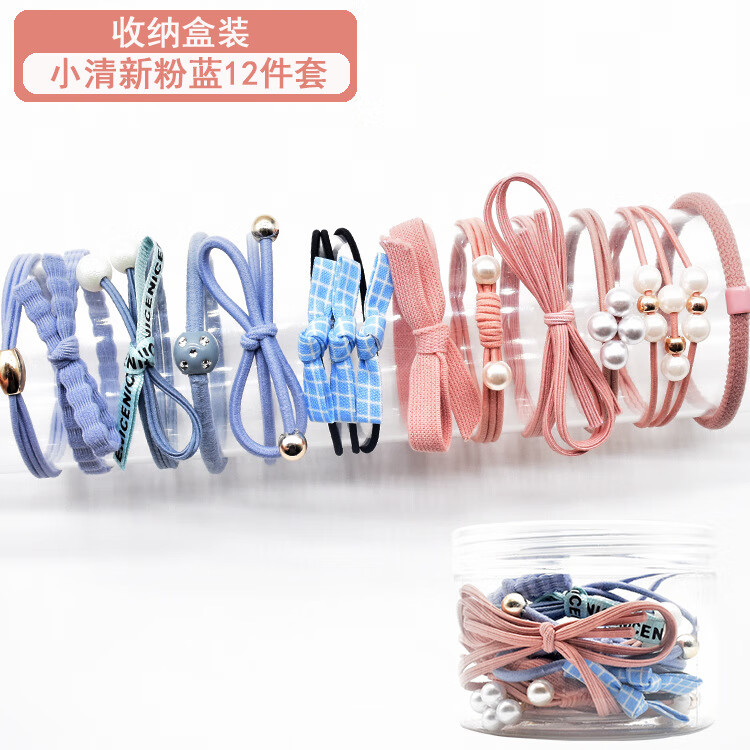 韩国小清新基础款发绳发饰扎头发马尾橡皮筋甜美头绳发圈12件套装 粉加蓝12件套盒装