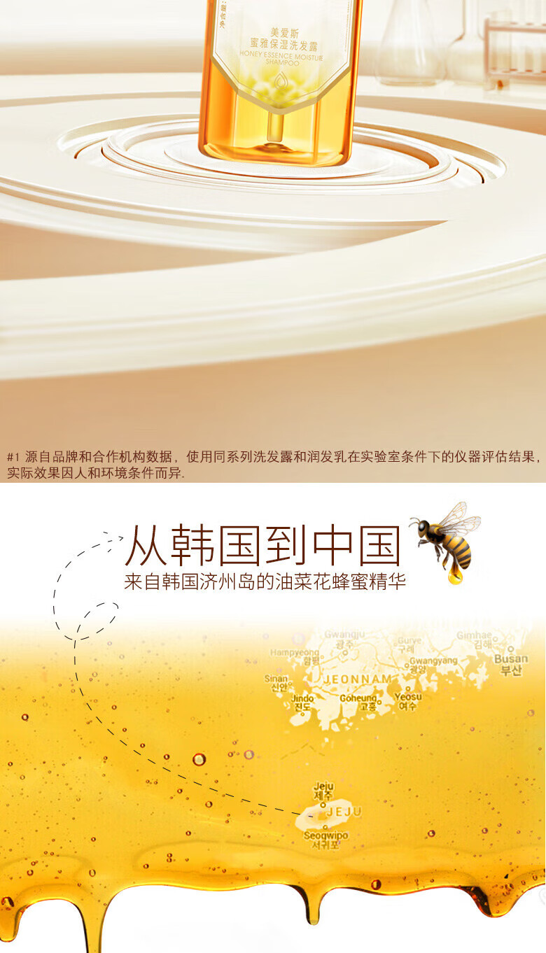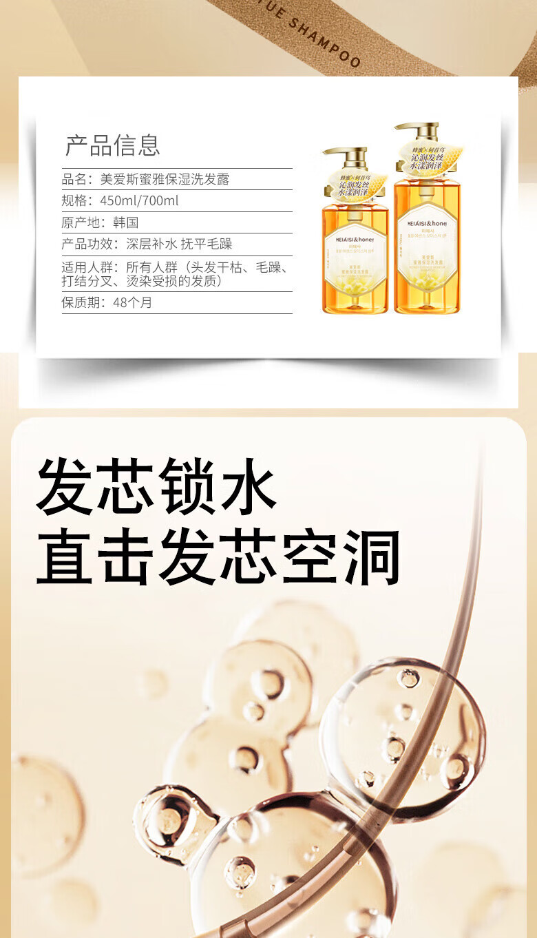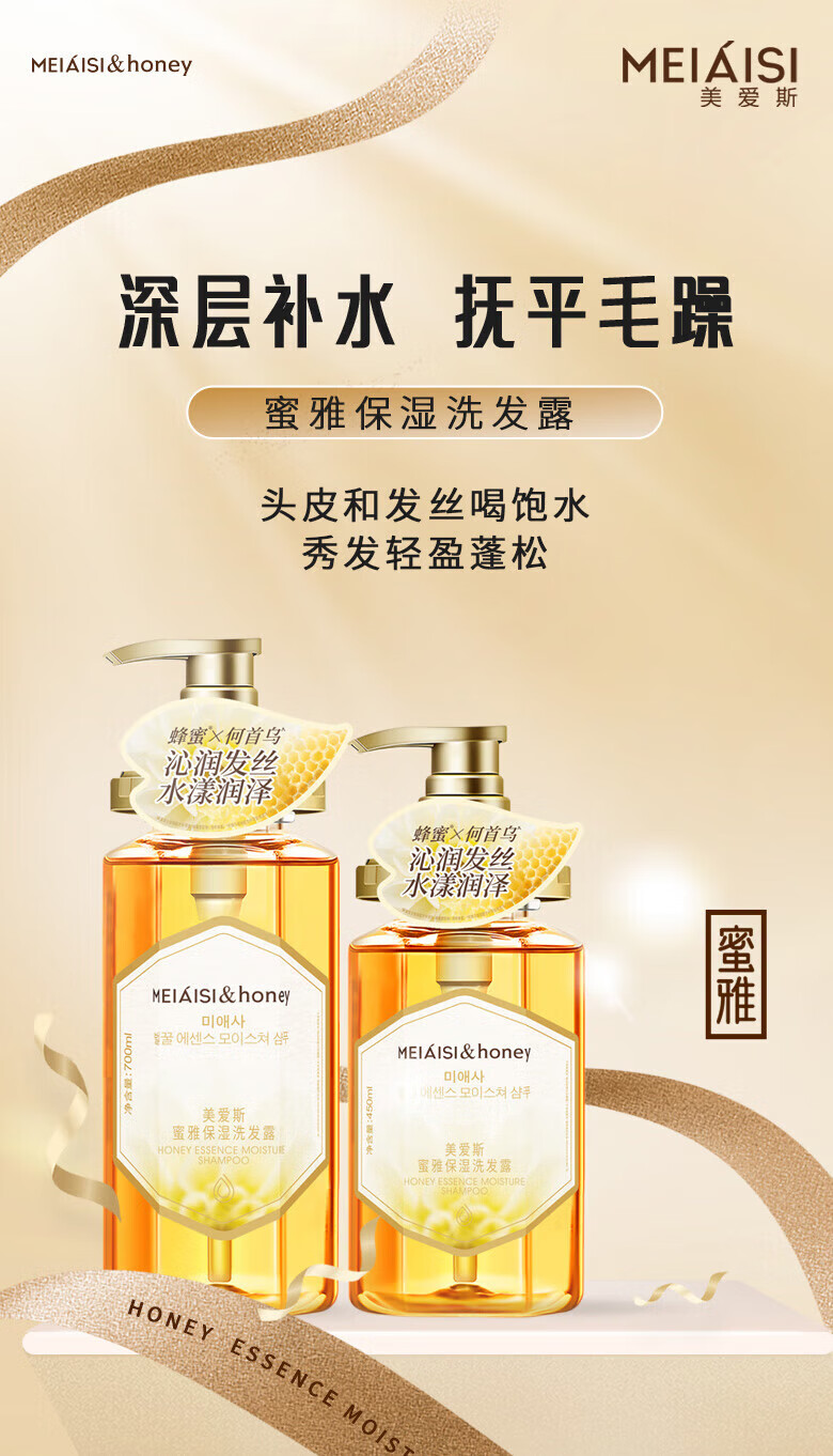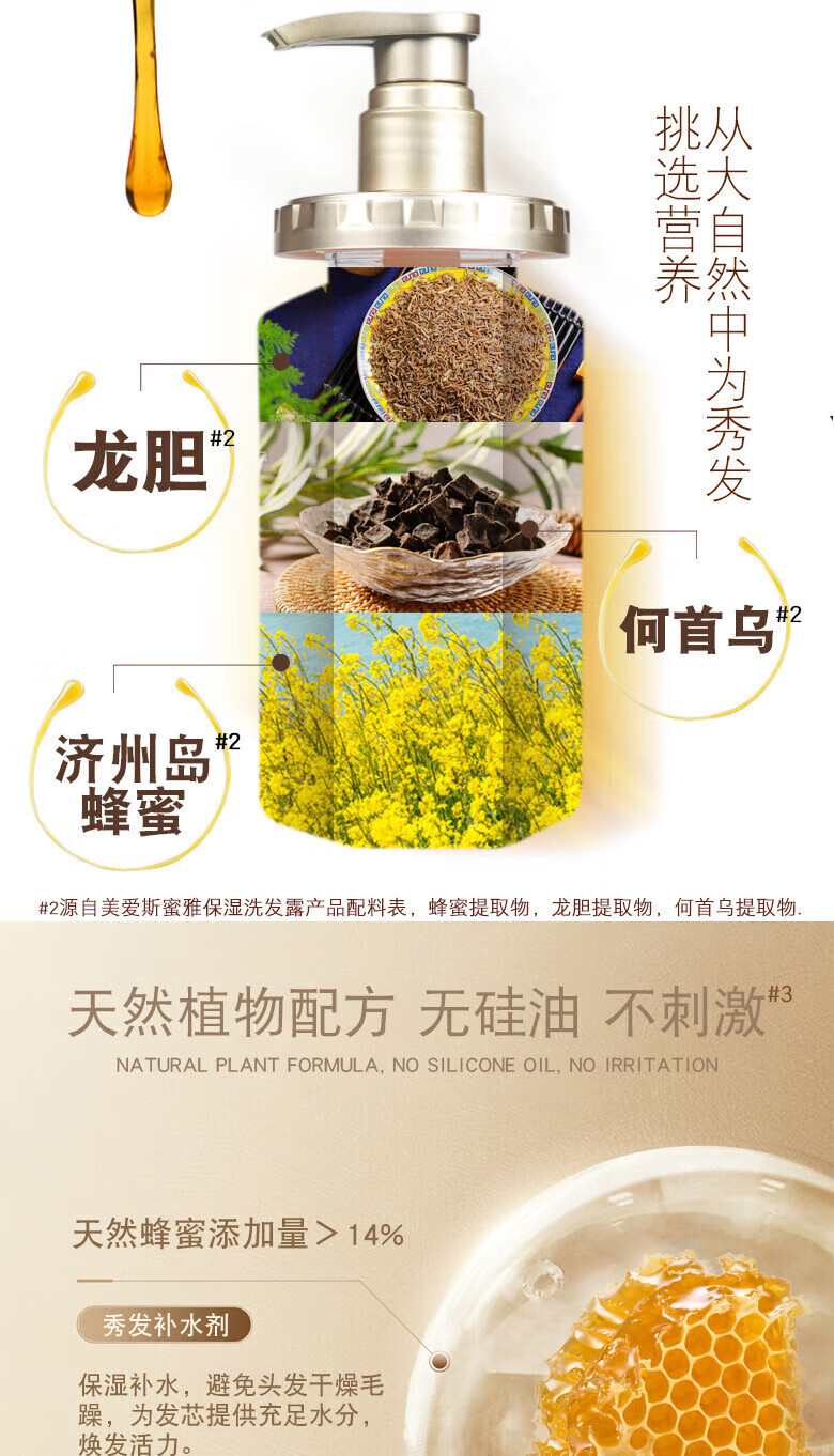 美爱斯蜂蜜洗发水氨基酸去屑蓬松洗头膏生姜滋养水润无硅油洗发露 蜜雅去屑洗发水+蜜雅保湿洗发水 两瓶共1400ml